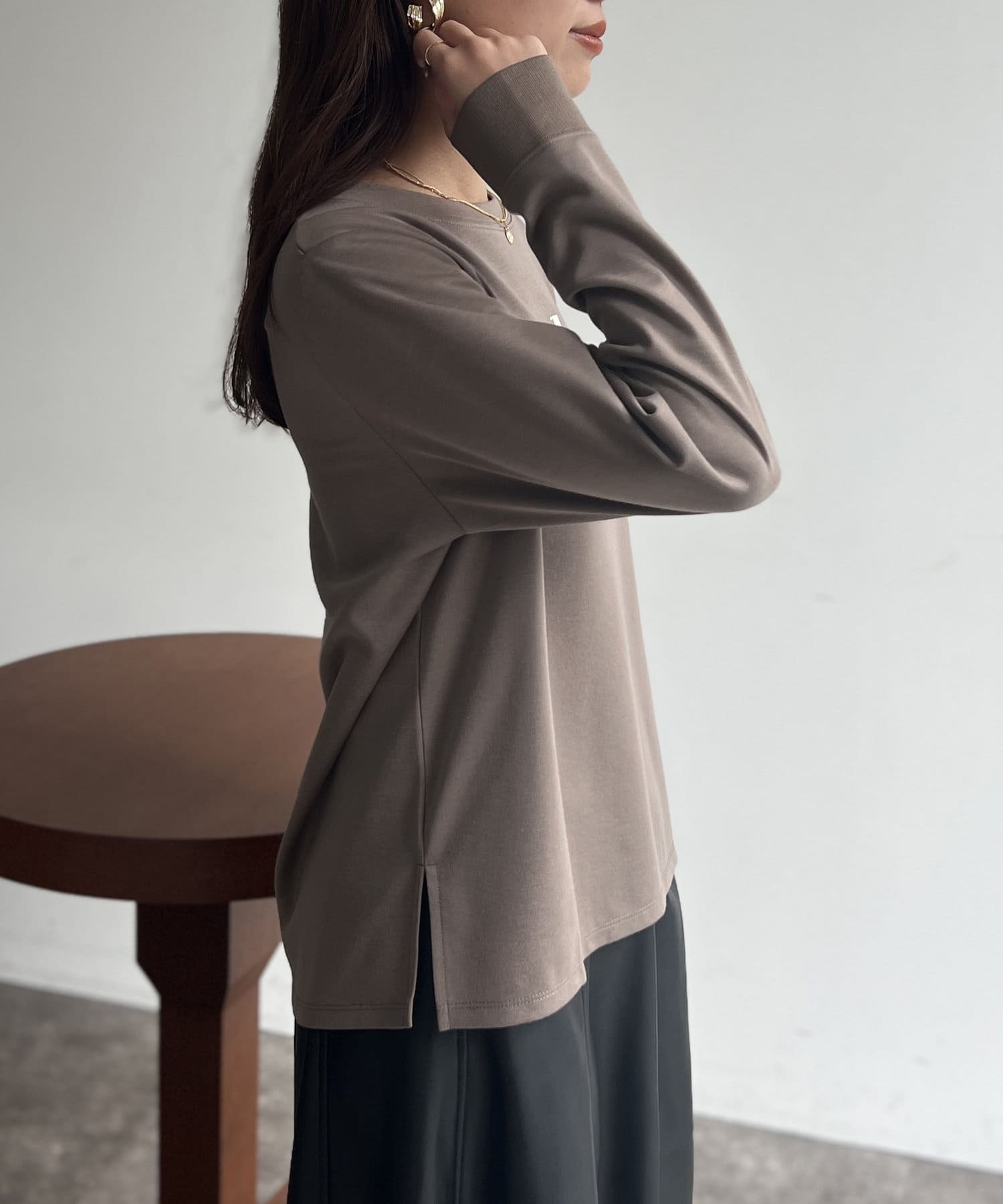 マッチするロンT。分厚すぎず透け感の少ない程よい厚みの生地で