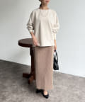 同素材のスエード×リブナロースカートと合わせてセットアップとしても
