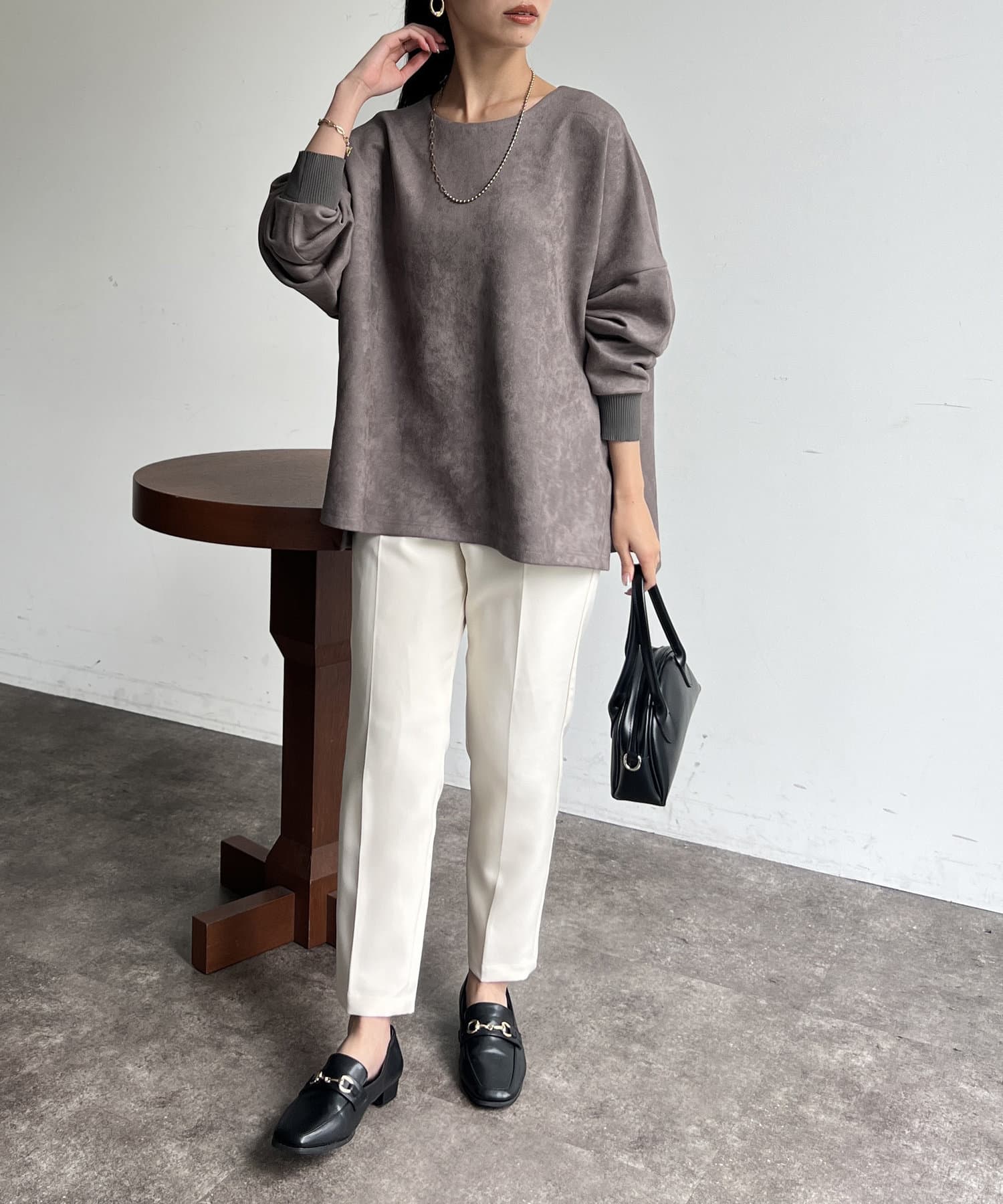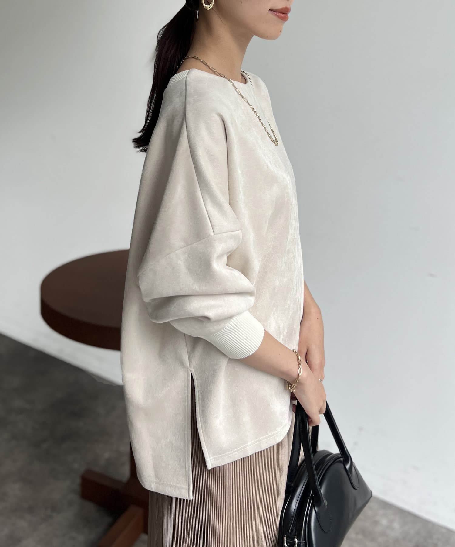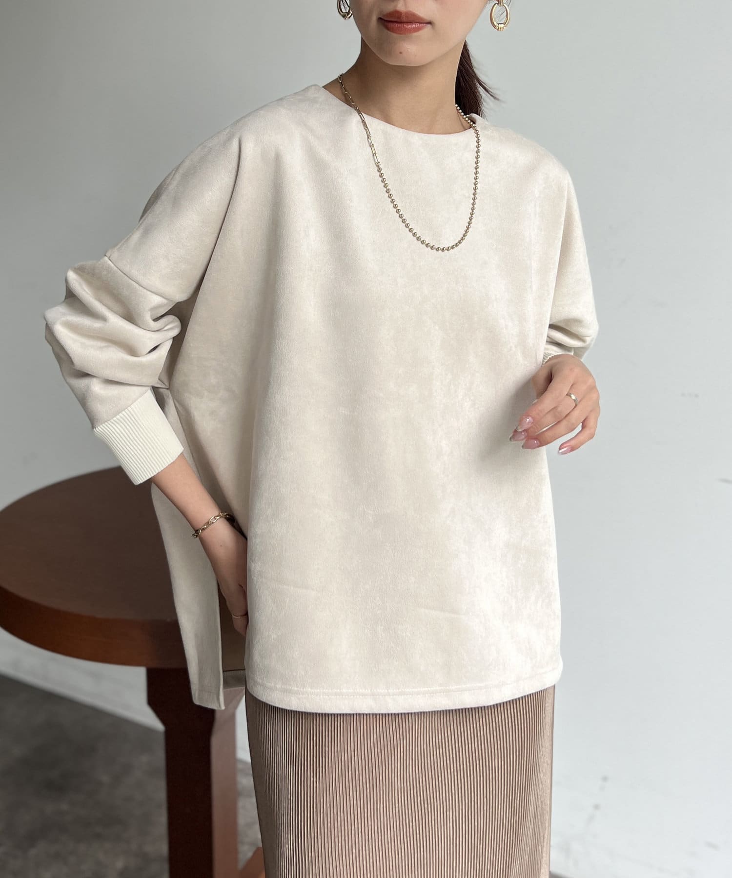 上品見えが叶うフェイクスエードプルオーバー