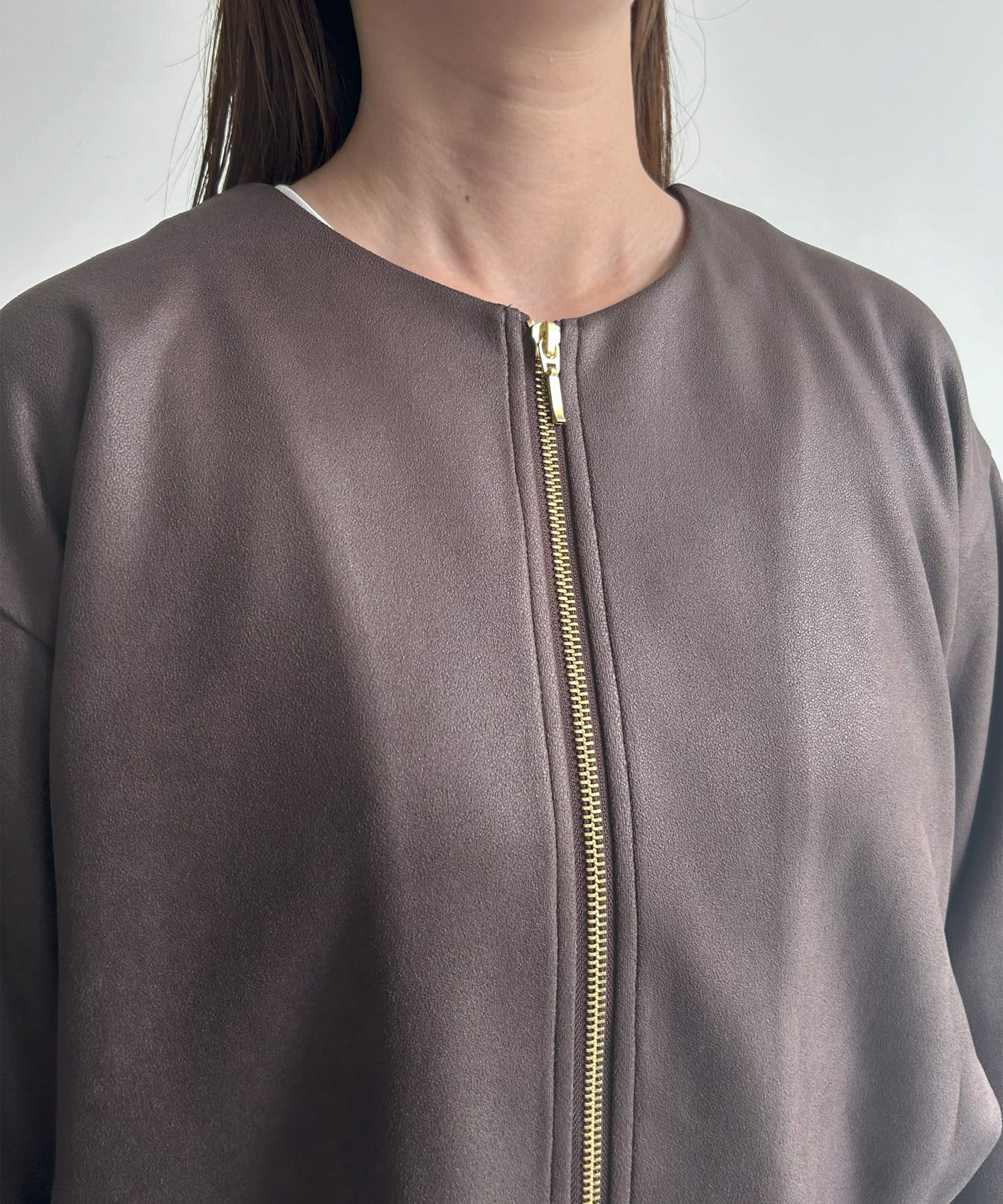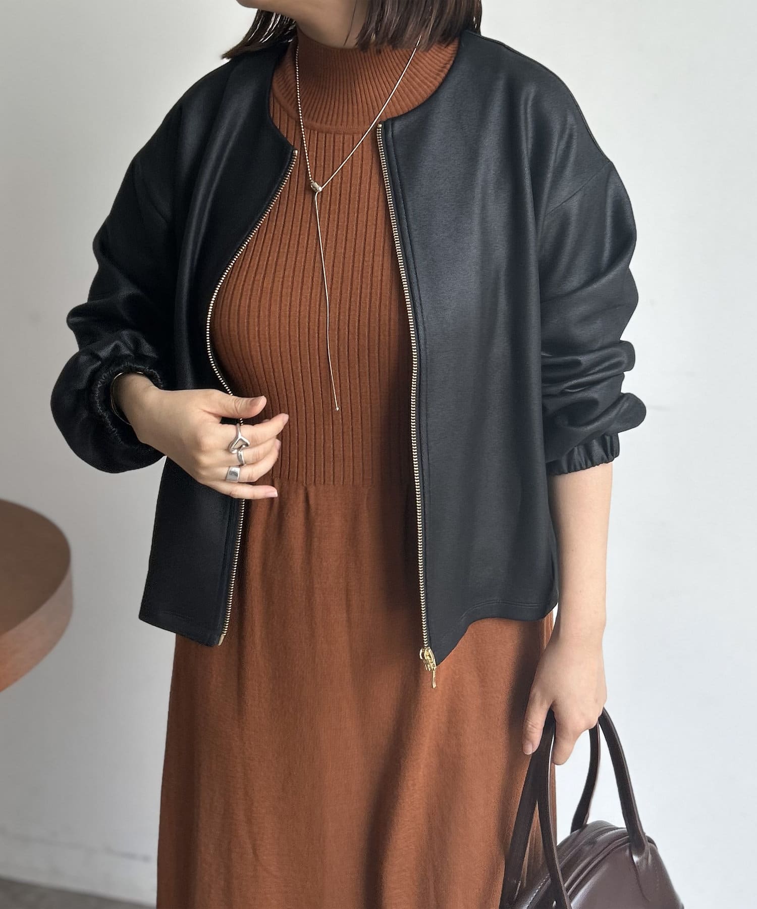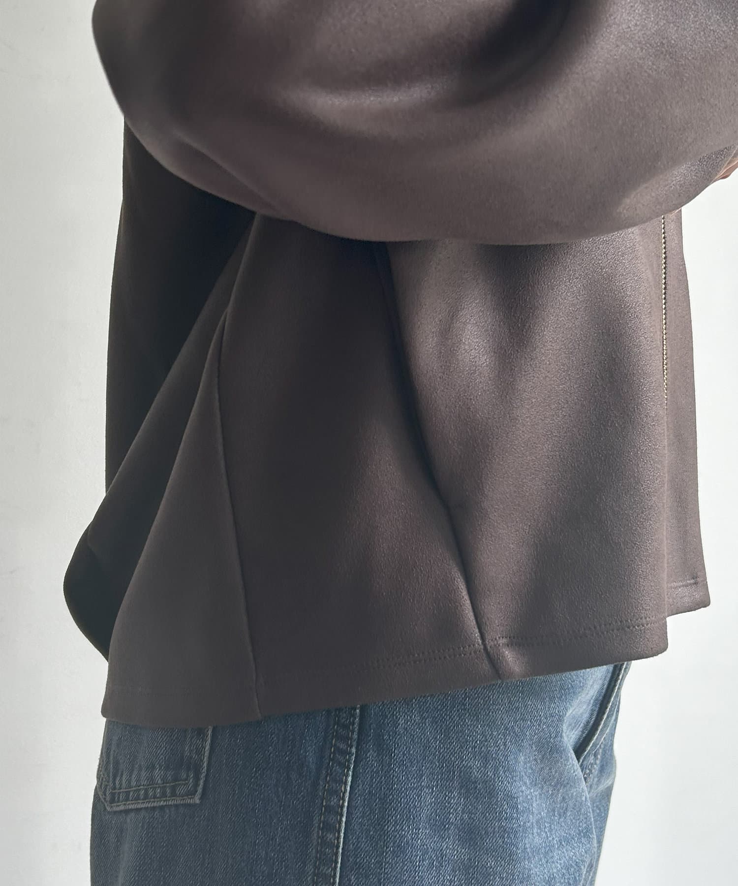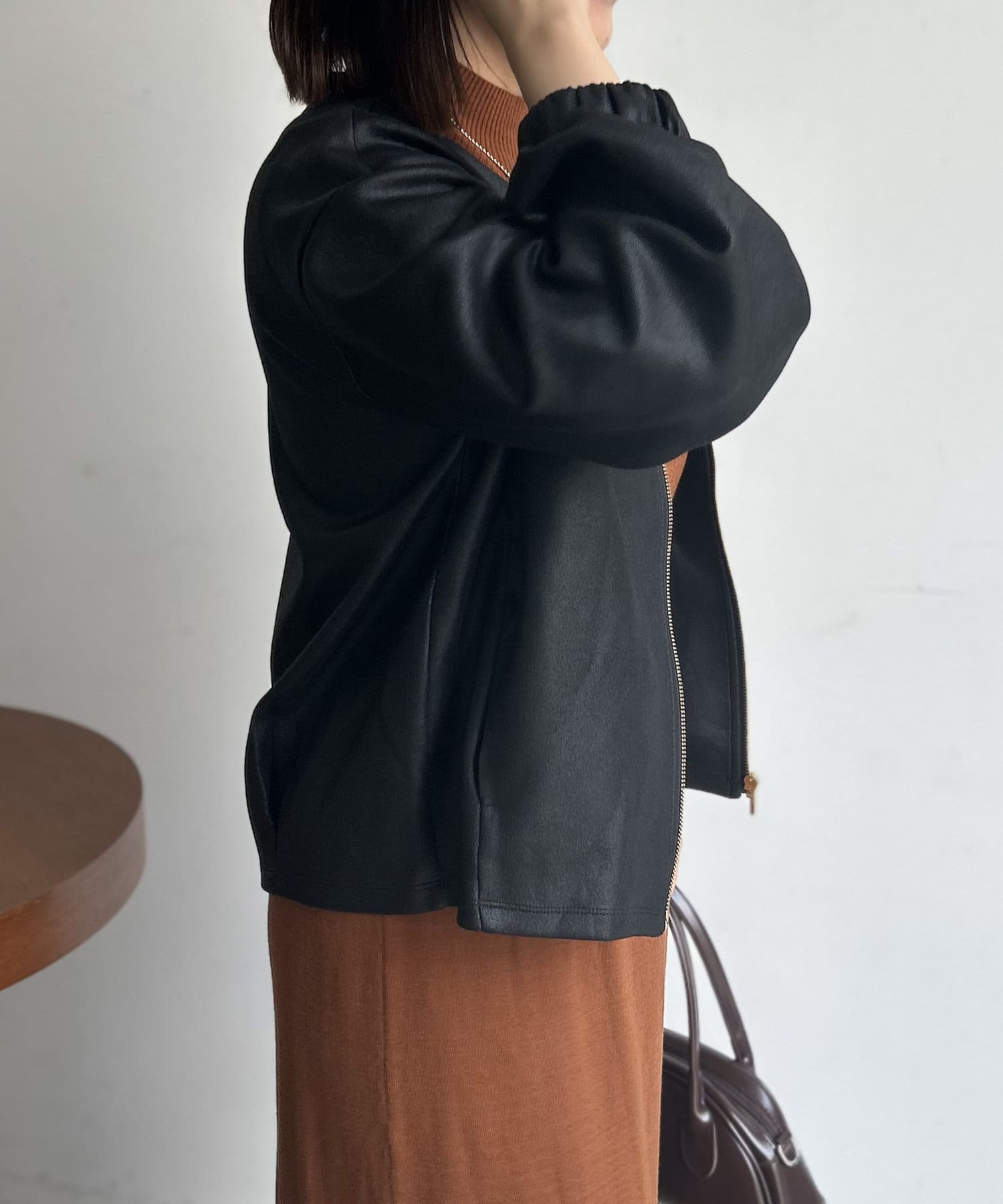 滑らかな肌触りが良い合皮ブルゾン。軽い着心地でストレスフリーな