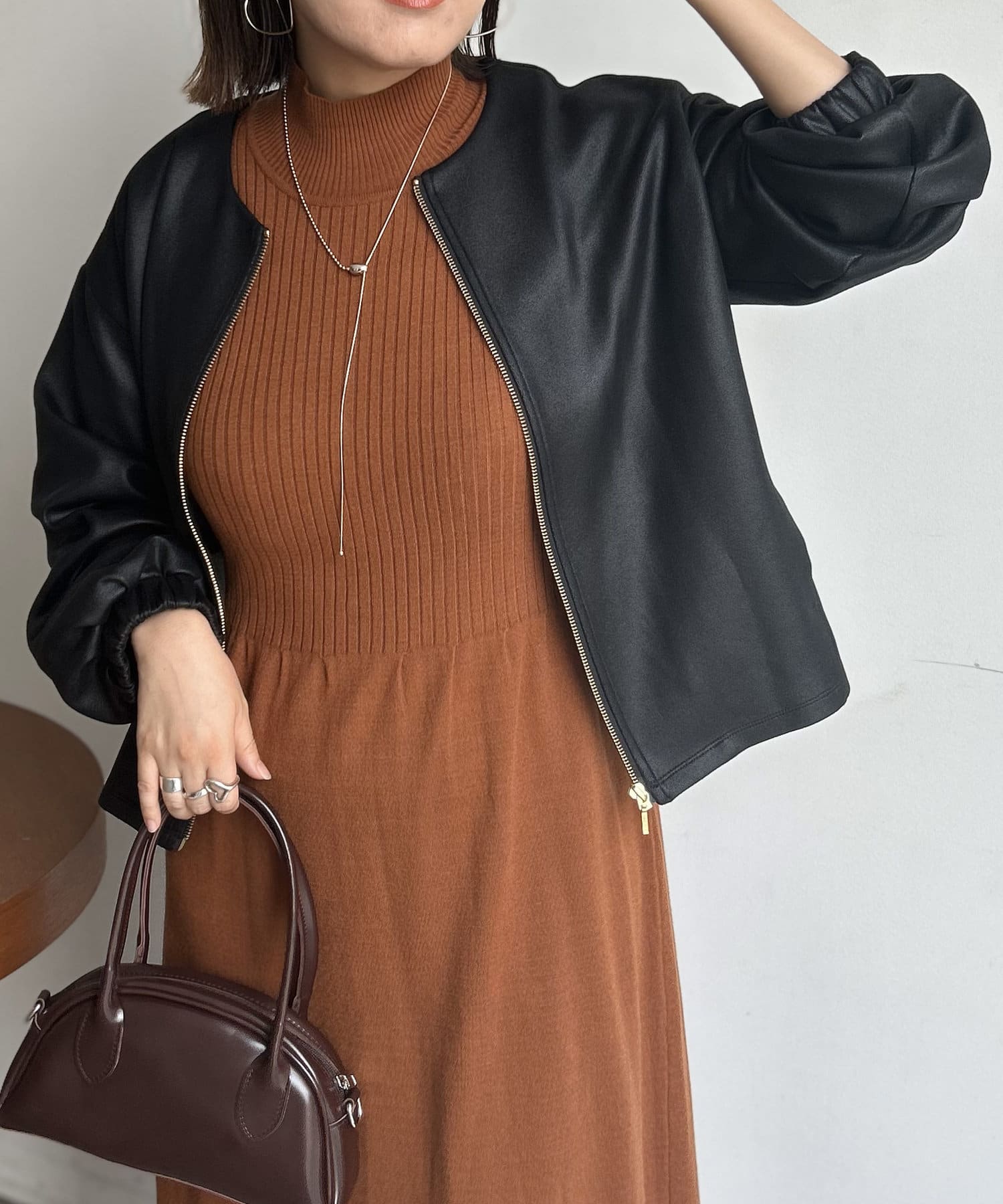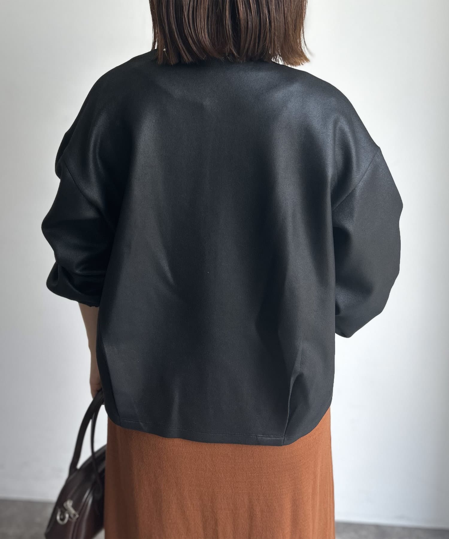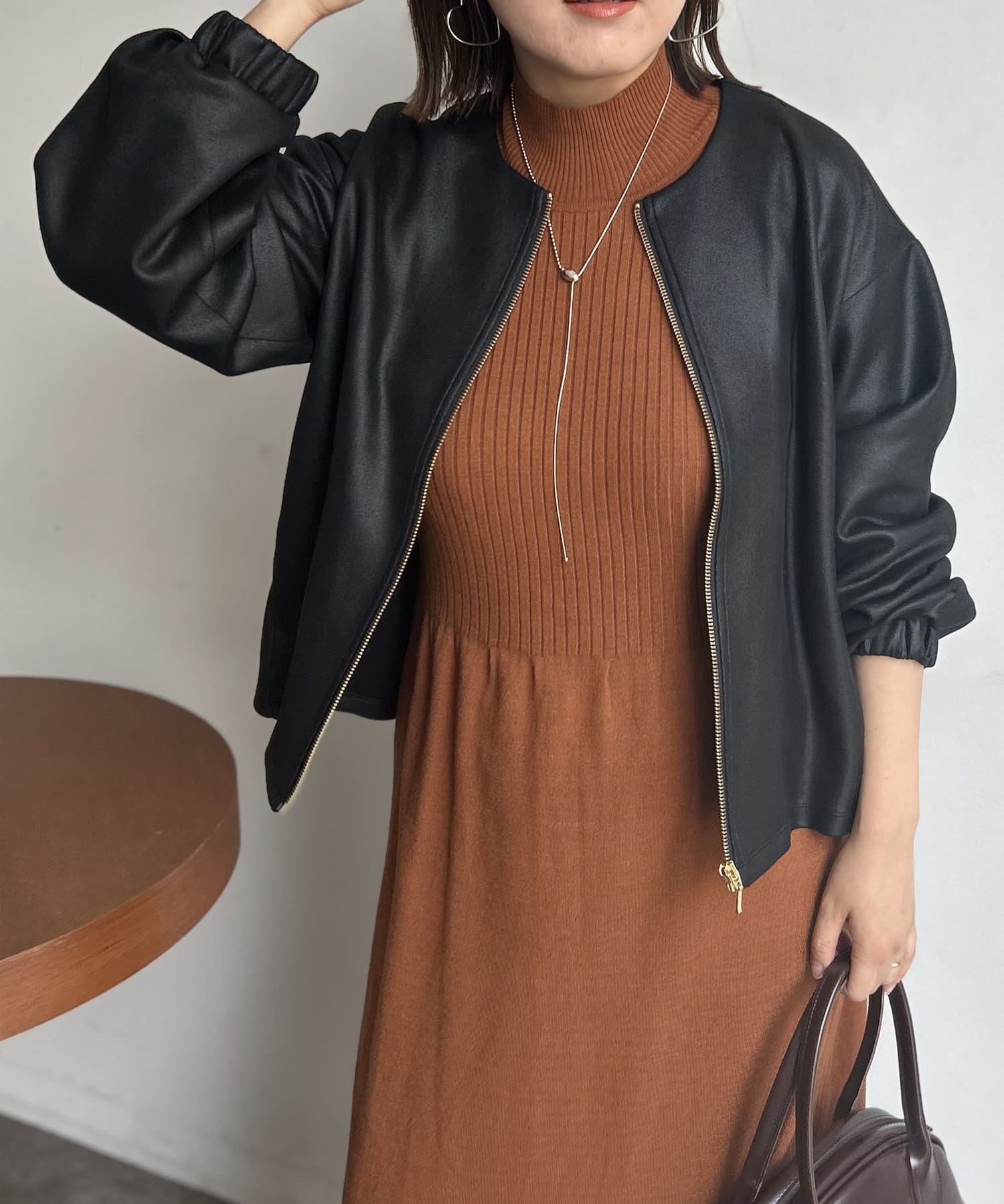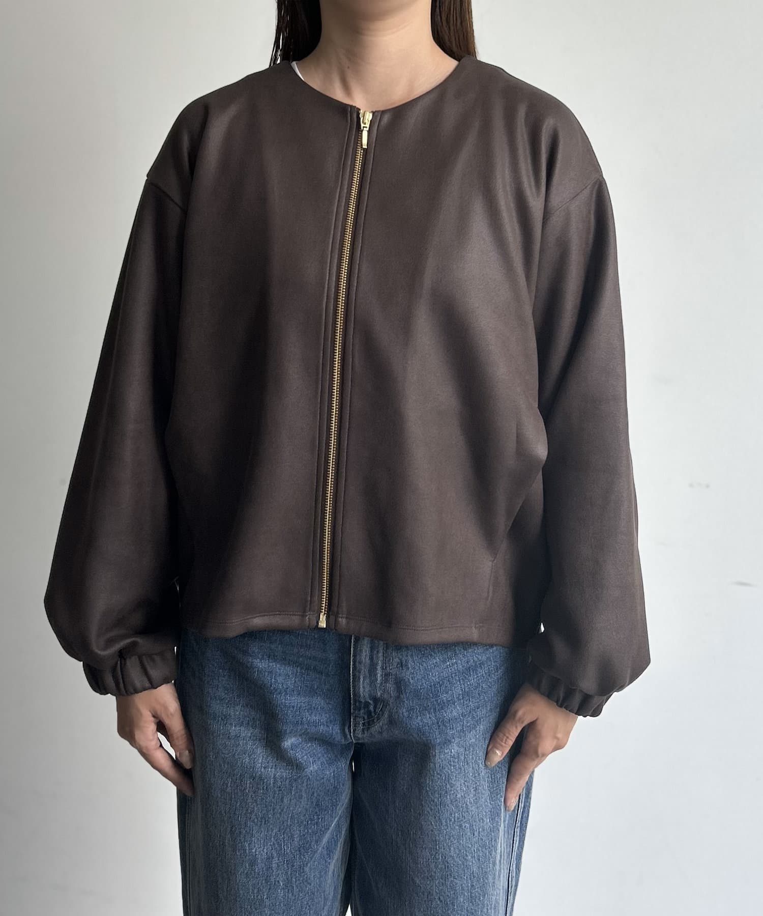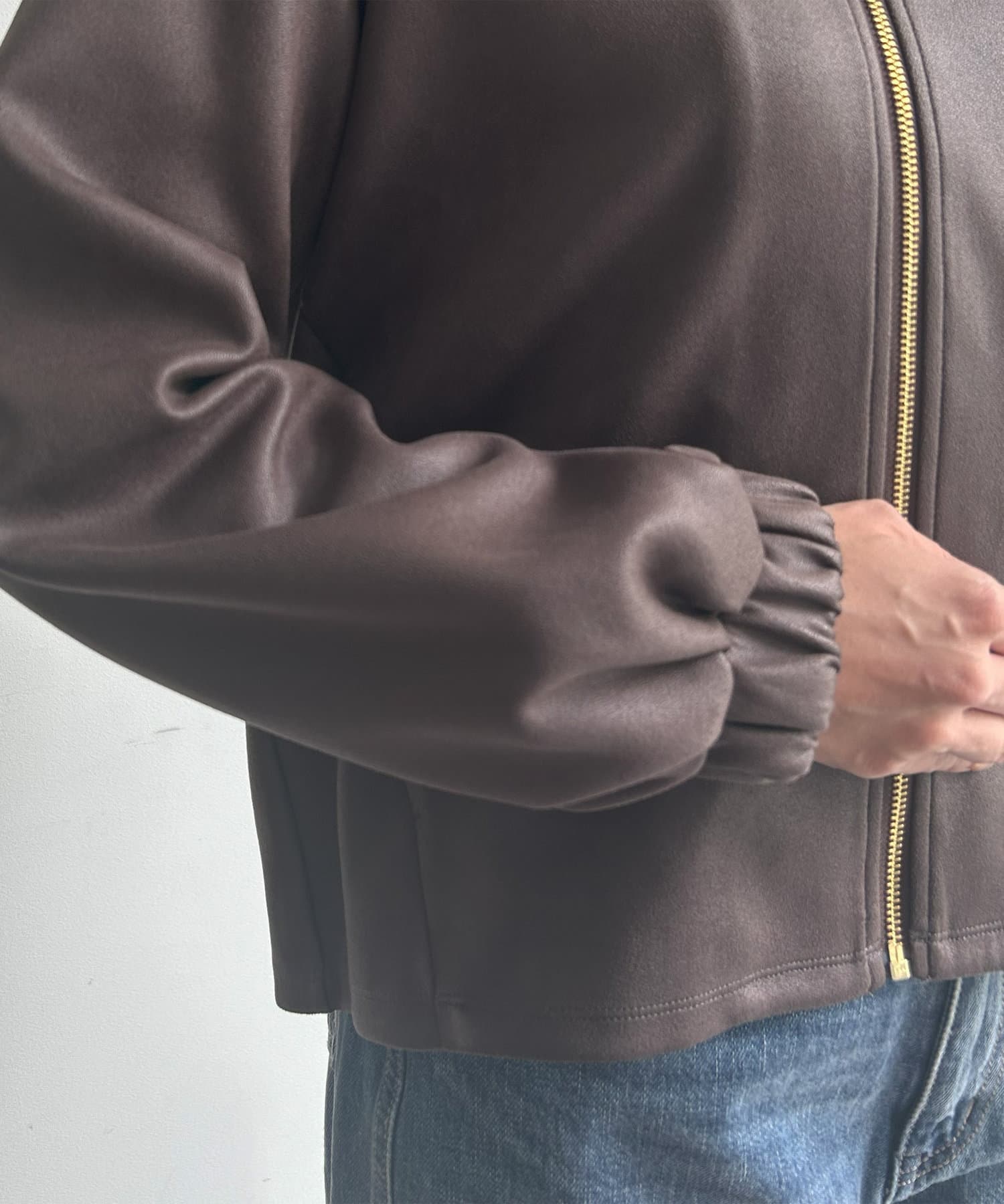 滑らかな肌触りが良い合皮ブルゾン。軽い着心地でストレスフリーな