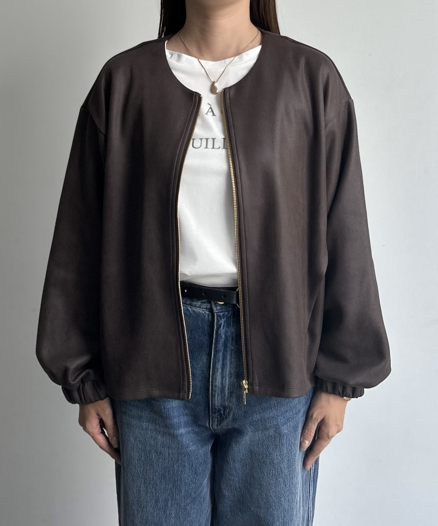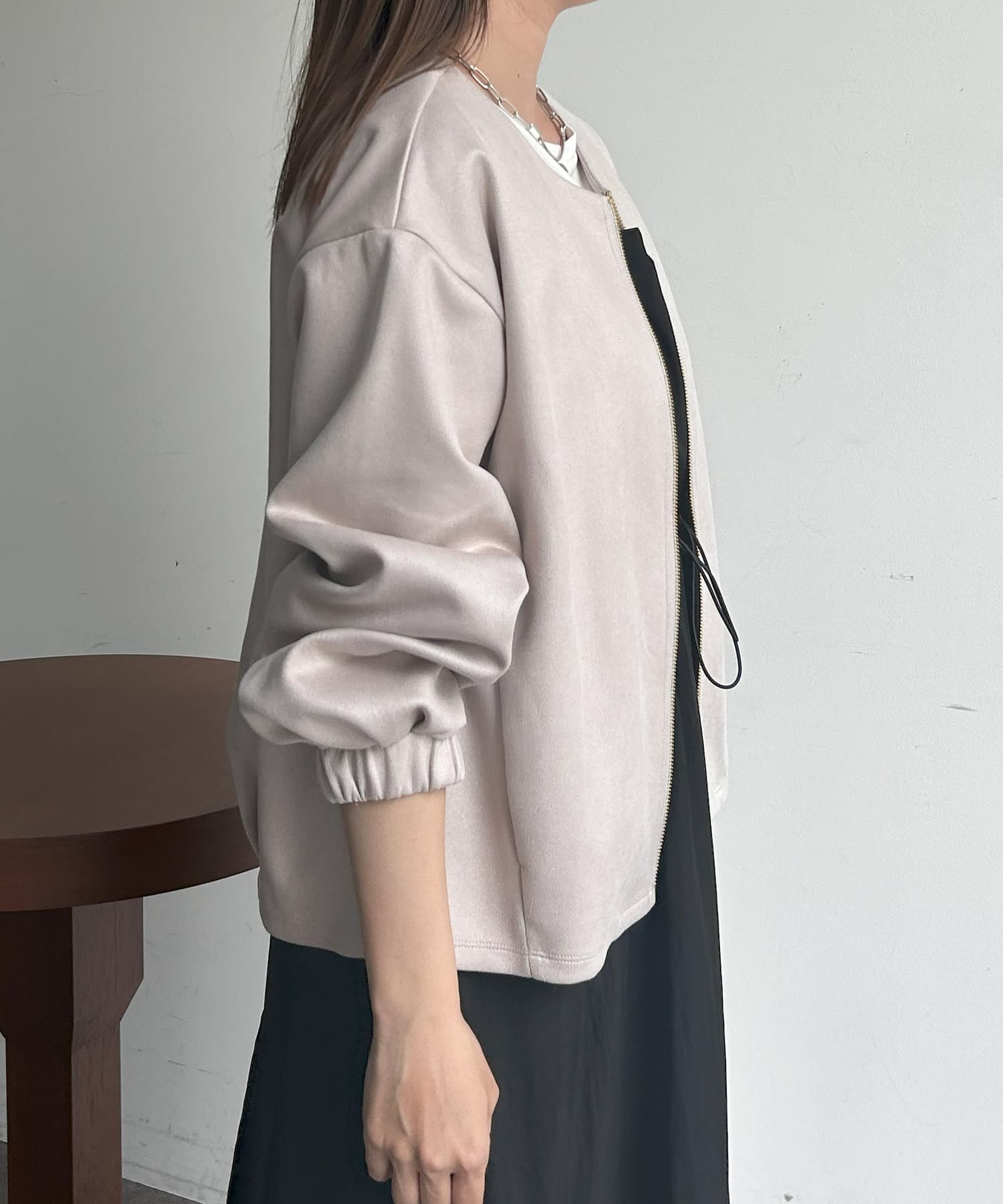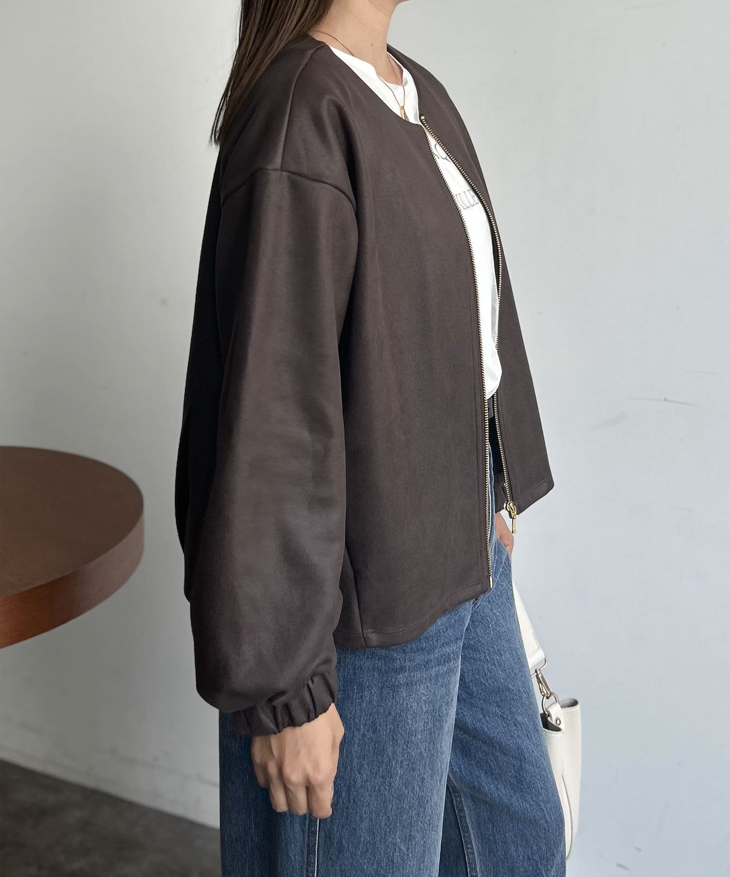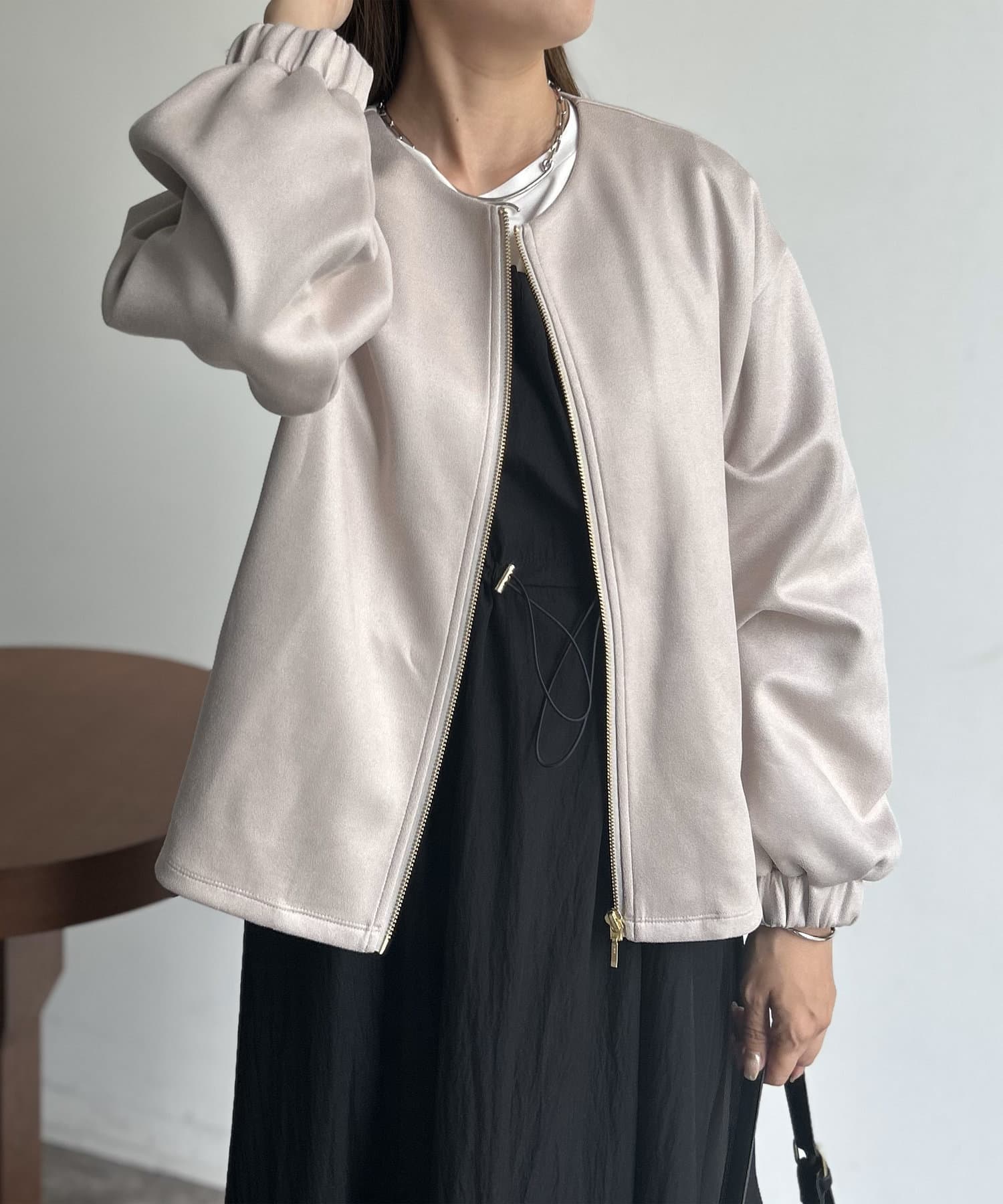 滑らかな肌触りが良い合皮ブルゾン。軽い着心地でストレスフリーな