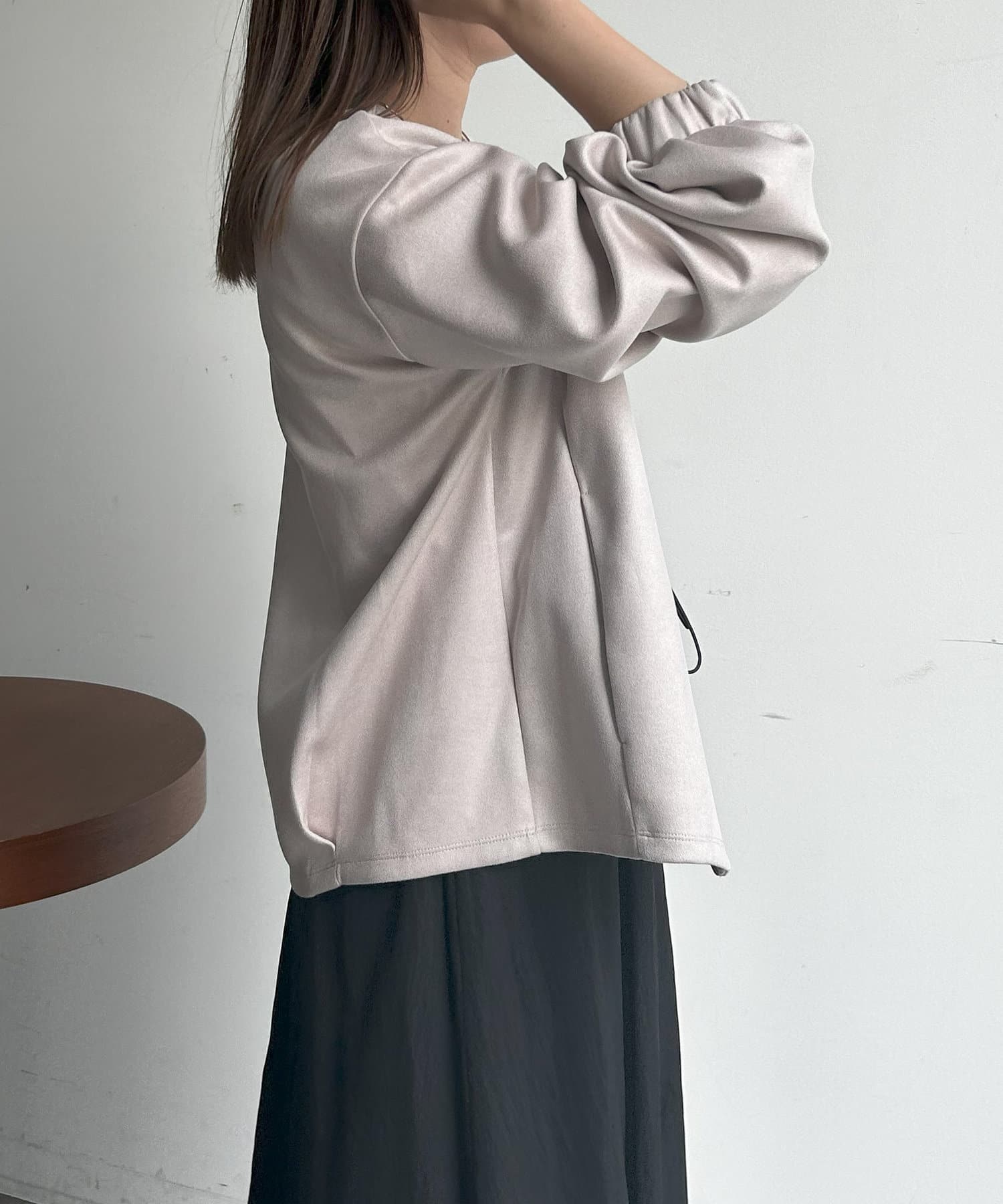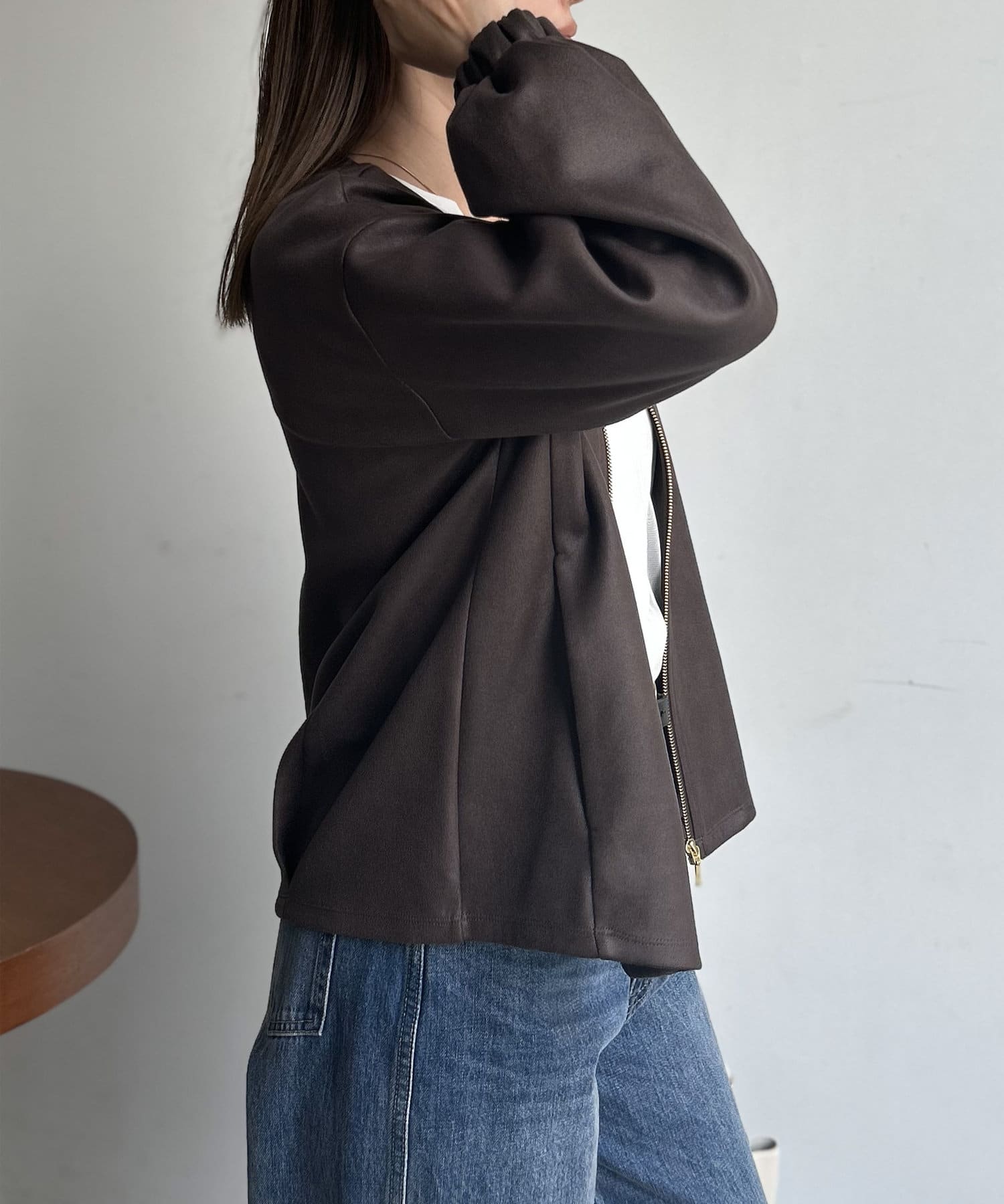 袖口はたっぷりとギャザーが施され丸みのあるシルエットが