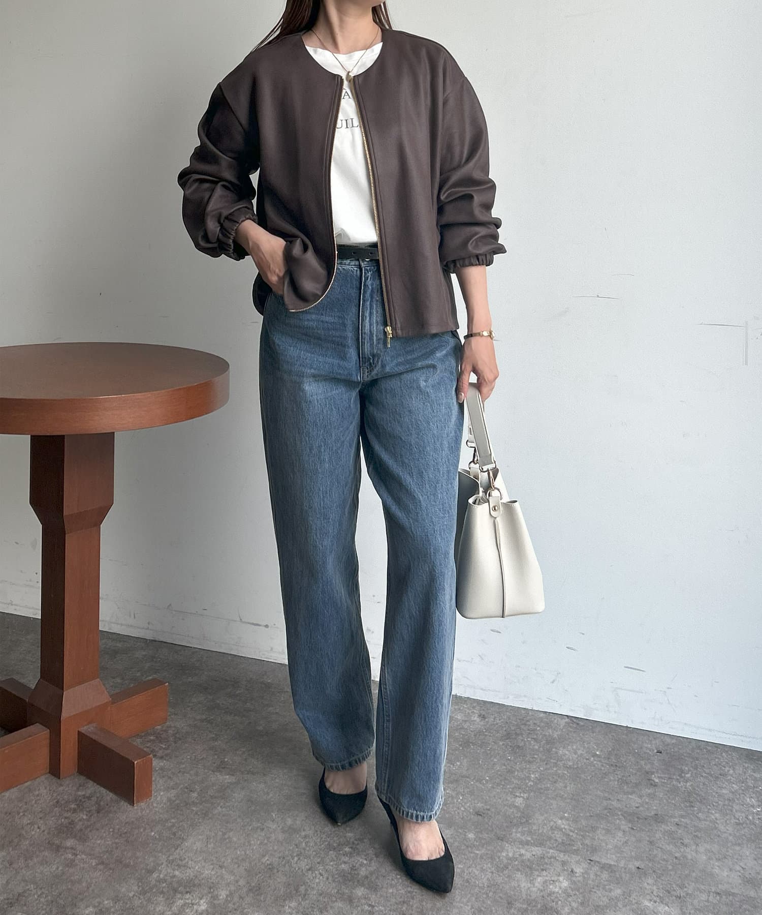 デニムやテーパードパンツなどと合わせてきれいめカジュアルスタイルも