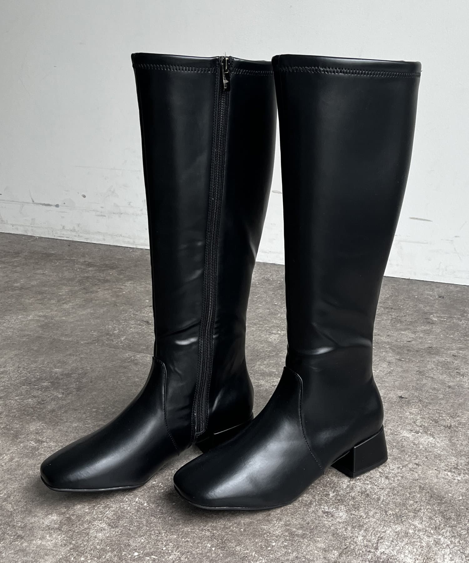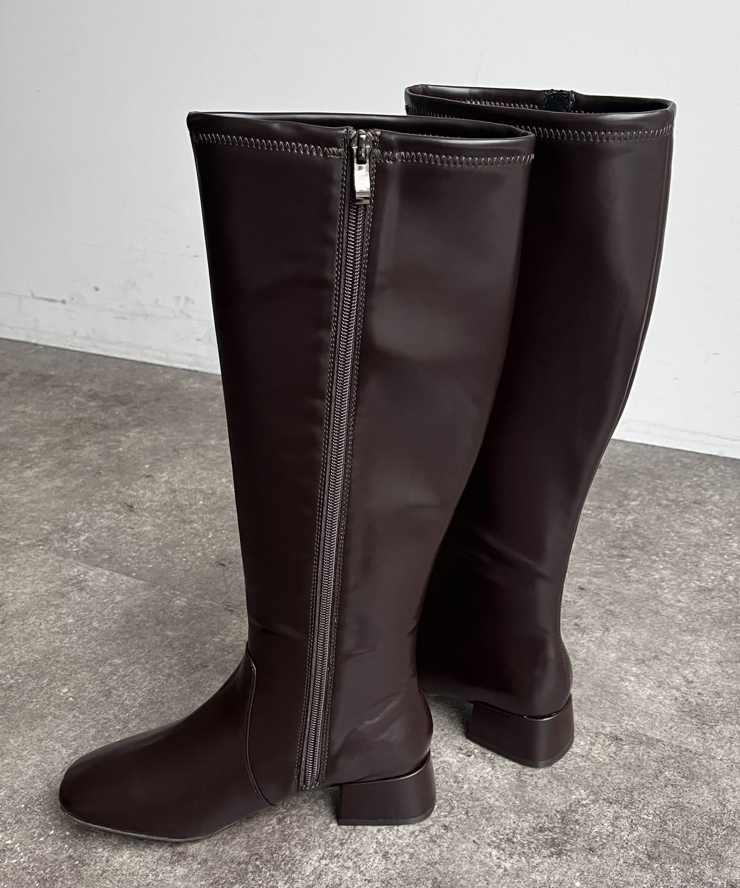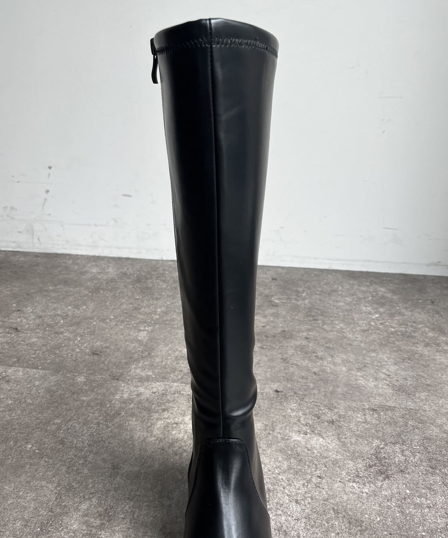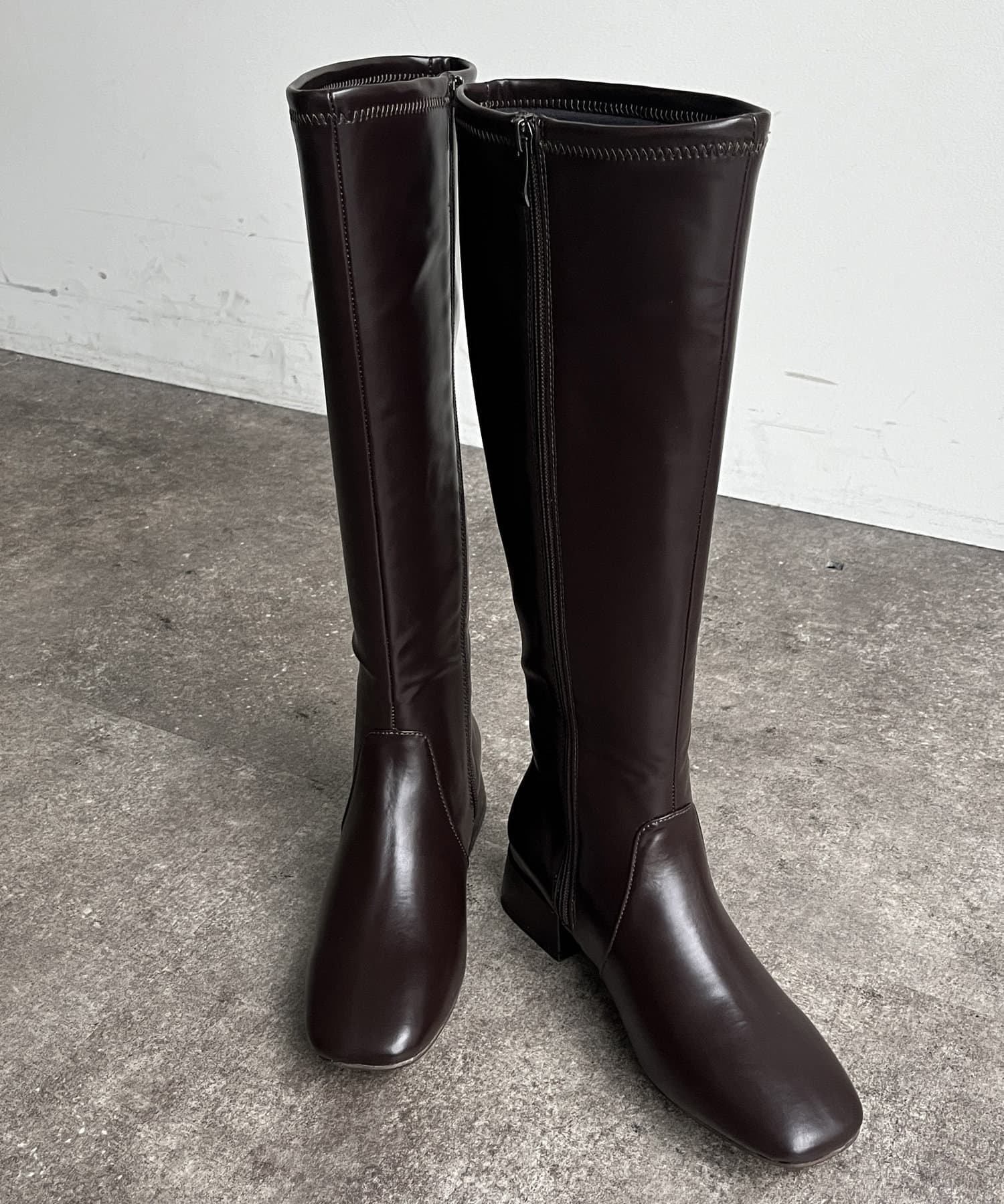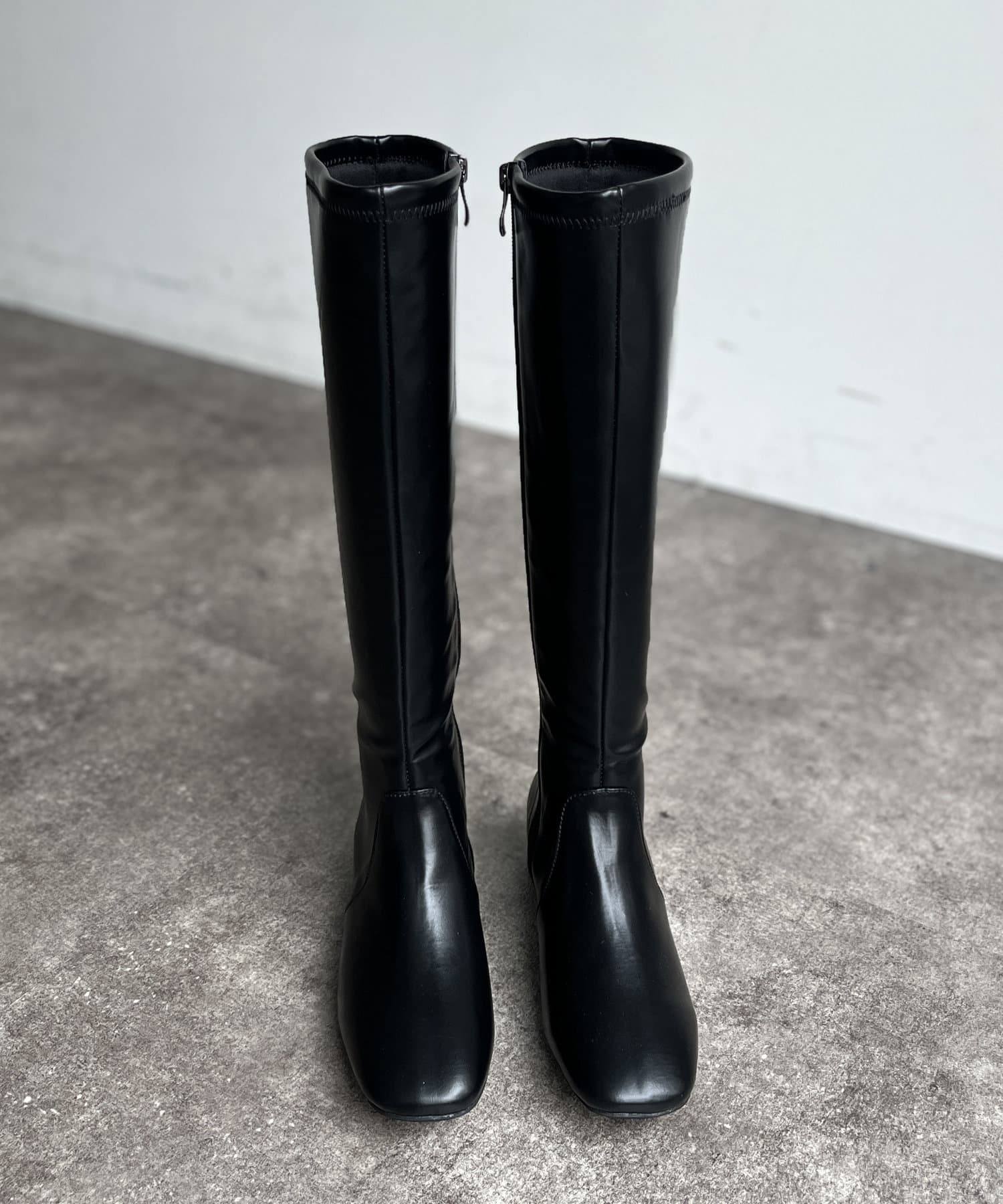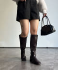 ブーツを主役にしたミニボトムとのスタイリングや、