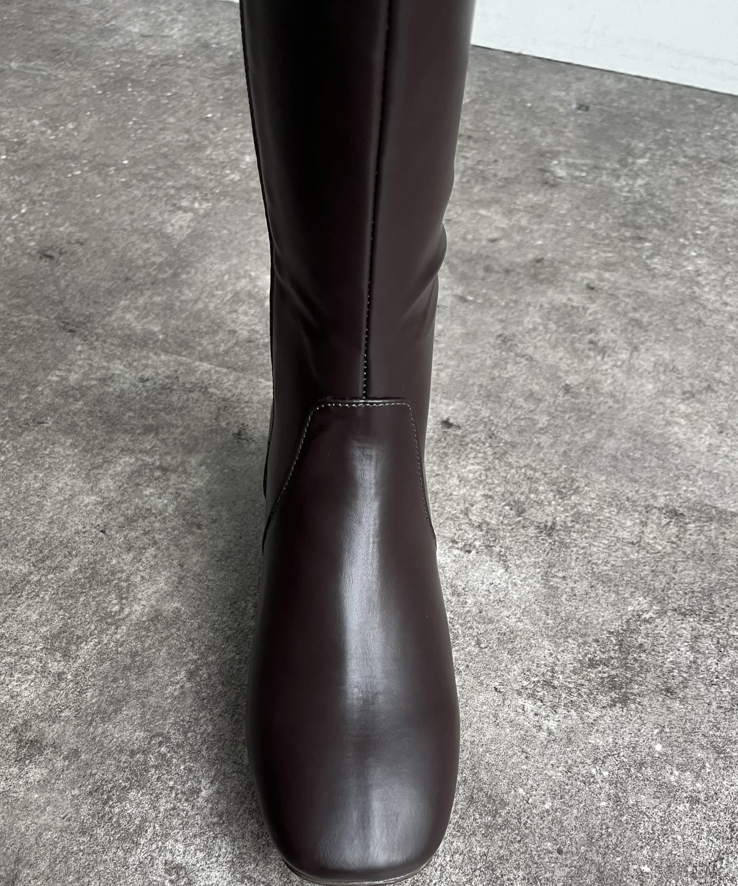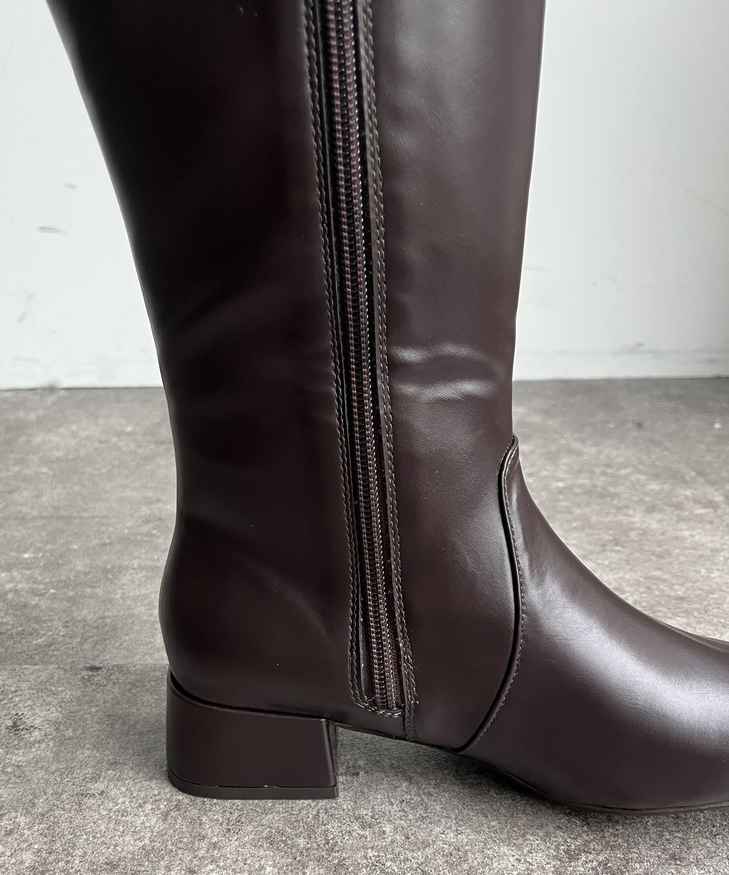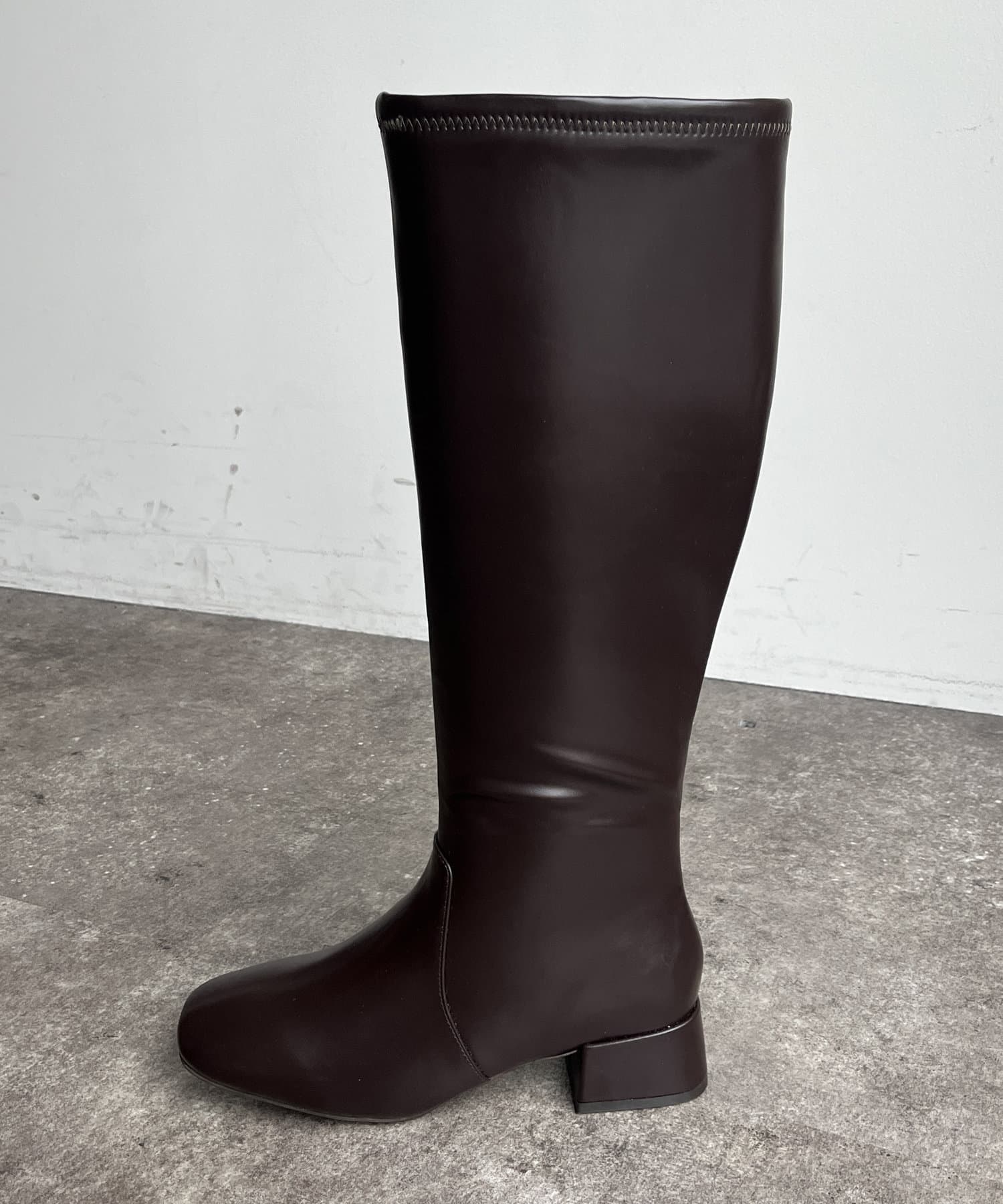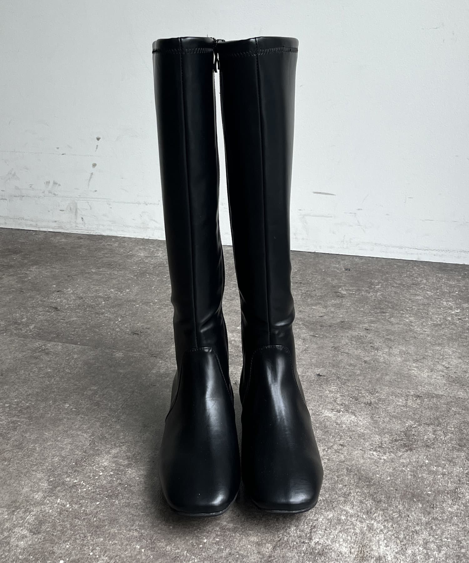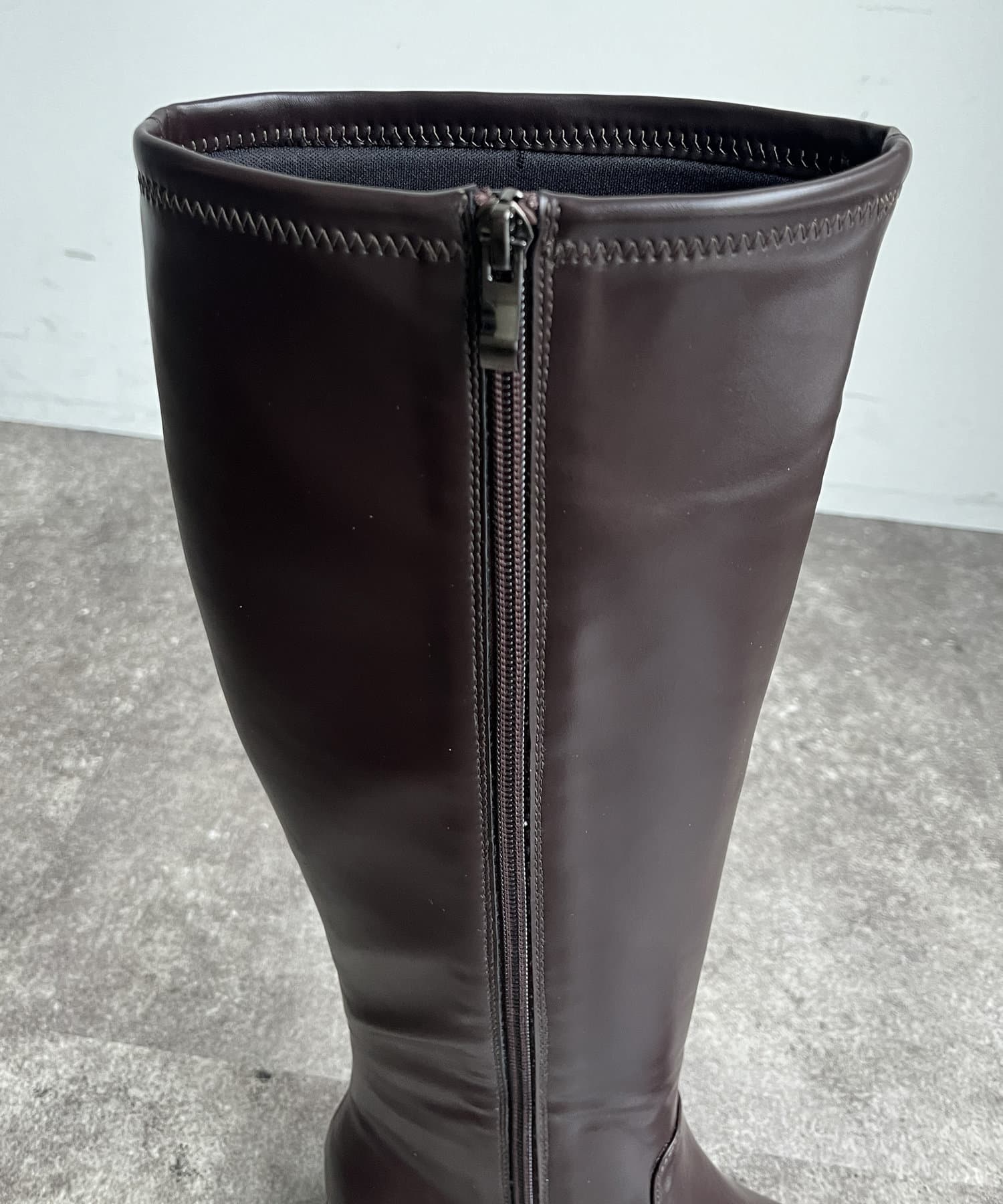 ブーツを主役にしたミニボトムとのスタイリングや、