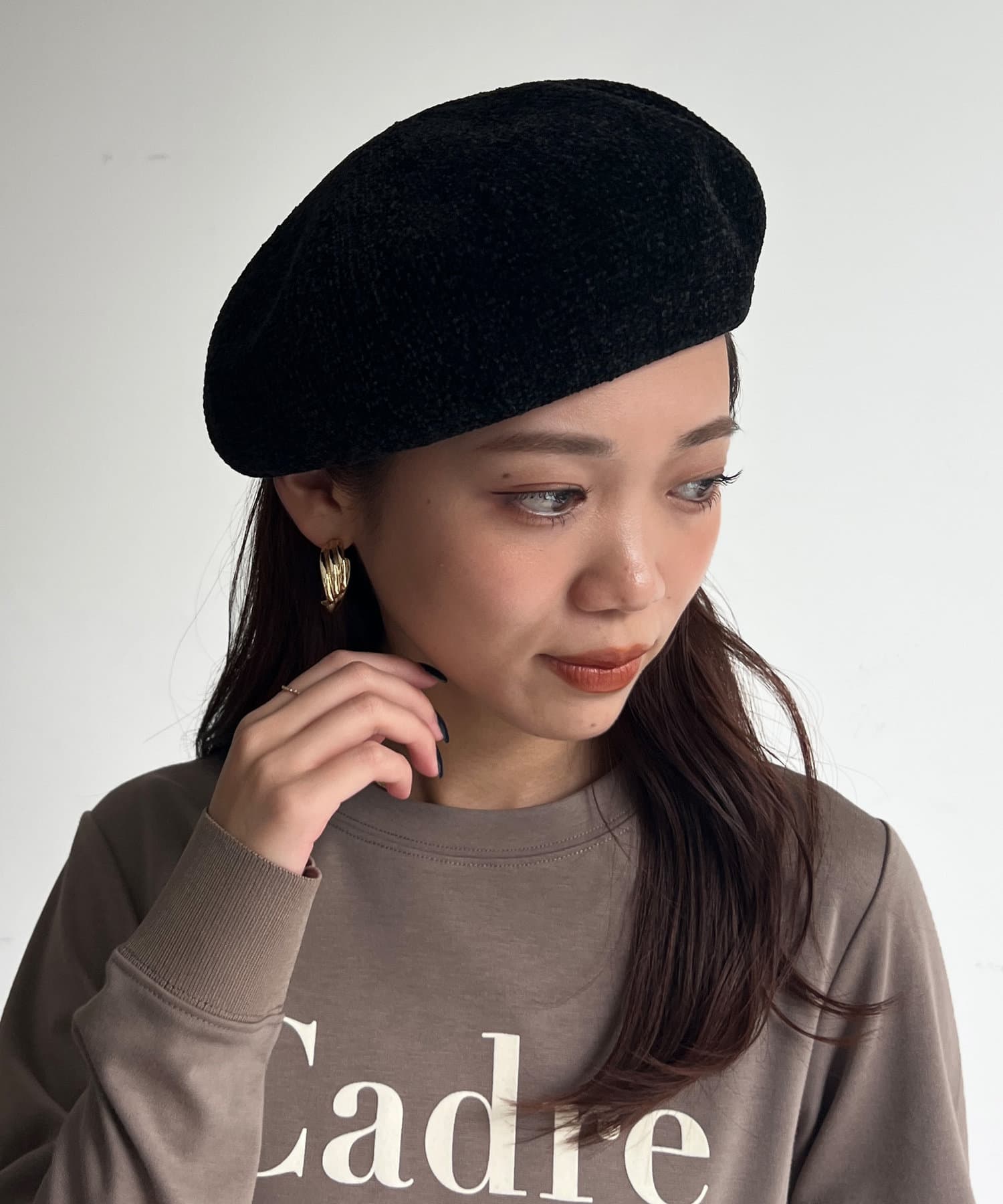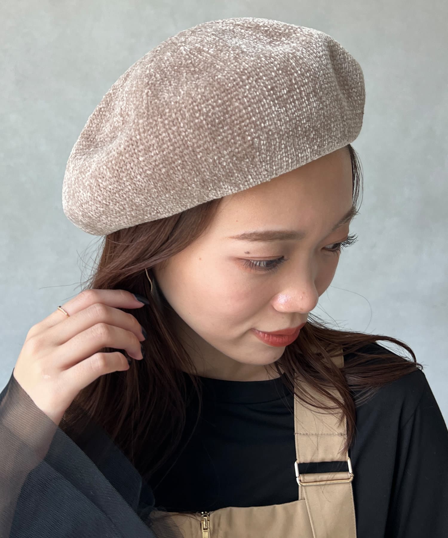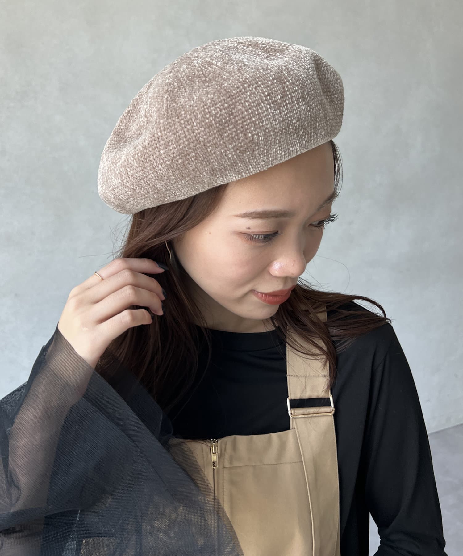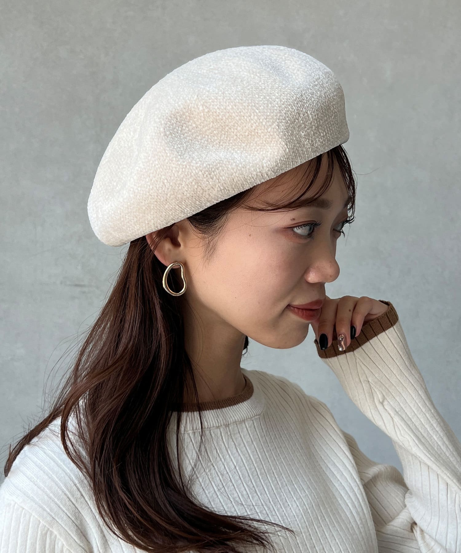 モール糸の柔らかなふわっと丸みのあるベレー帽。