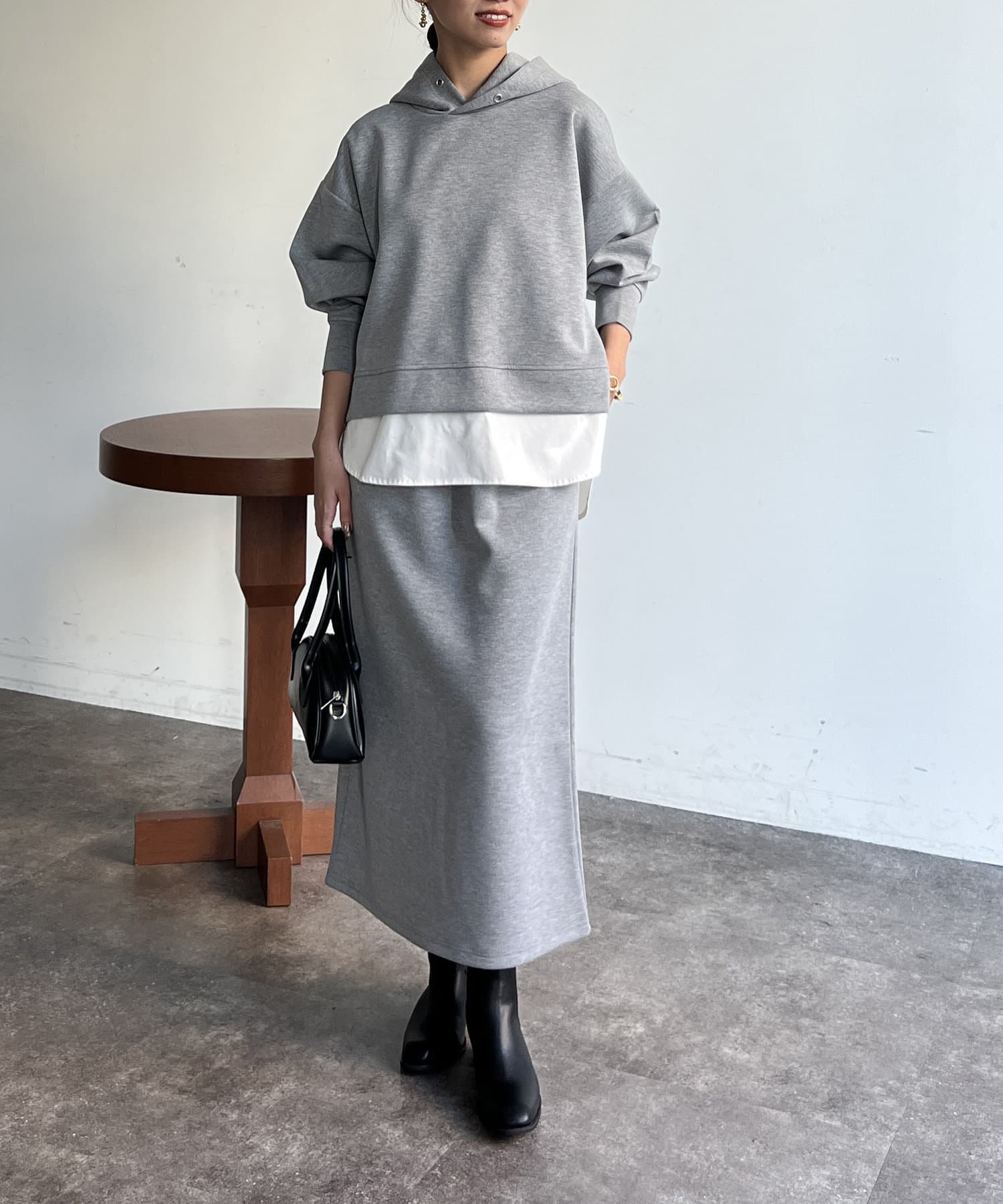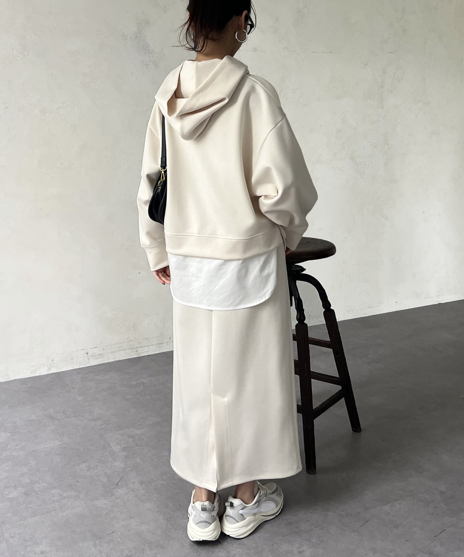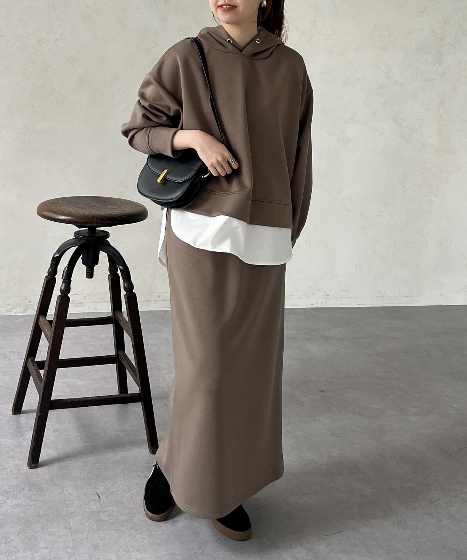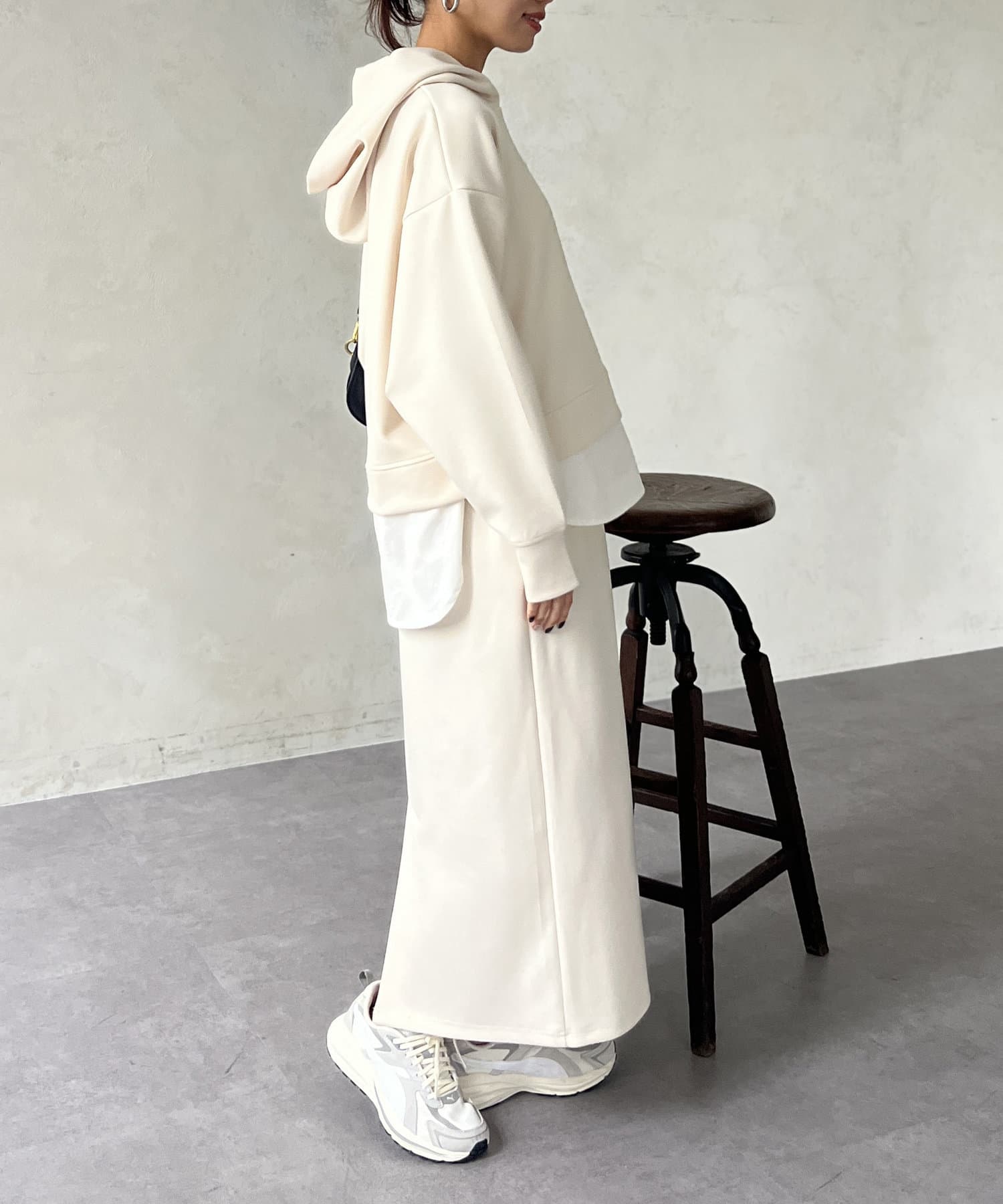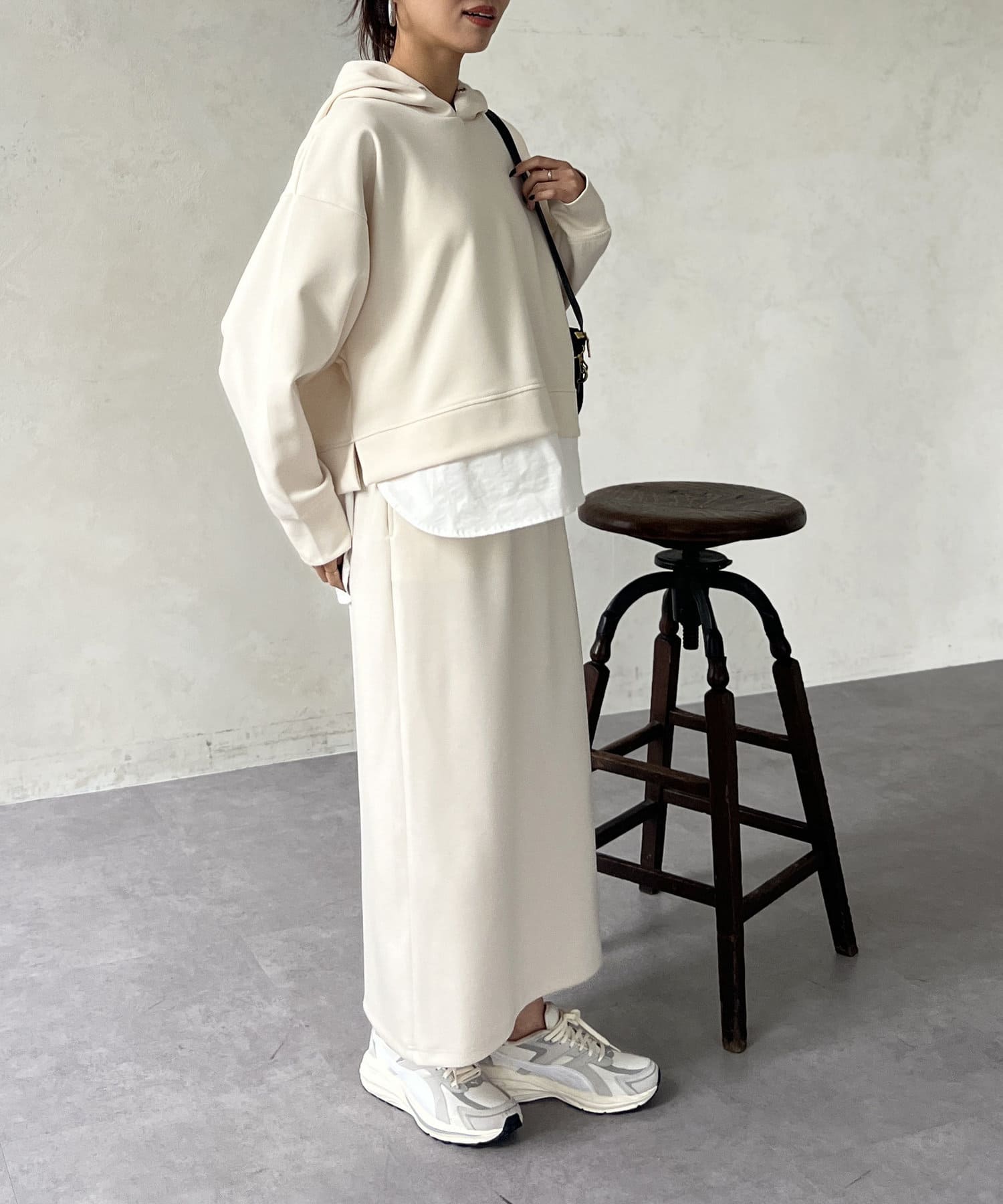 【着回し力抜群】ボンディングフードプルオーバー×ナロースカート