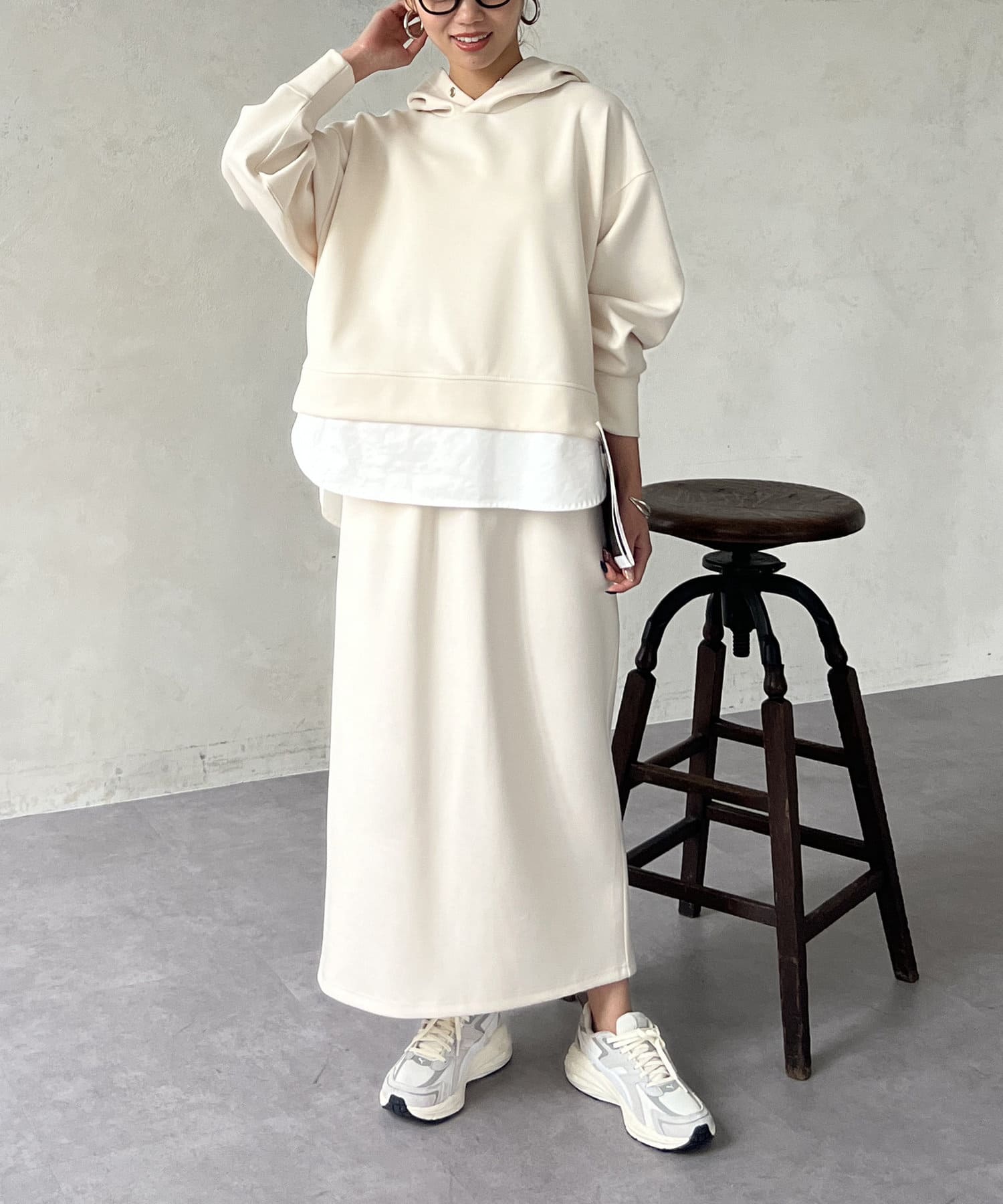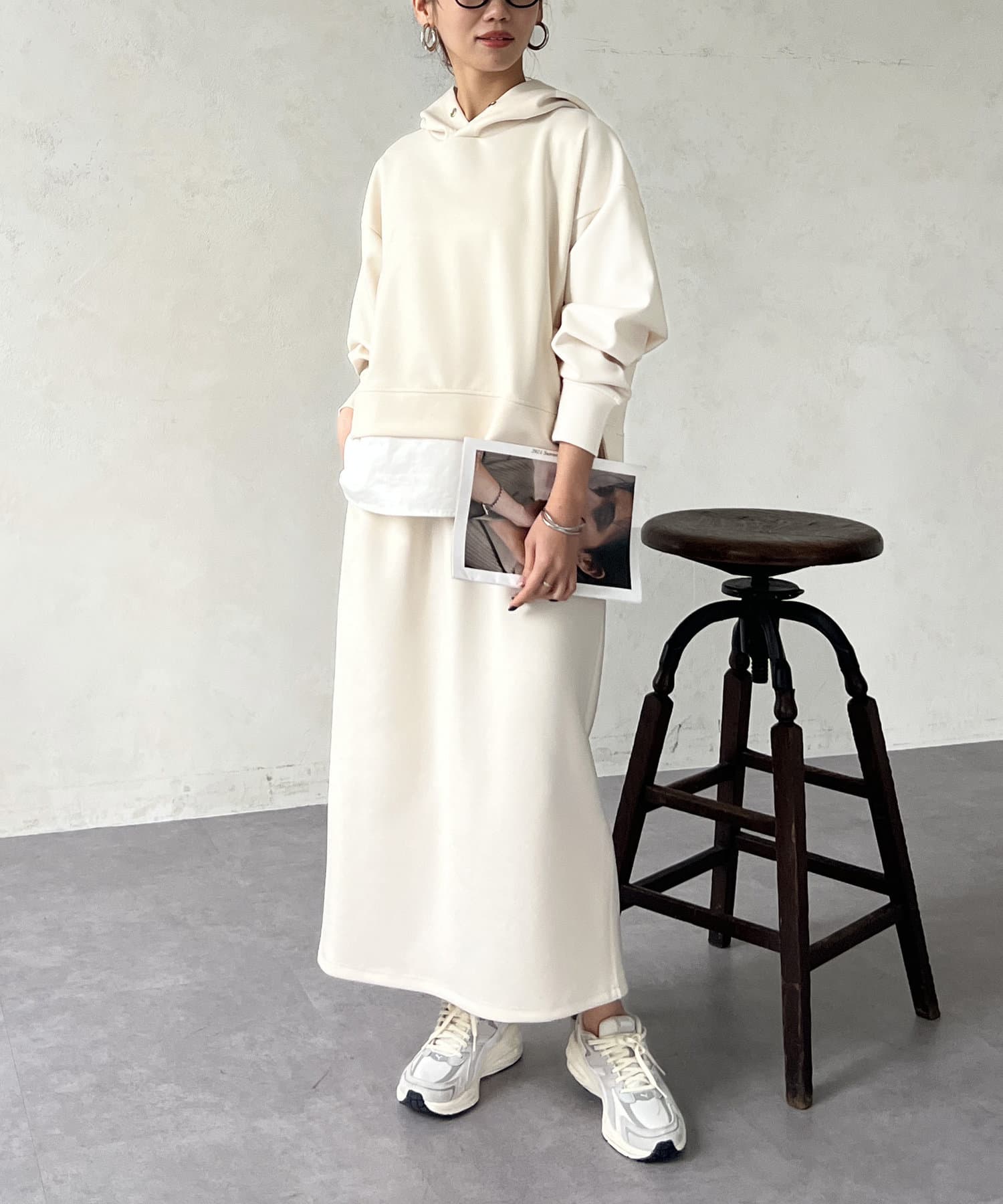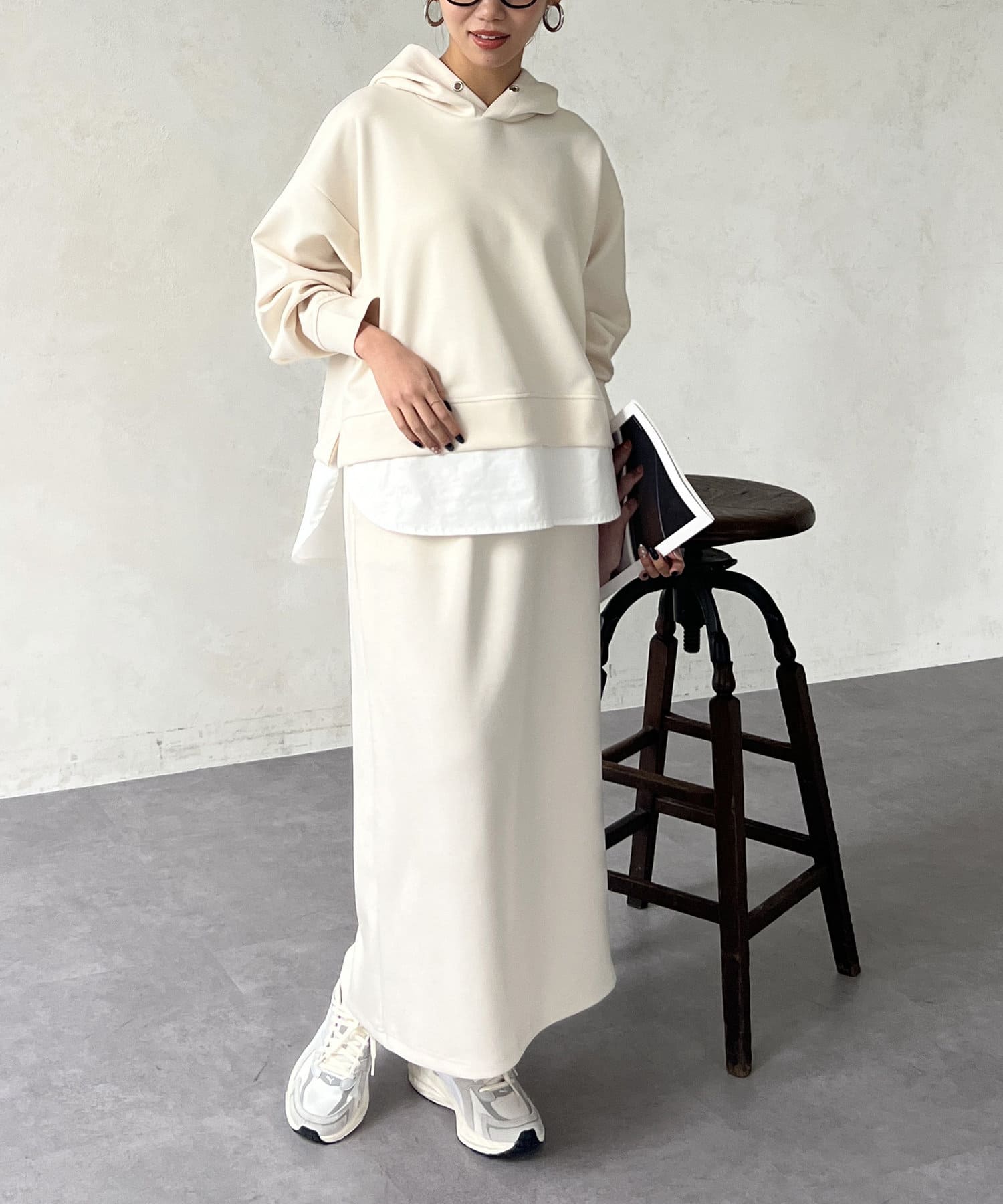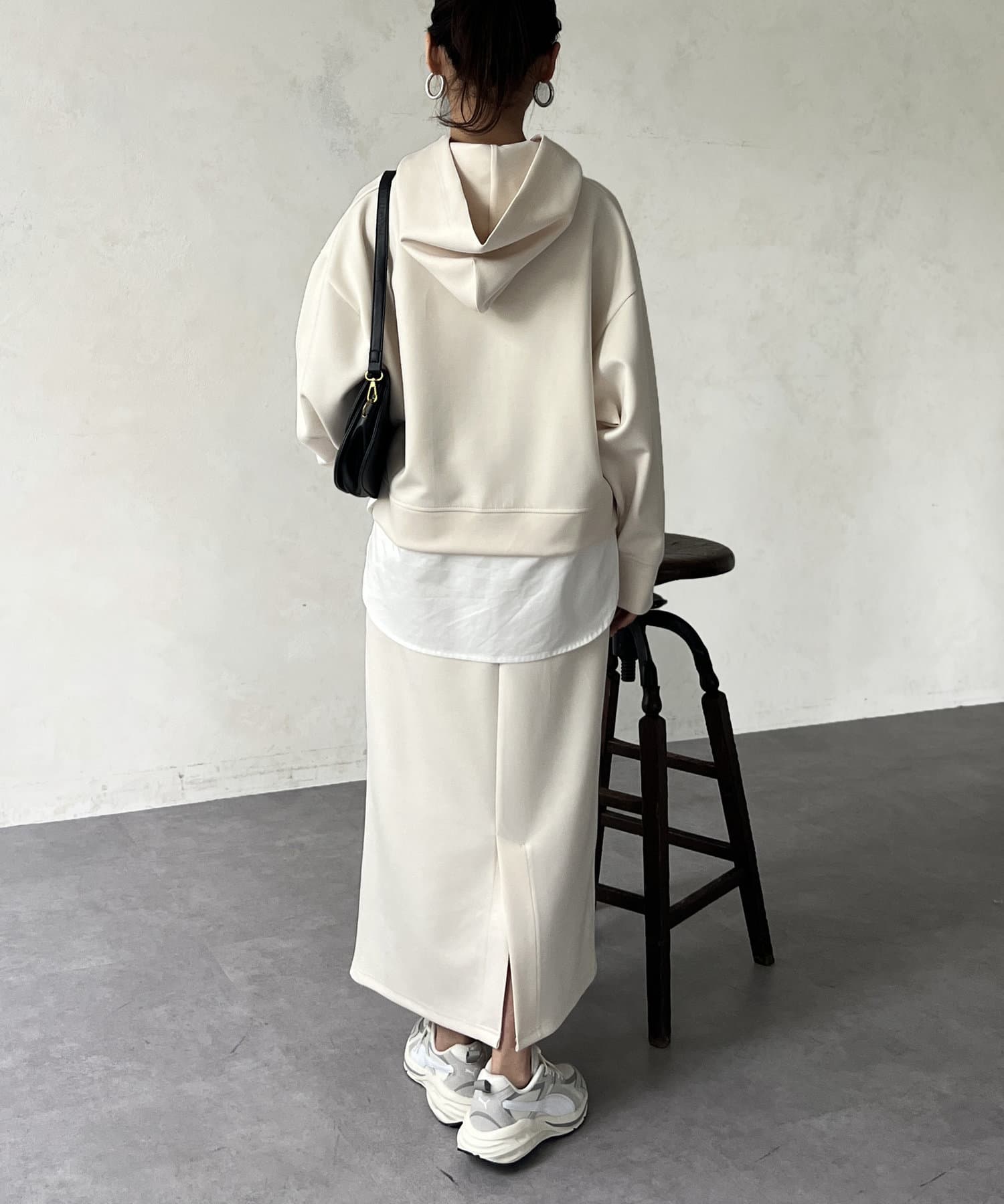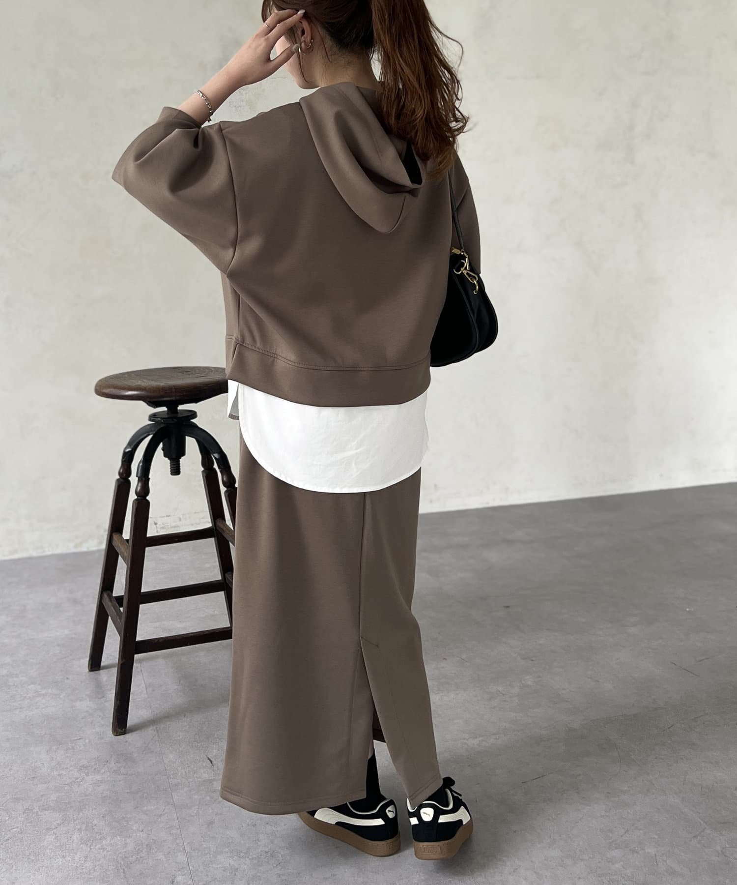 【着回し力抜群】ボンディングフードプルオーバー×ナロースカート