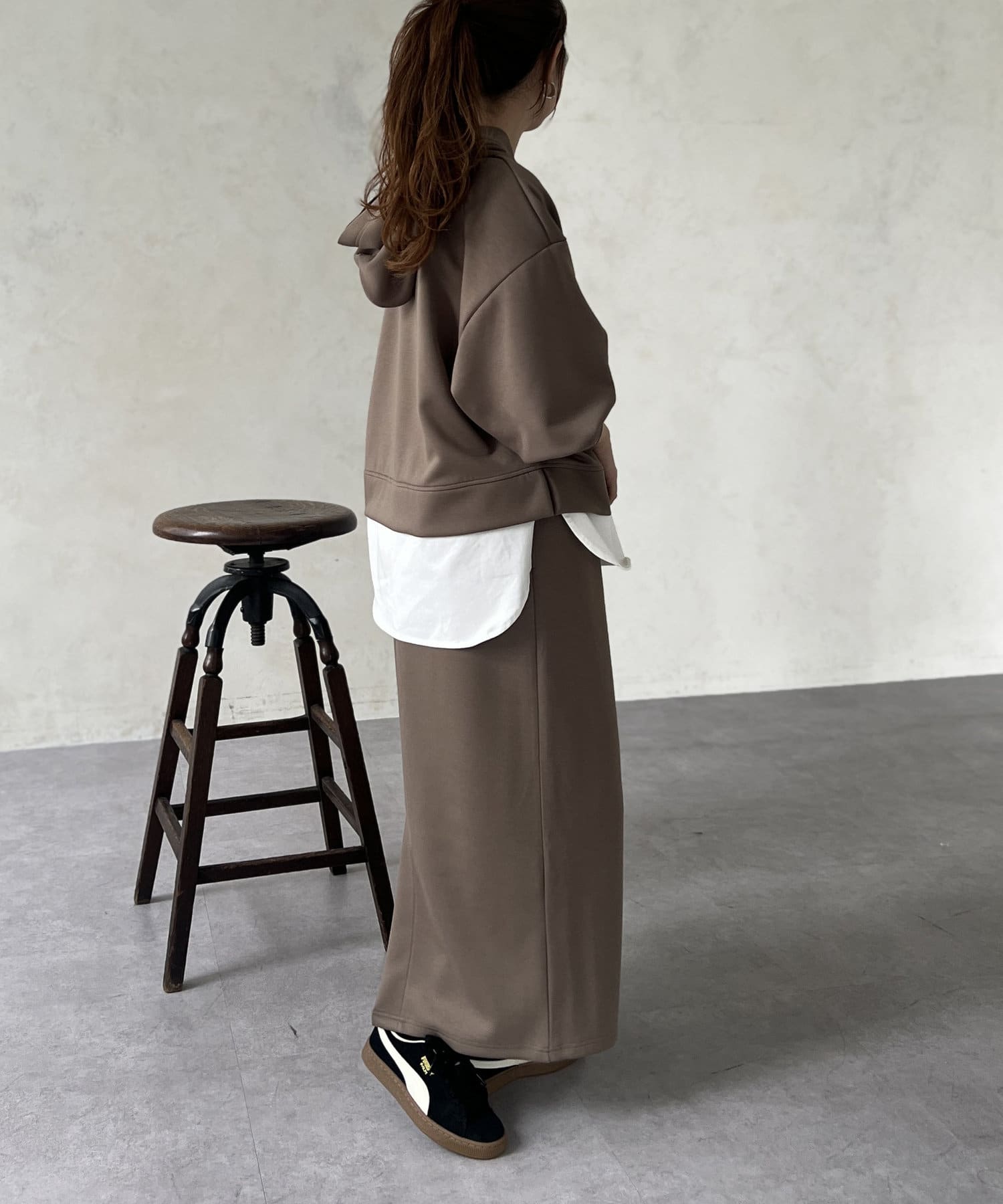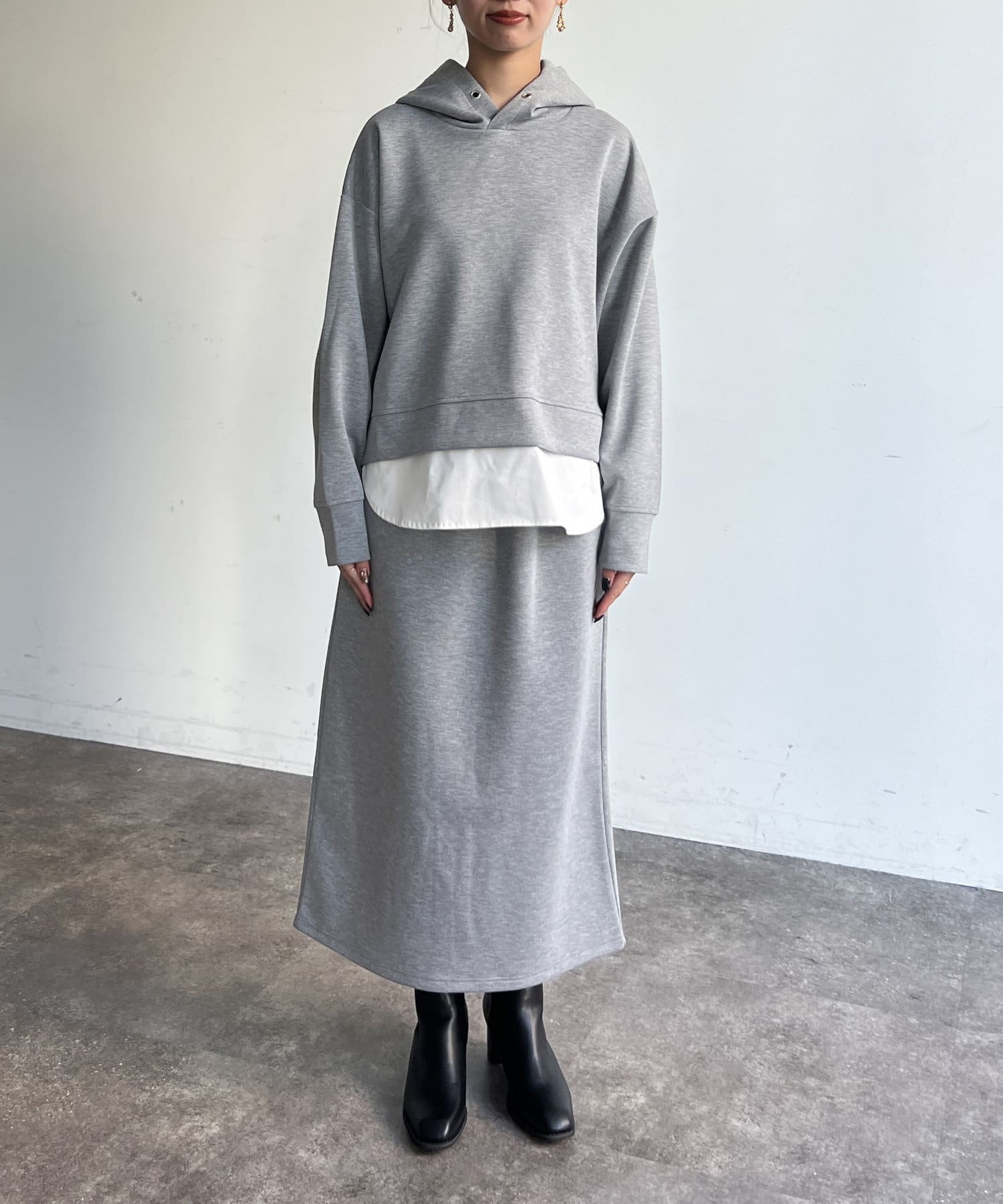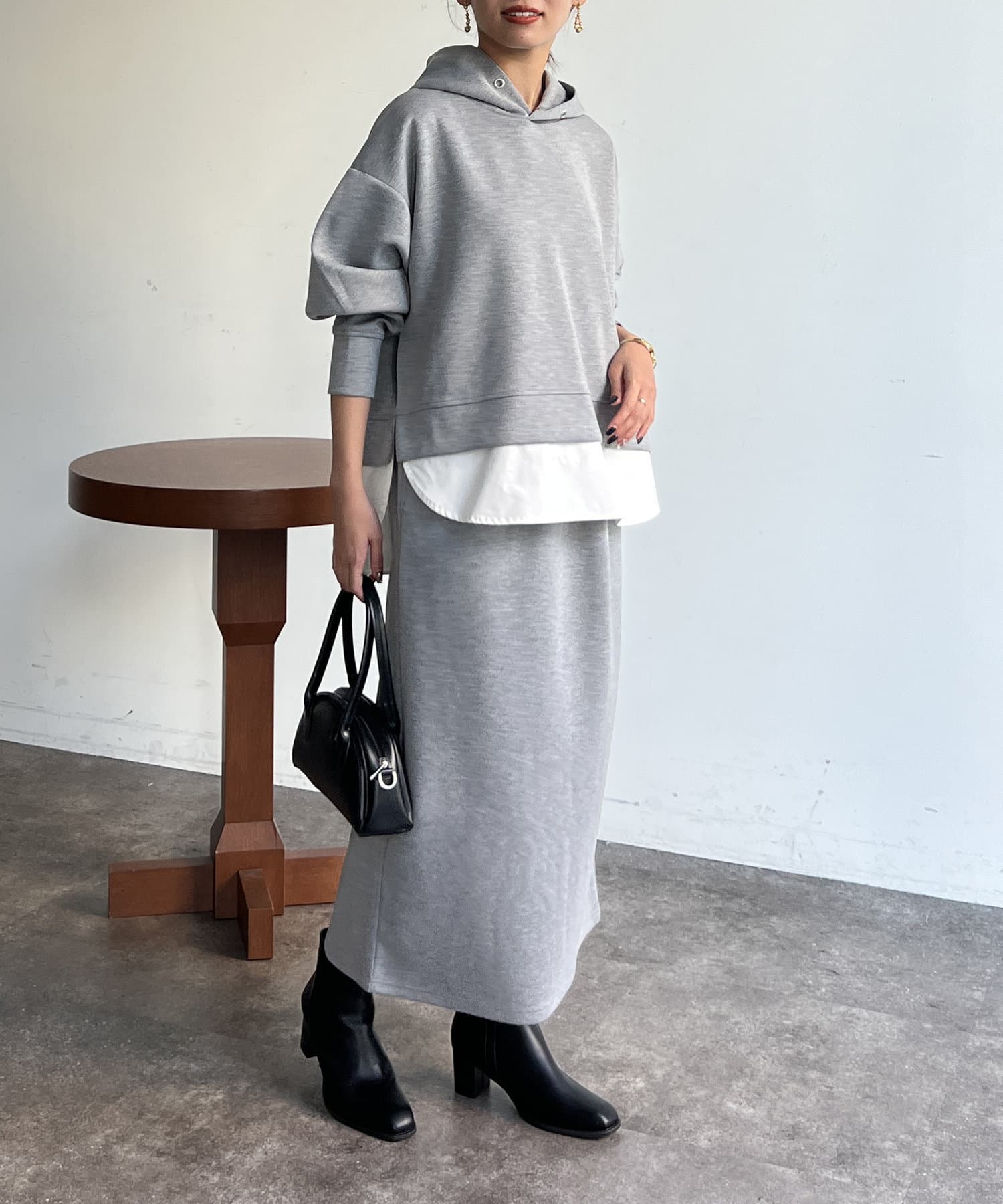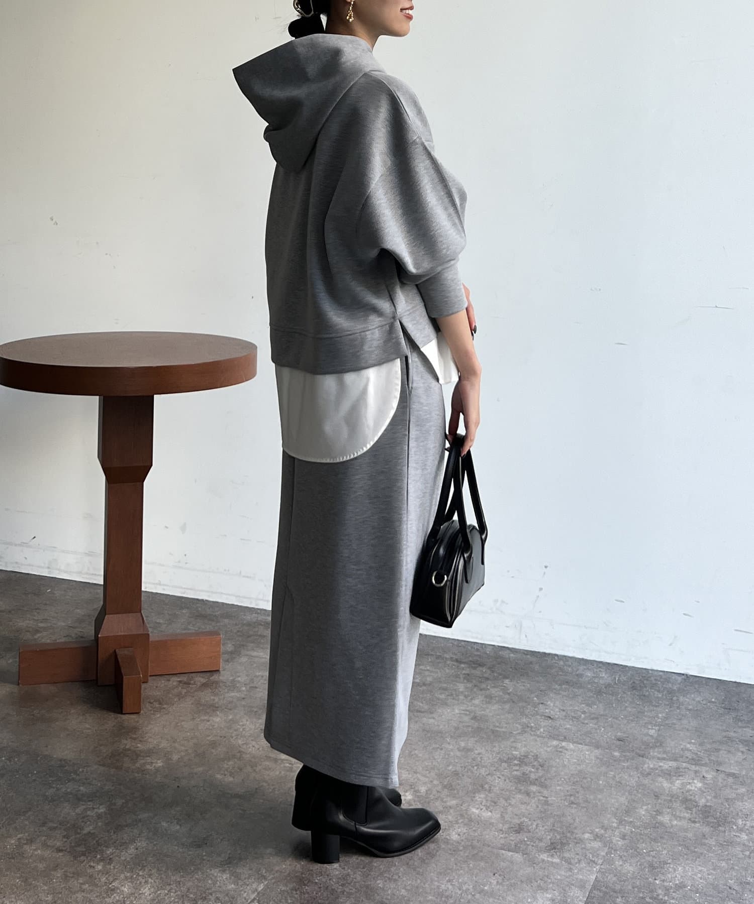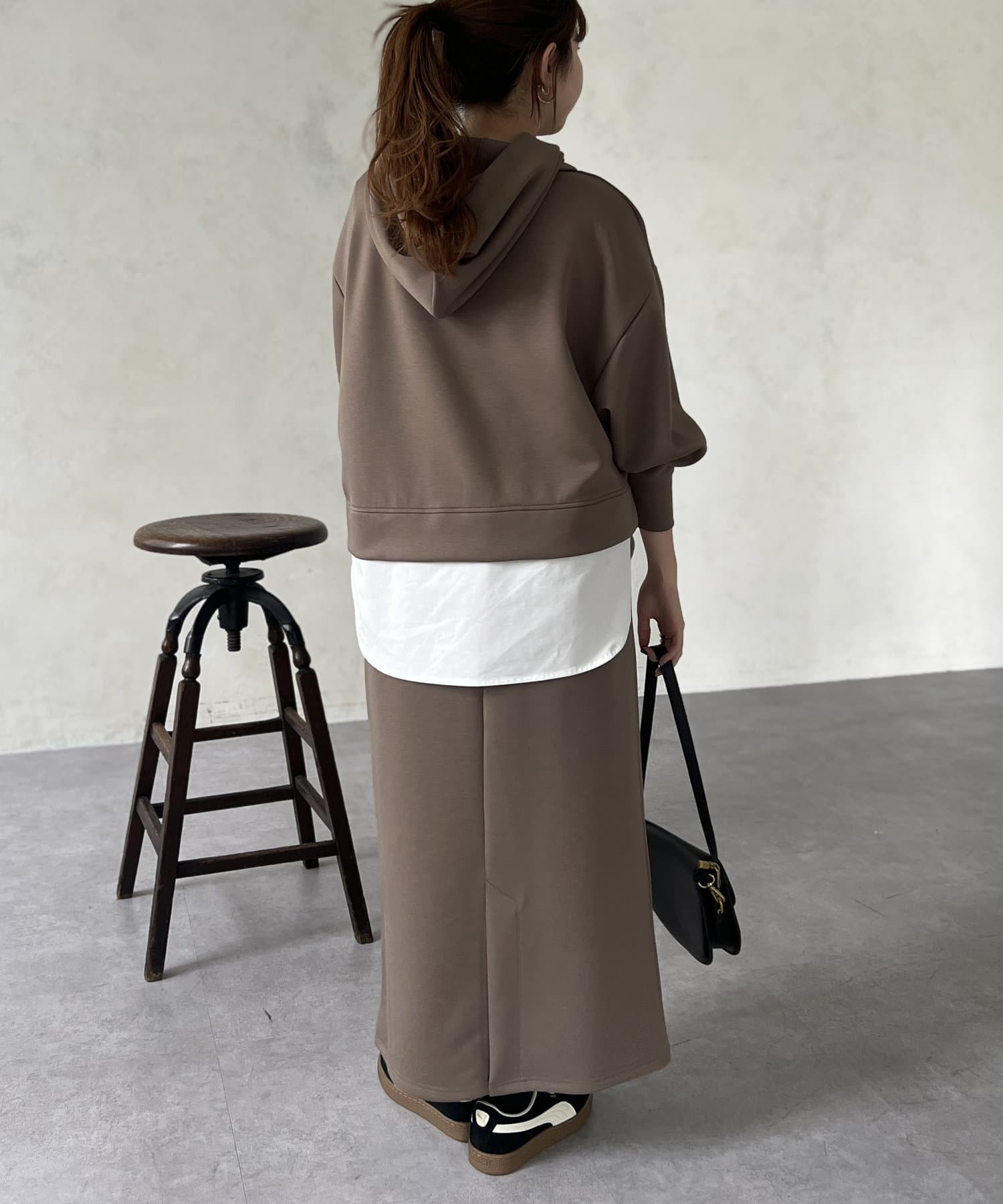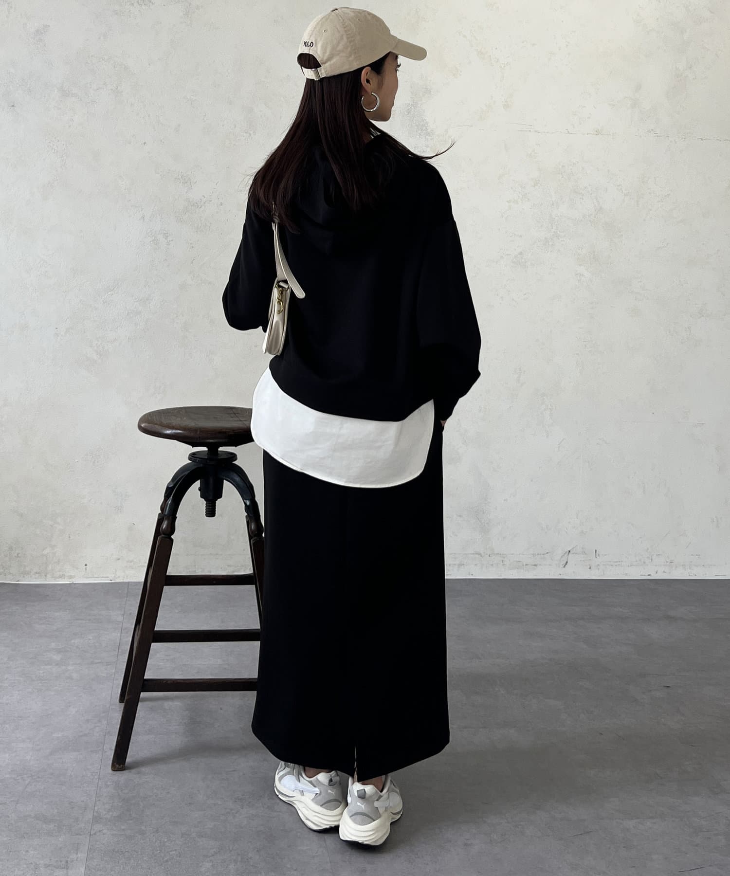 【着回し力抜群】ボンディングフードプルオーバー×ナロースカート