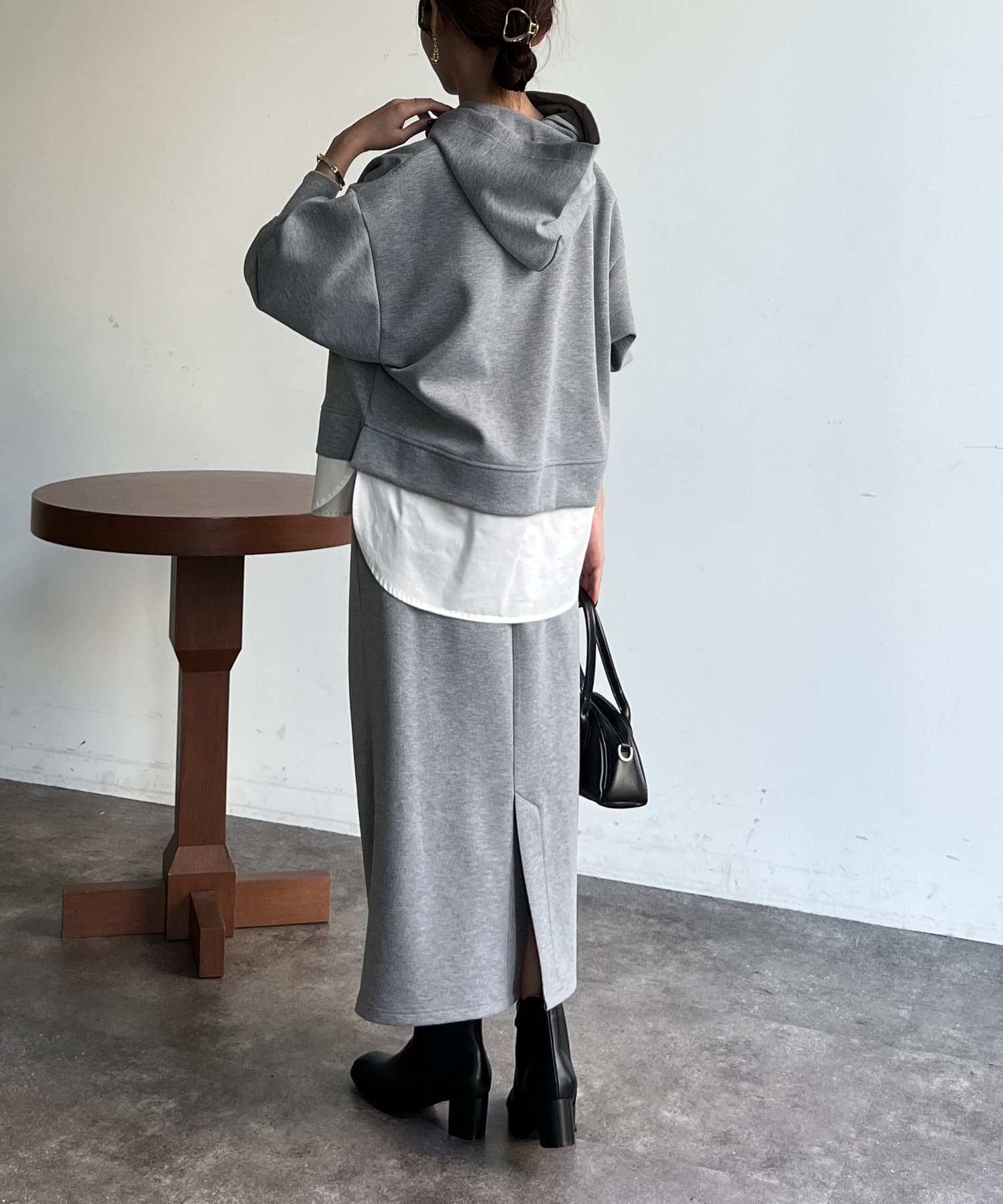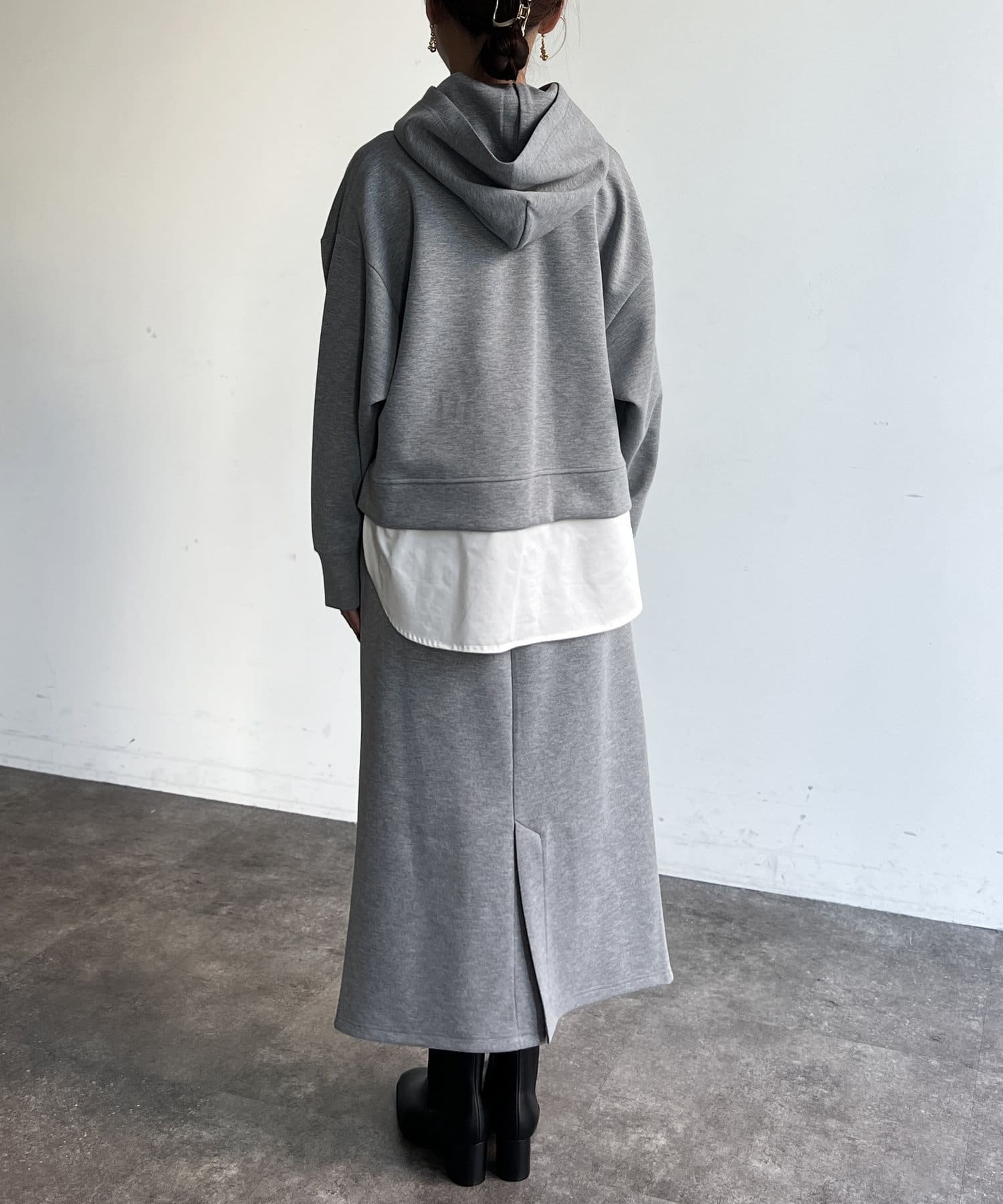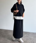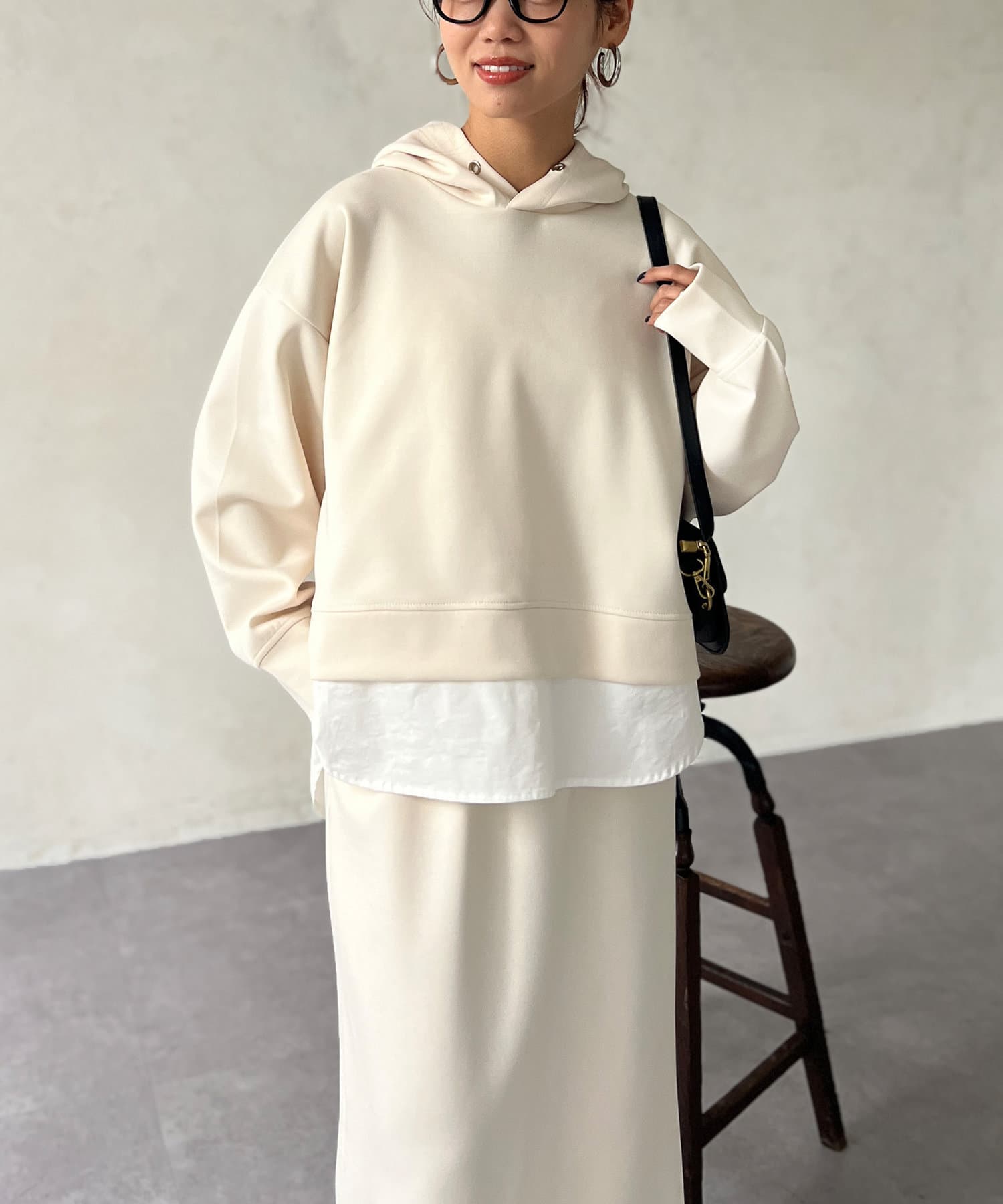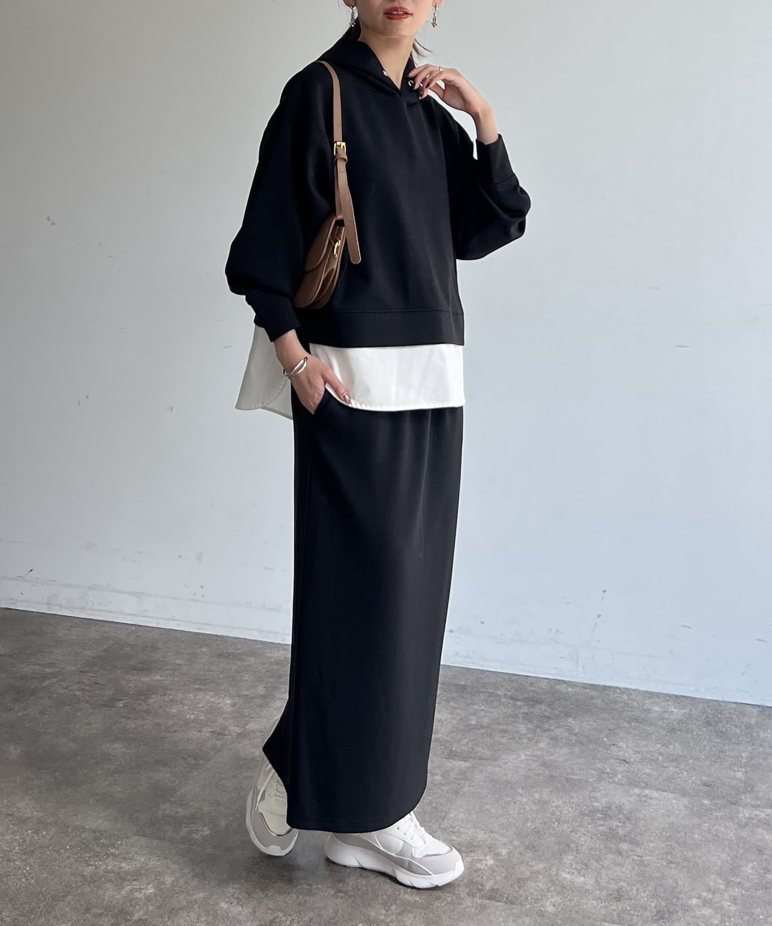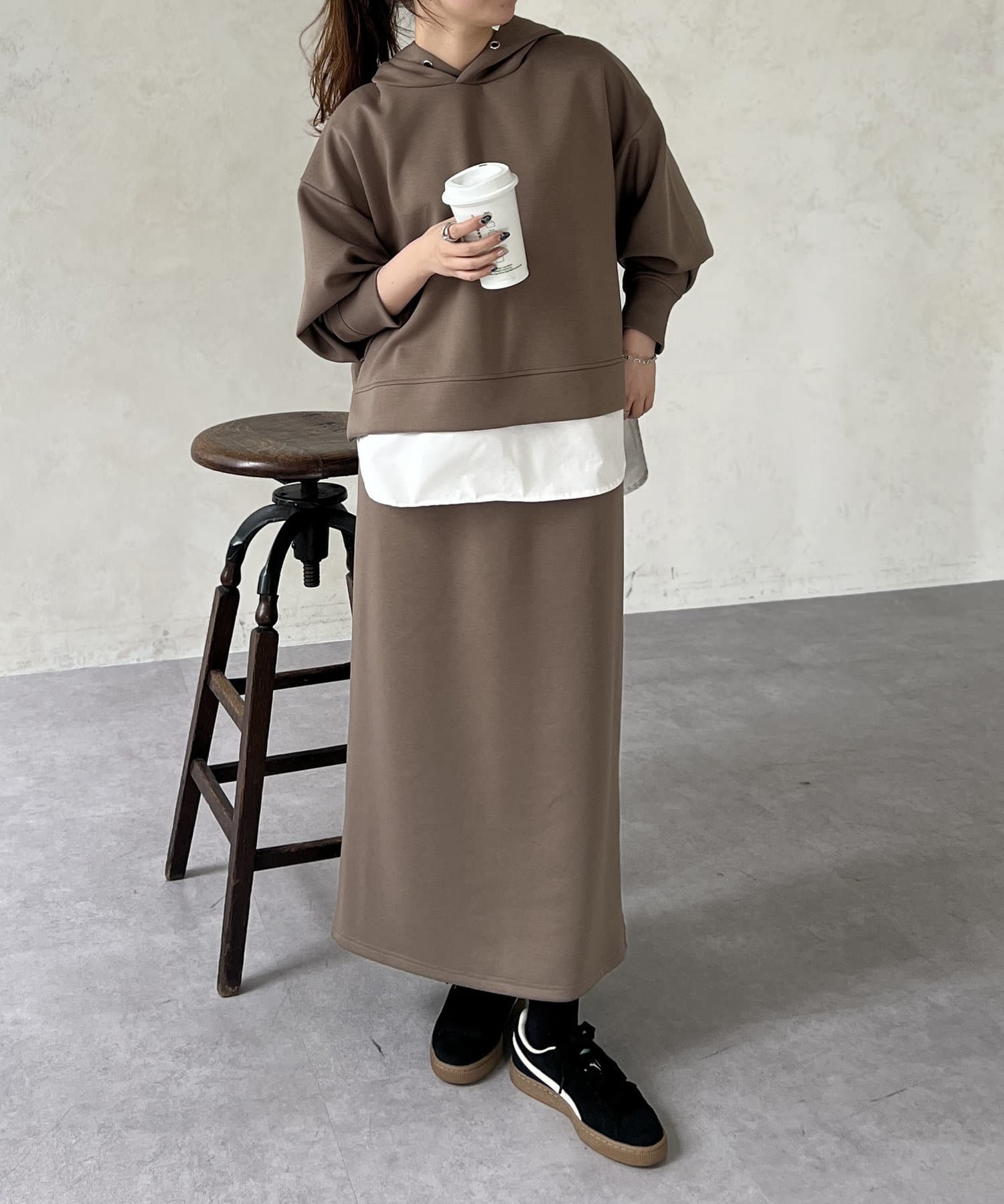 【着回し力抜群】ボンディングフードプルオーバー×ナロースカート
