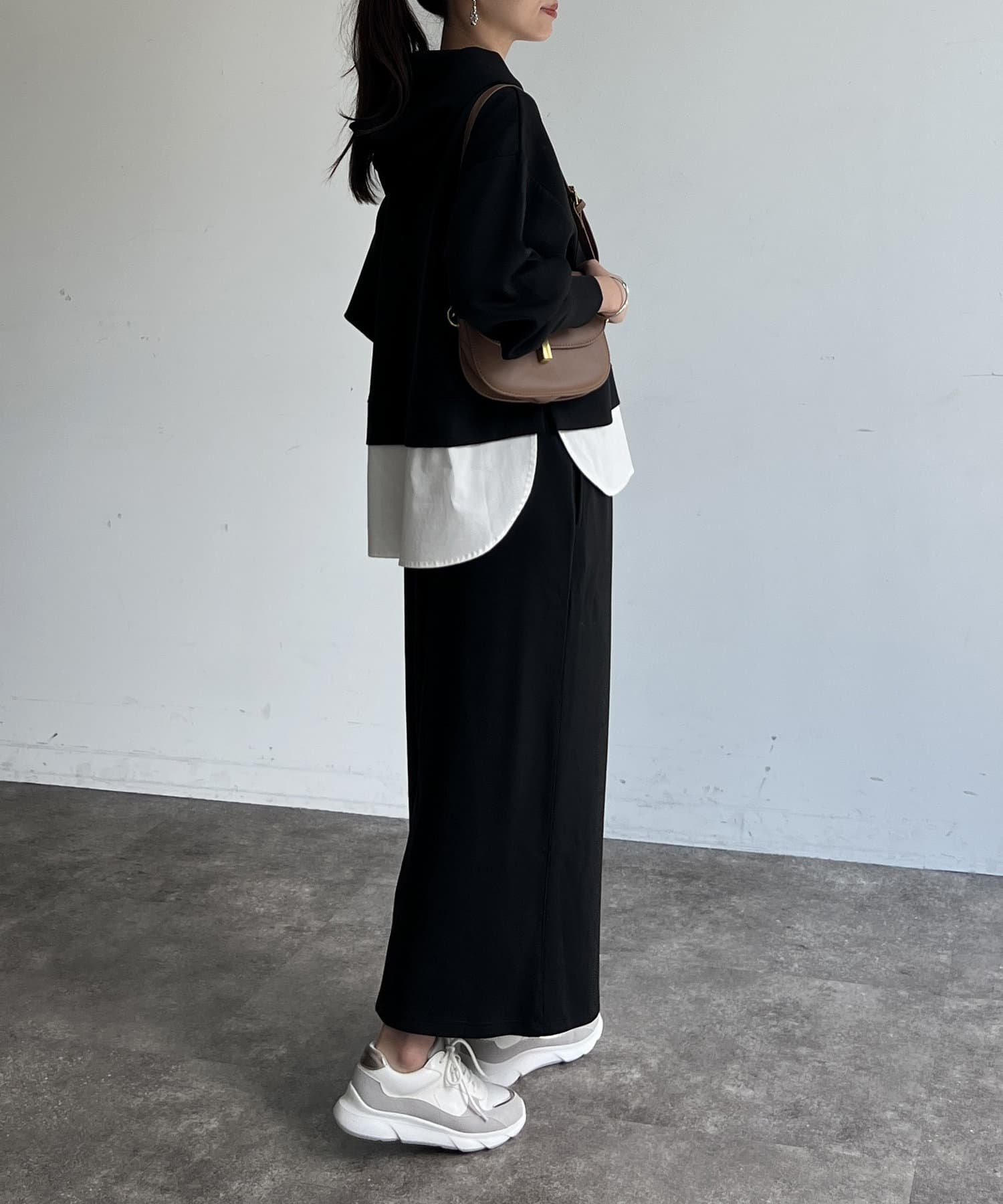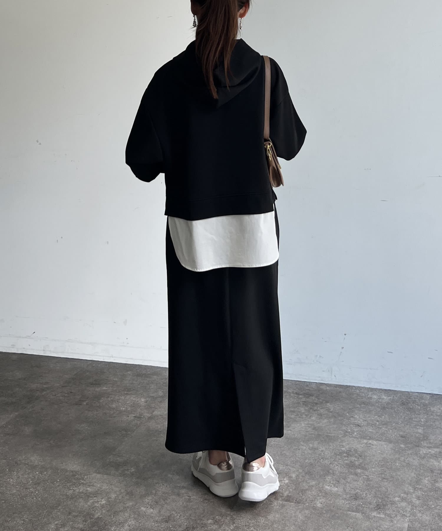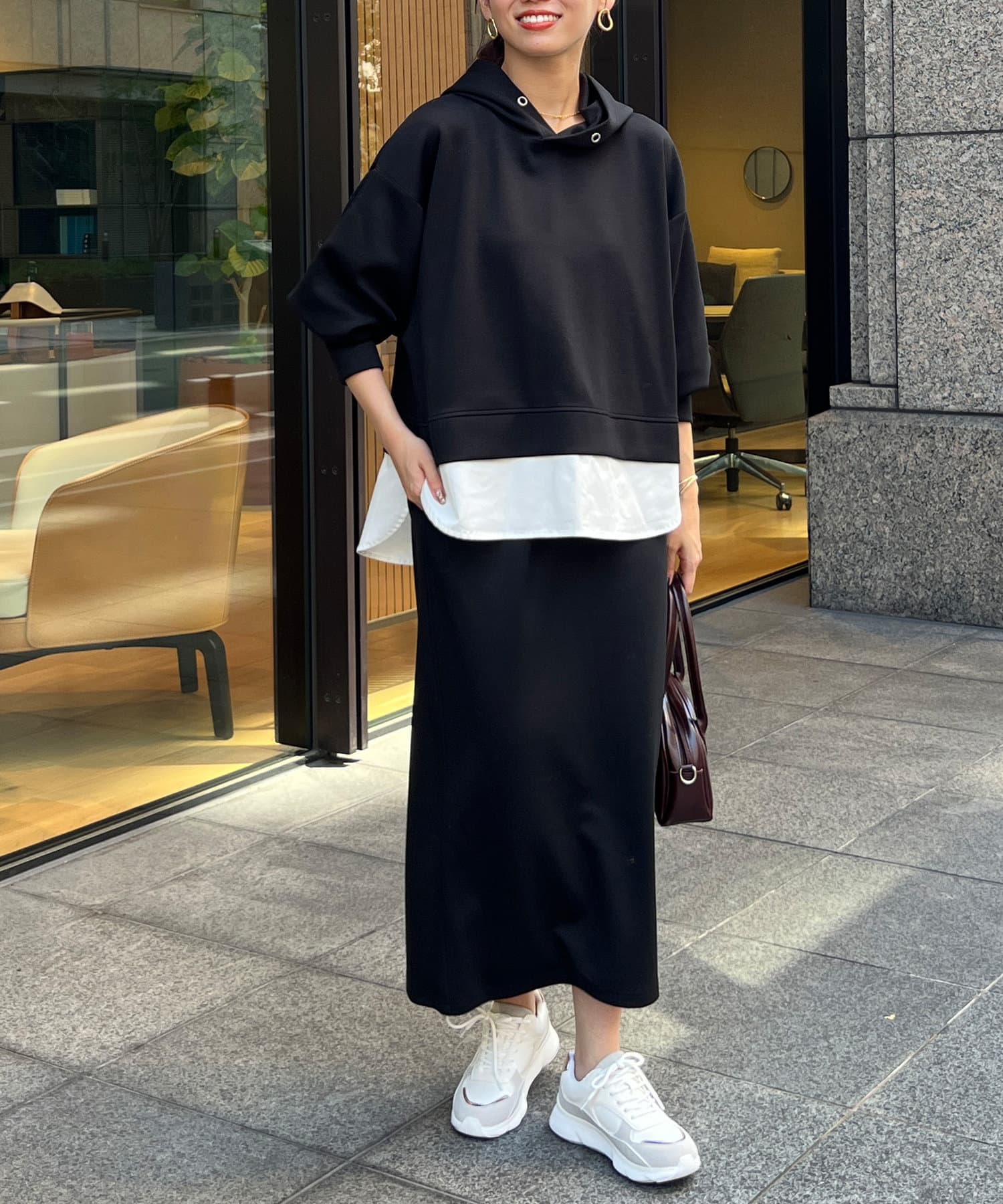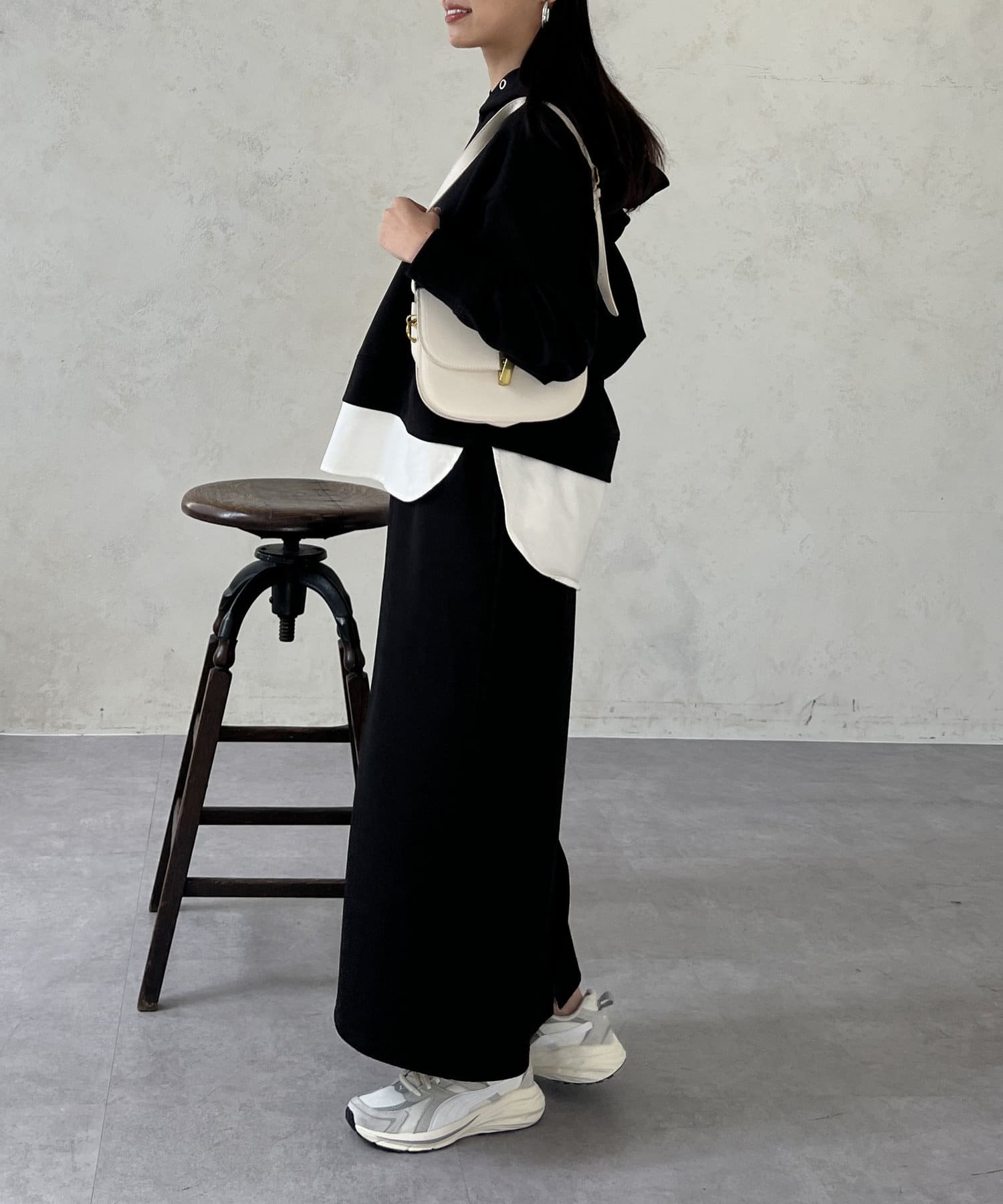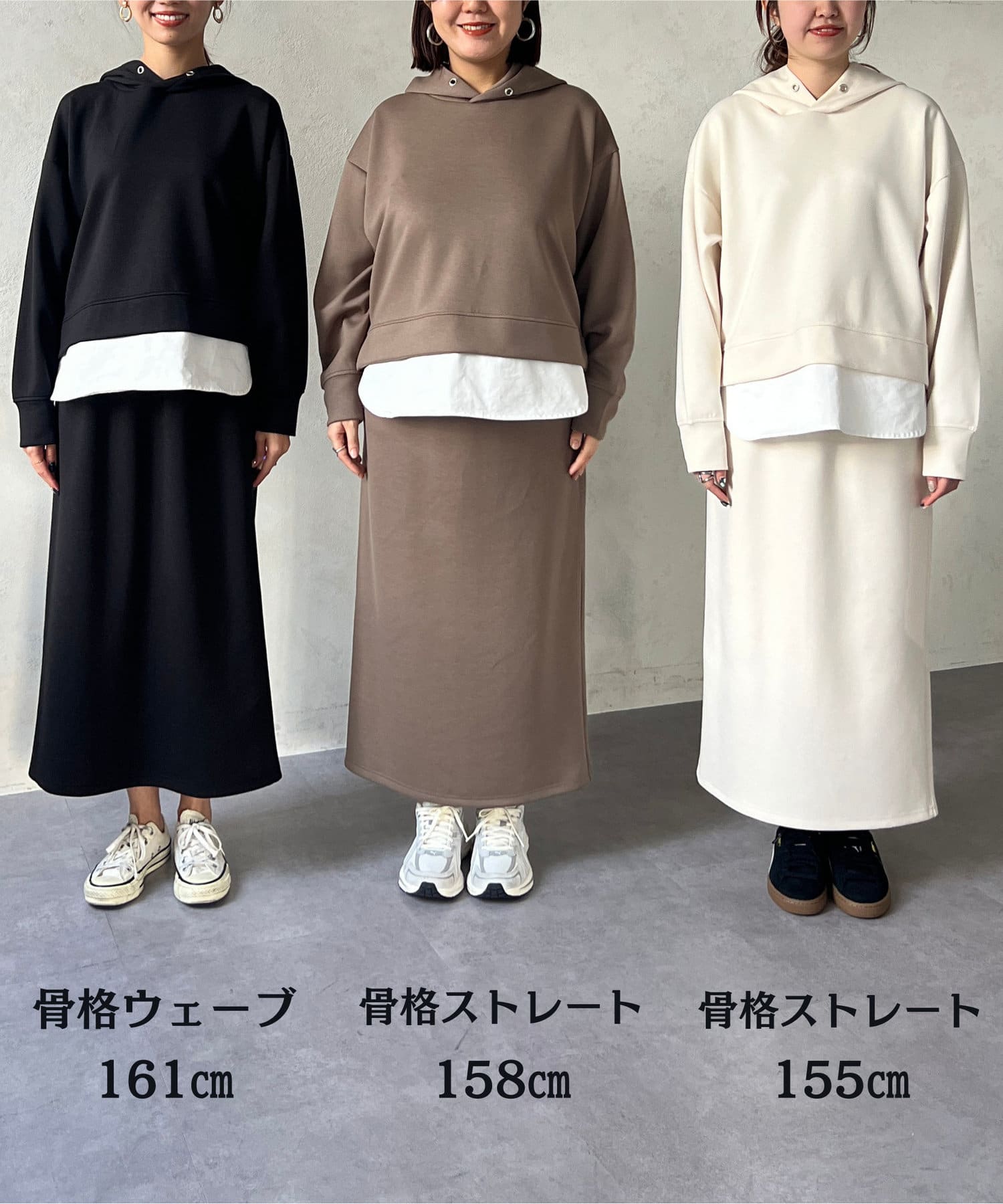 【着回し力抜群】ボンディングフードプルオーバー×ナロースカート