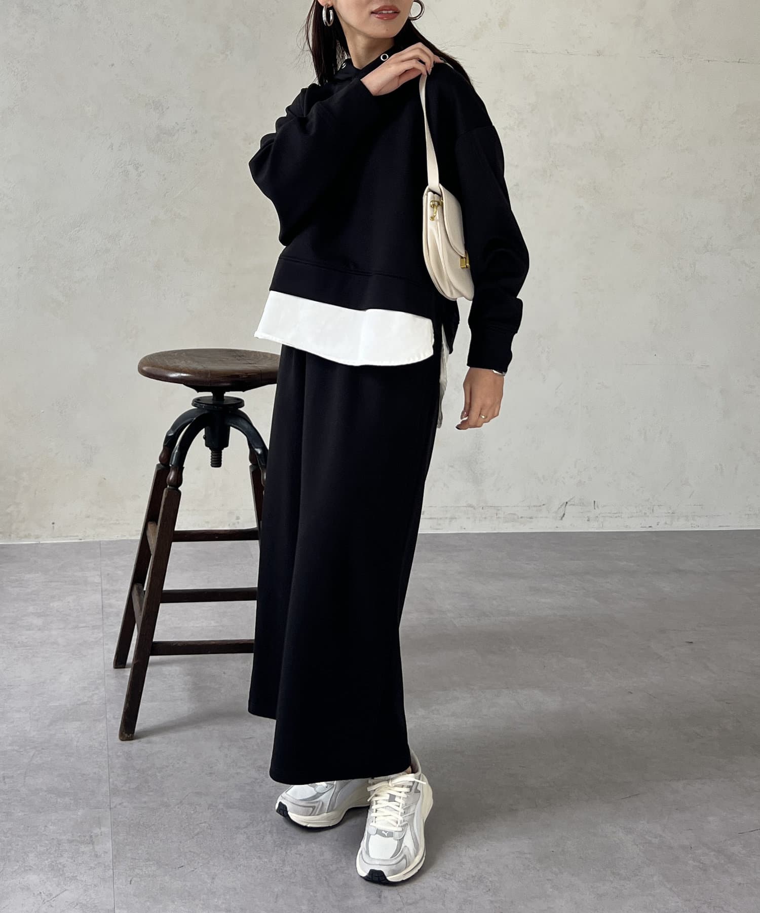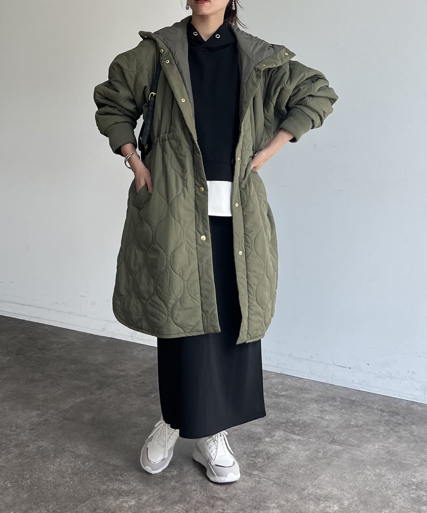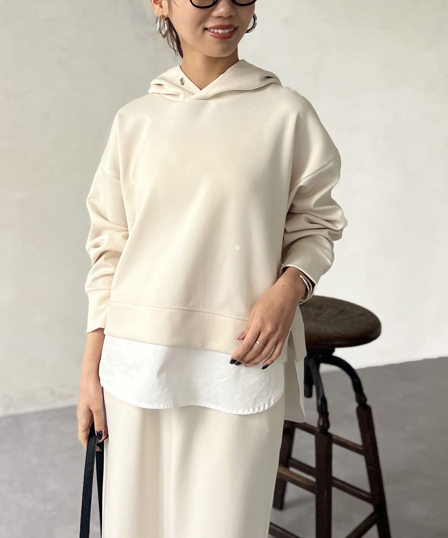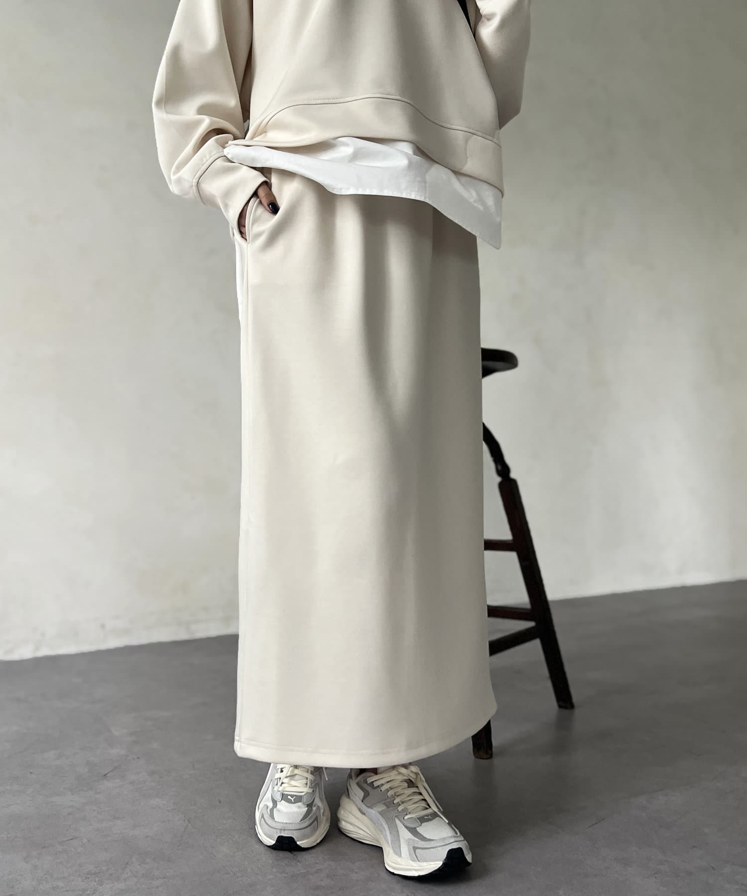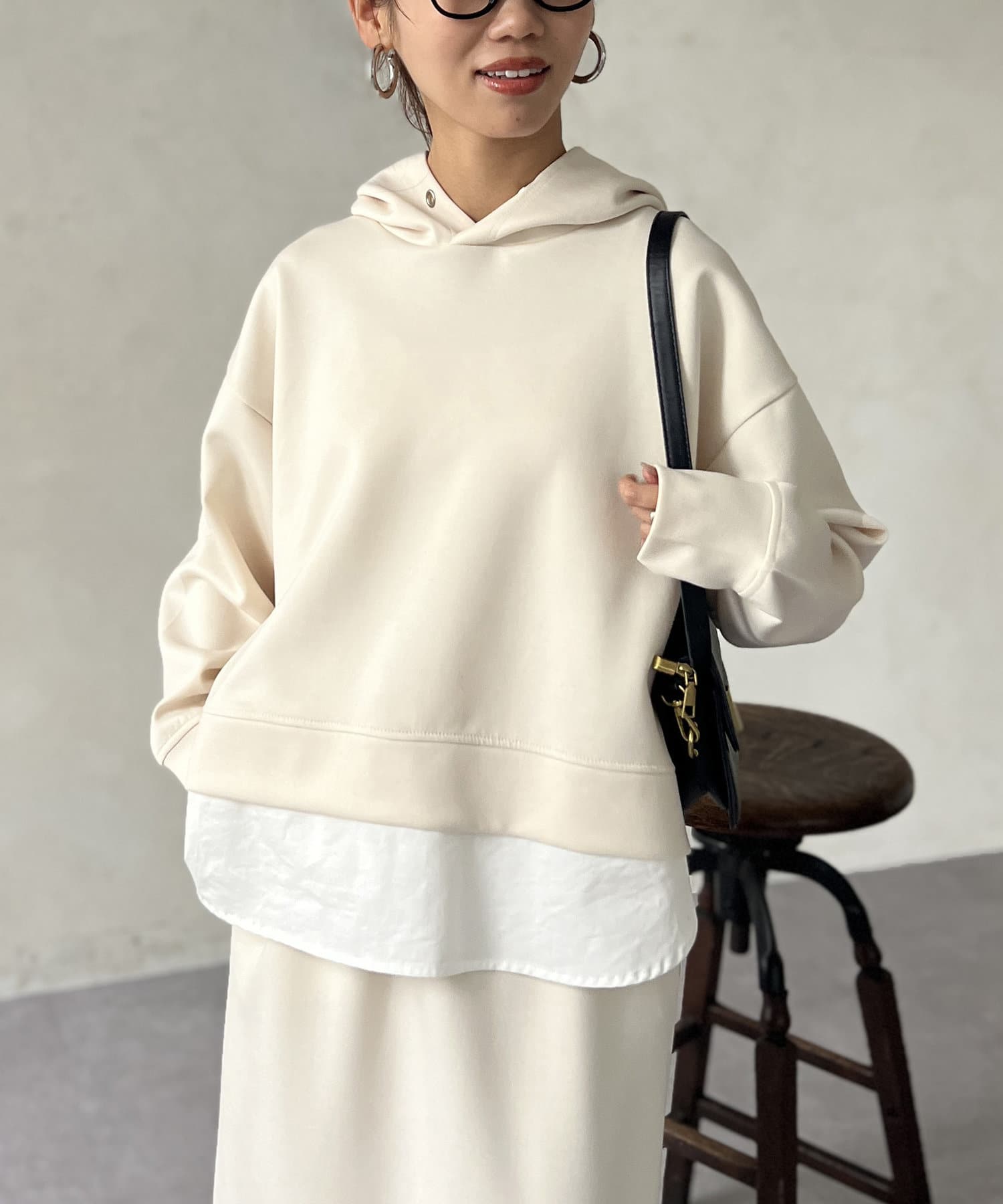【着回し力抜群】ボンディングフードプルオーバー×ナロースカート