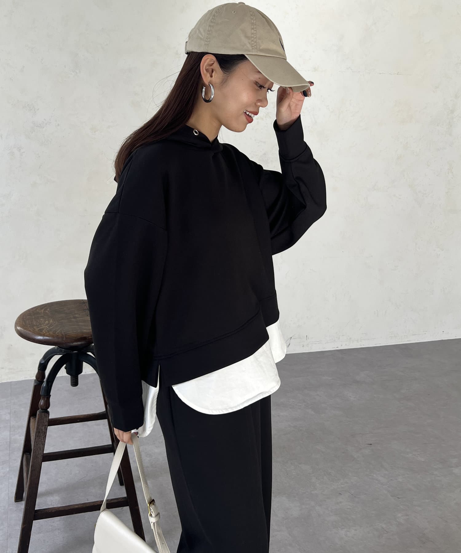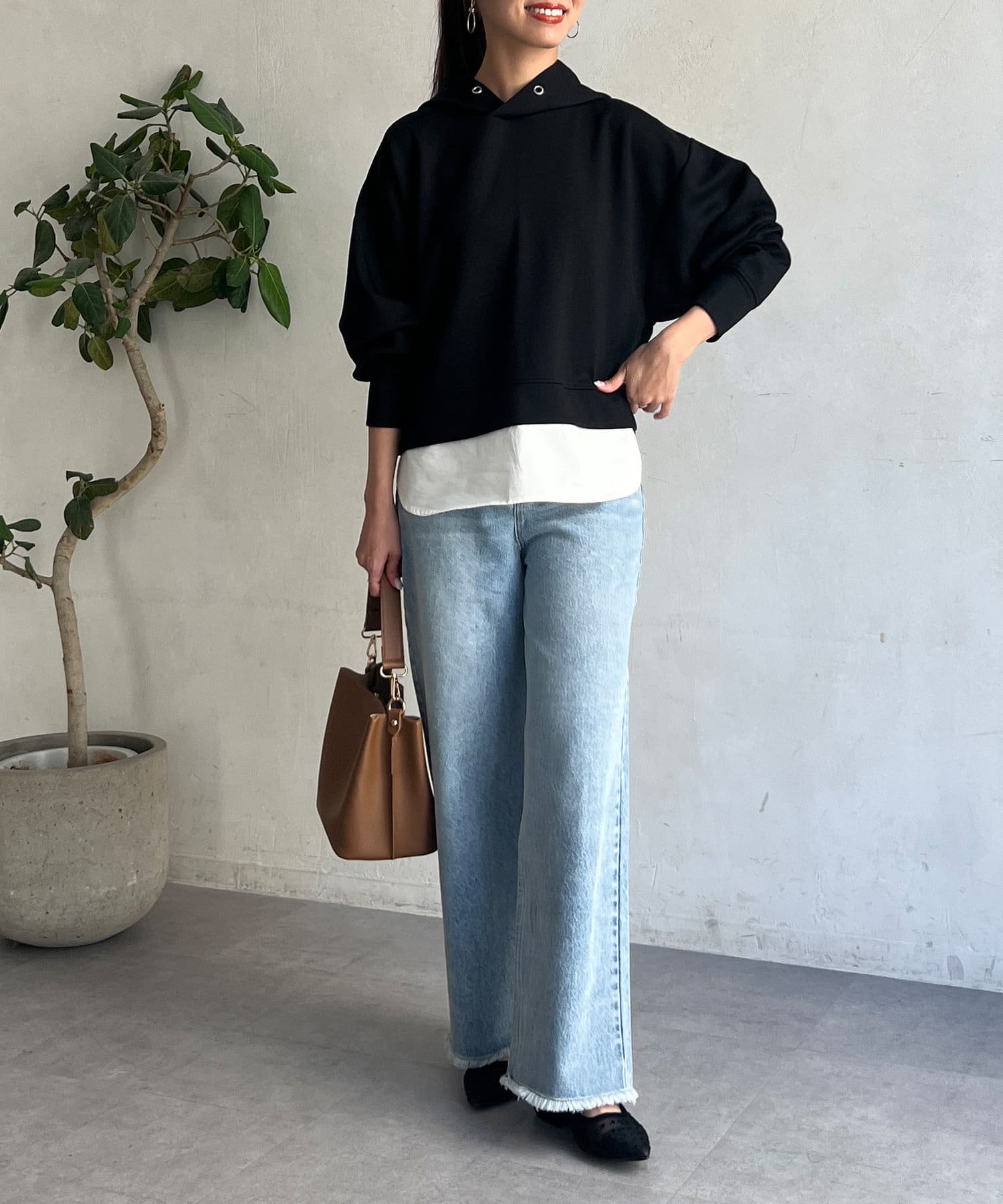 セットアップ着用はもちろん、パーカーはワイドパンツやデニムに