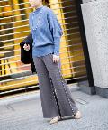 ・ウエスト部分の幅が広めにとってあるので、ウエスト位置の調節がしやすいです。フレアスカートやフレアパンツ、ワイドシルエットのボトムスを合わせる時は少し上の方でたるませてあげるとスッキリとコーディネートできます。