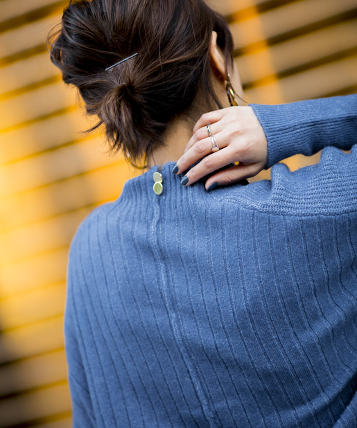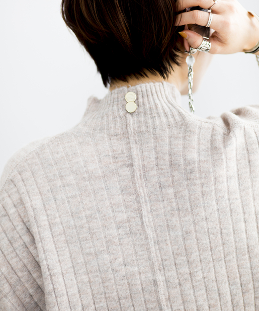 ・袖と肩で太さの違うリブが使われているのでよりスッキリ感を協調してくれます。