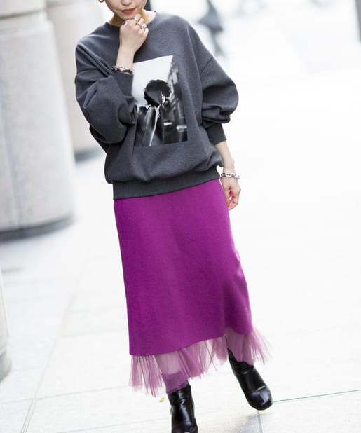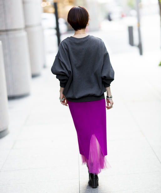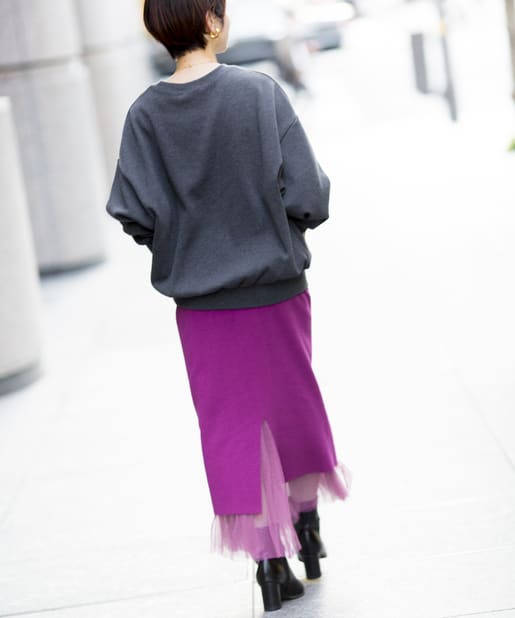 ・ニットパンツやタイトスカートで合わせると、こなれ感が出てキレイ目カジュアルなコーディネートになります。