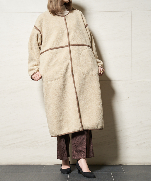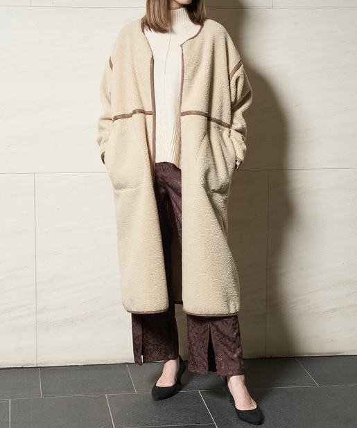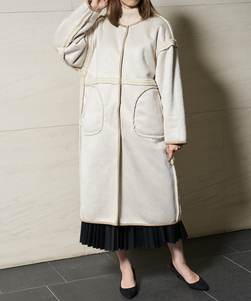 ・軽く暖かいボア素材とムートン素材のボンディングコートです。