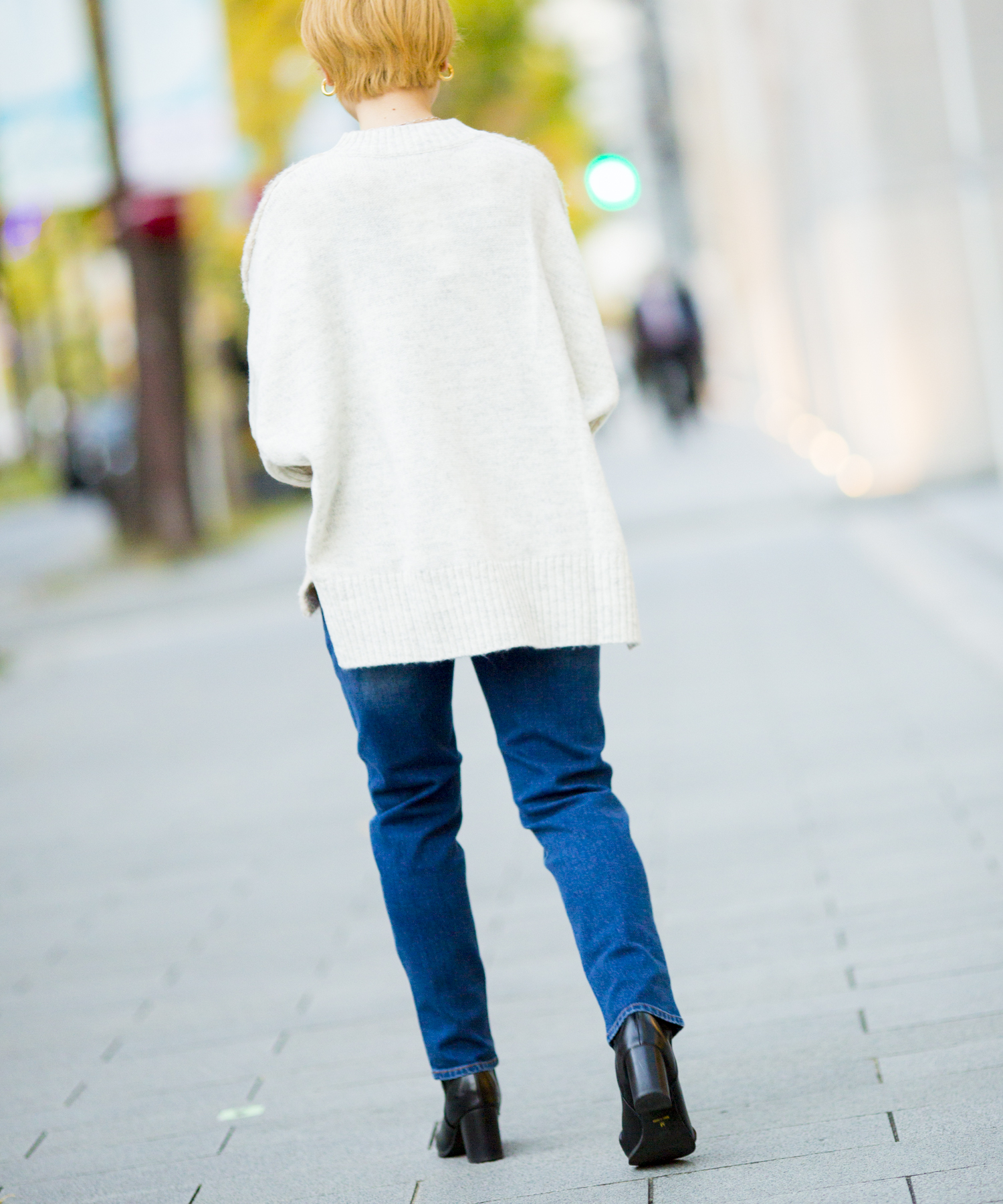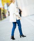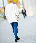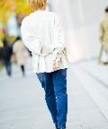 ・フロントと背中部分で生地が違うので、デニムなどシンプルなデザインで合わせてもお洒落見えします。前後差がしっかりついているので、ワイドパンツで合わせてももたつくことなくスッキリとしたスタイリングに仕上がります。
