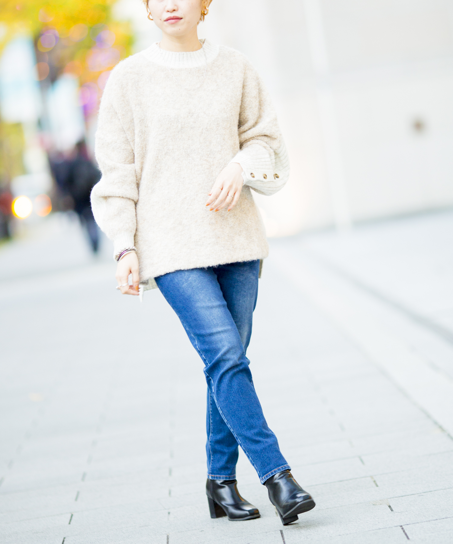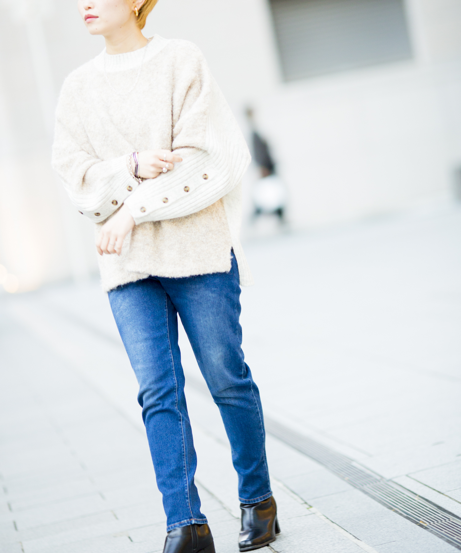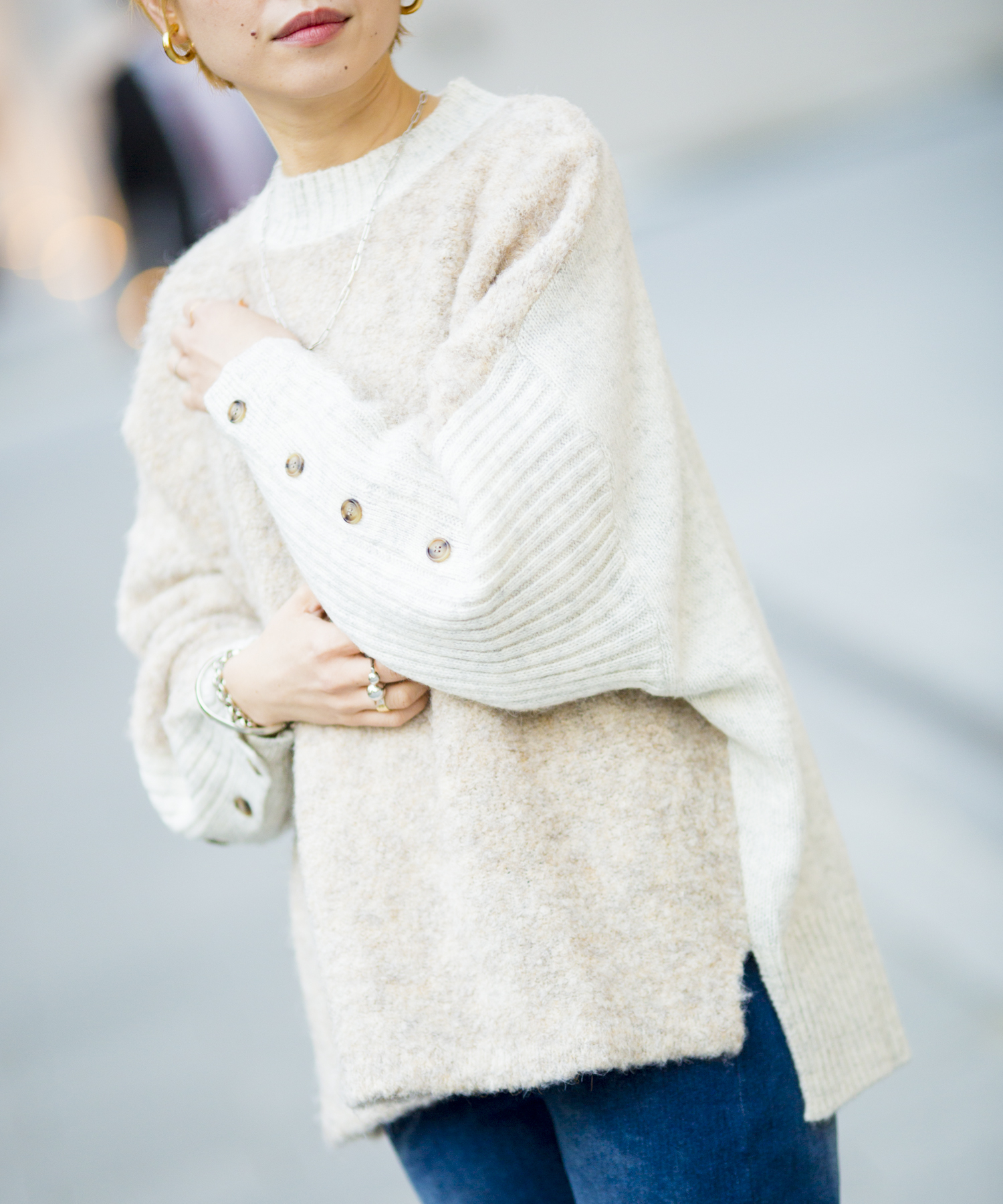 袖ボタンがポイントのたぽっとしたシルエット