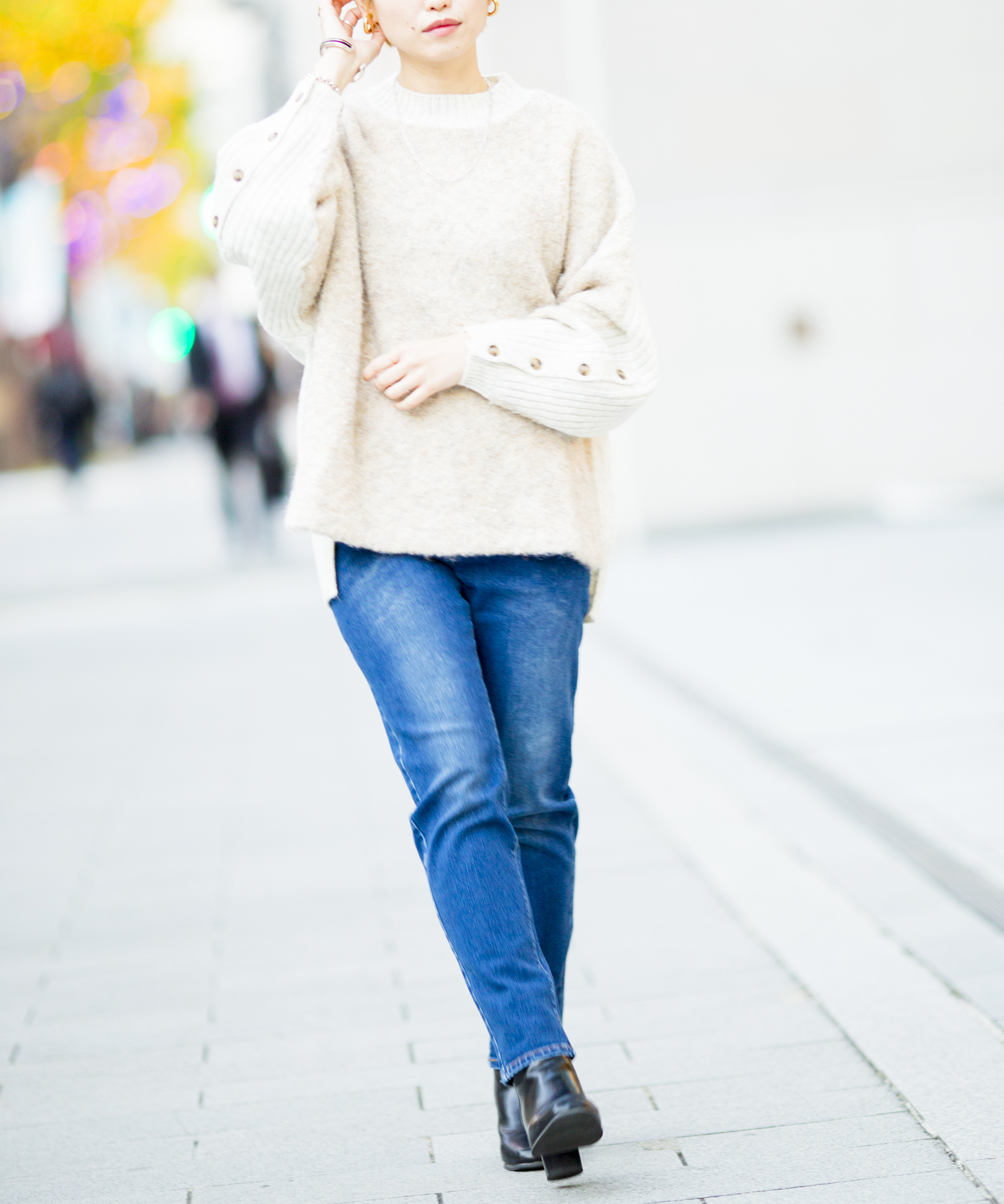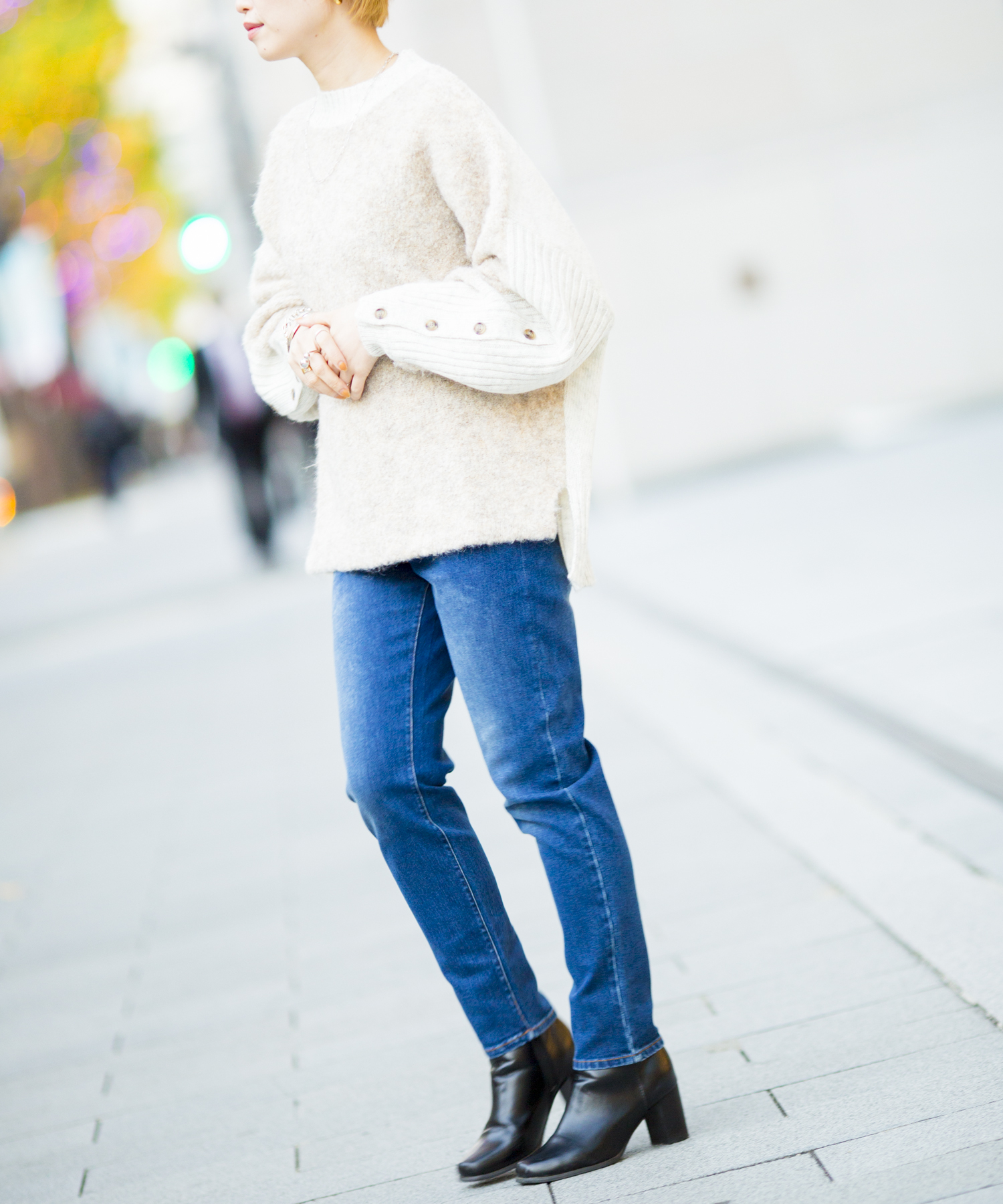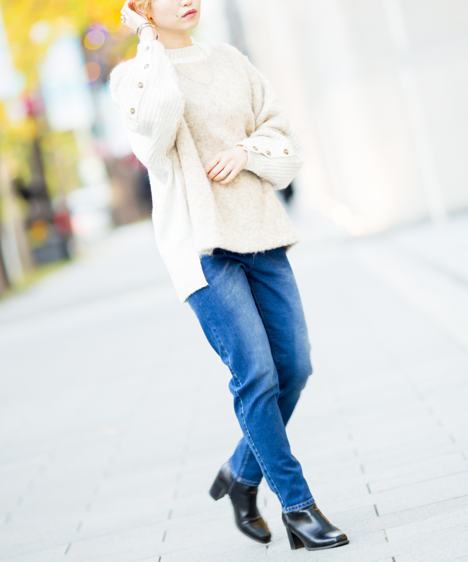 袖ボタンがポイントのたぽっとしたシルエット