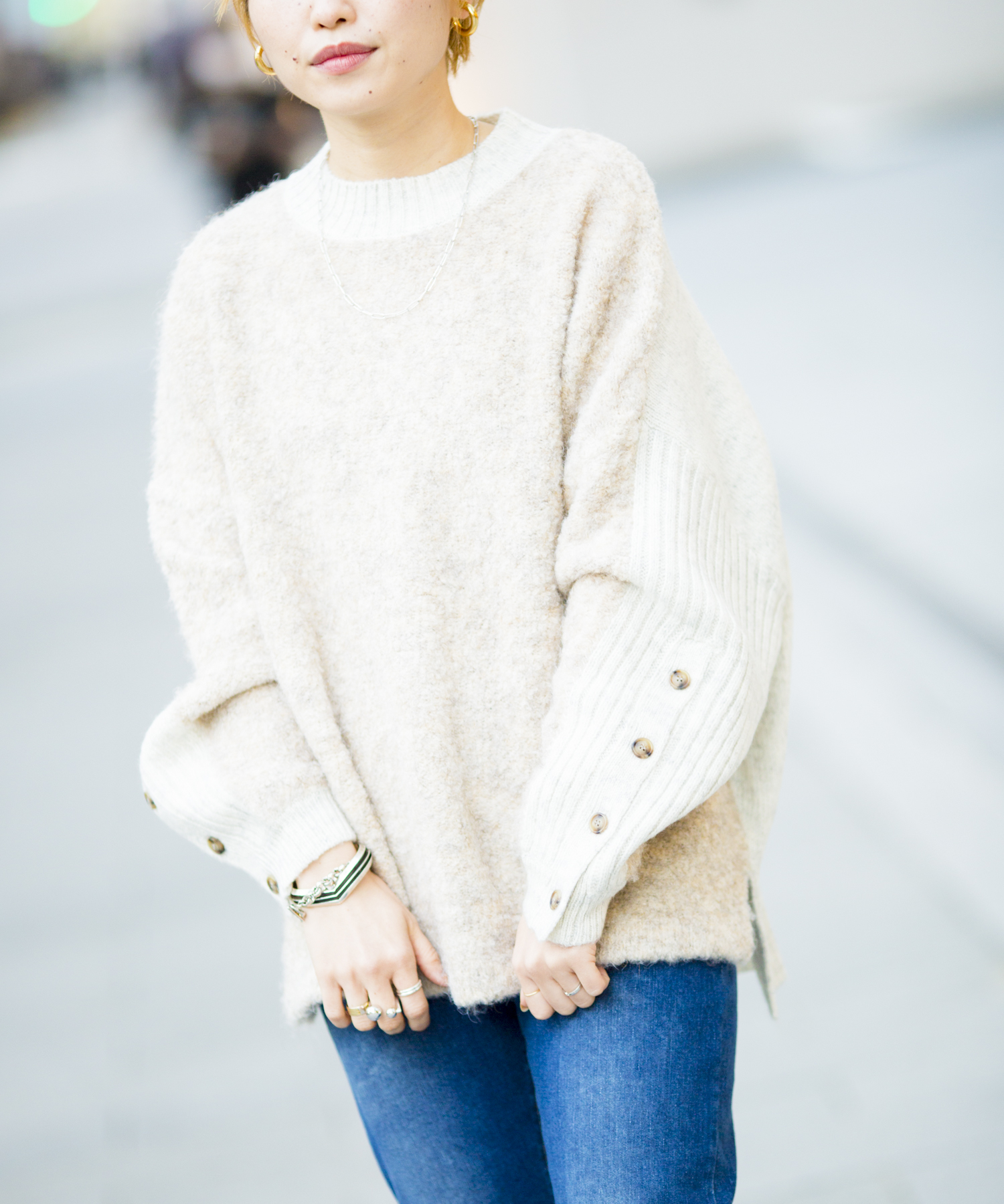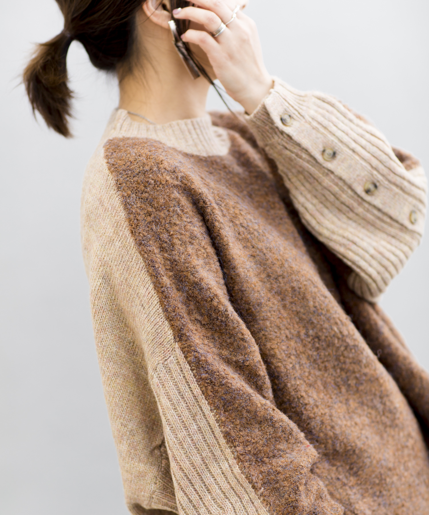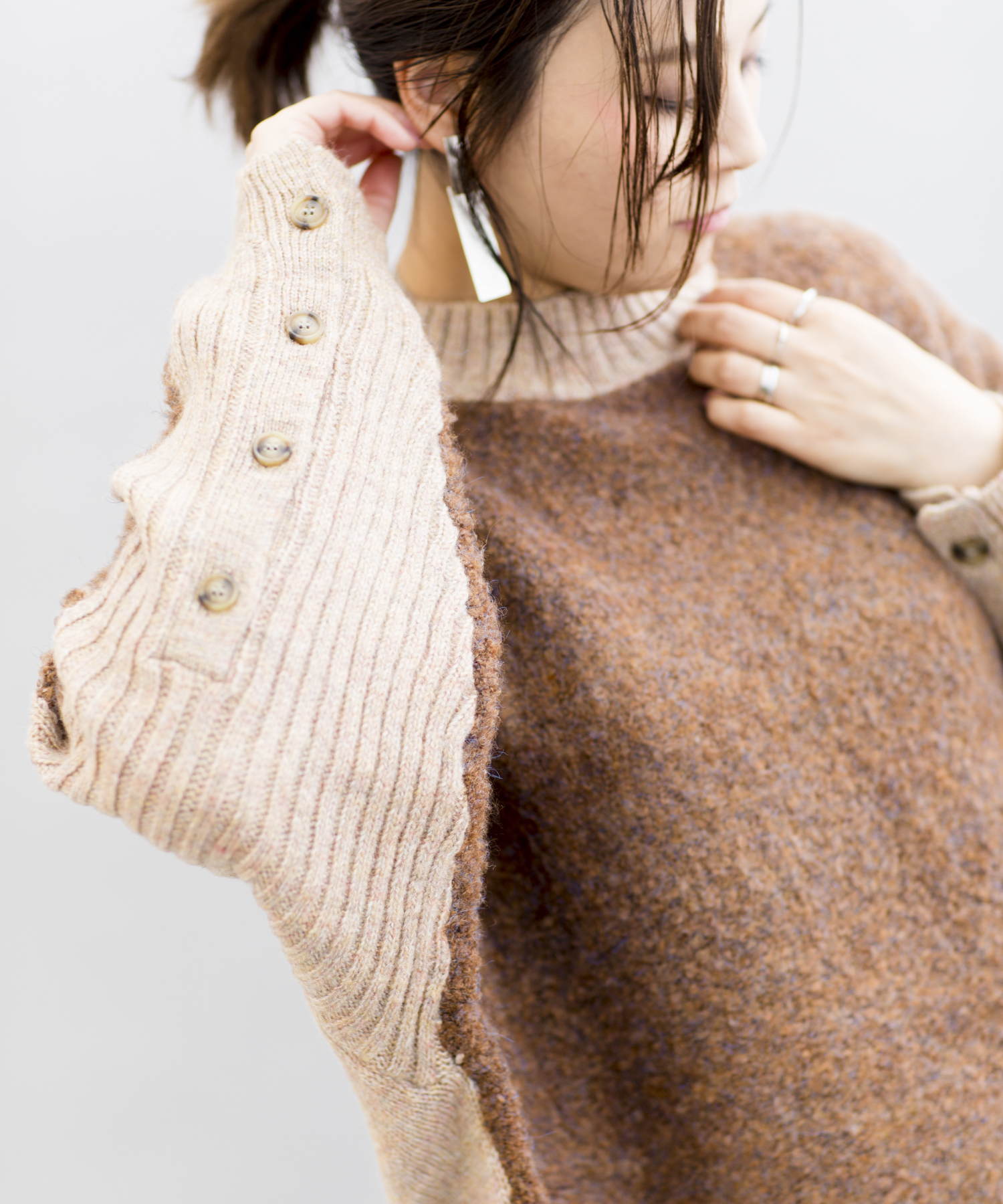 【WEB限定】リングヤーン袖ボタンドルマンニット