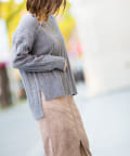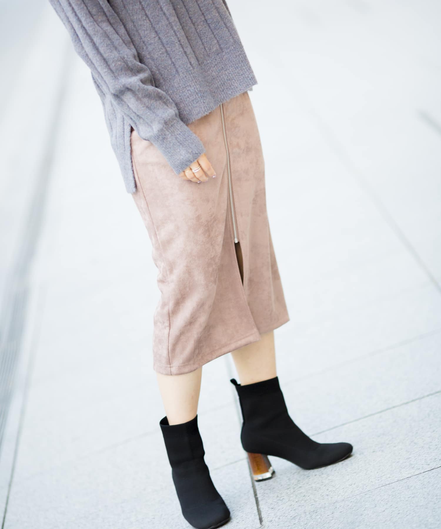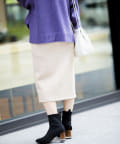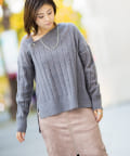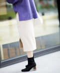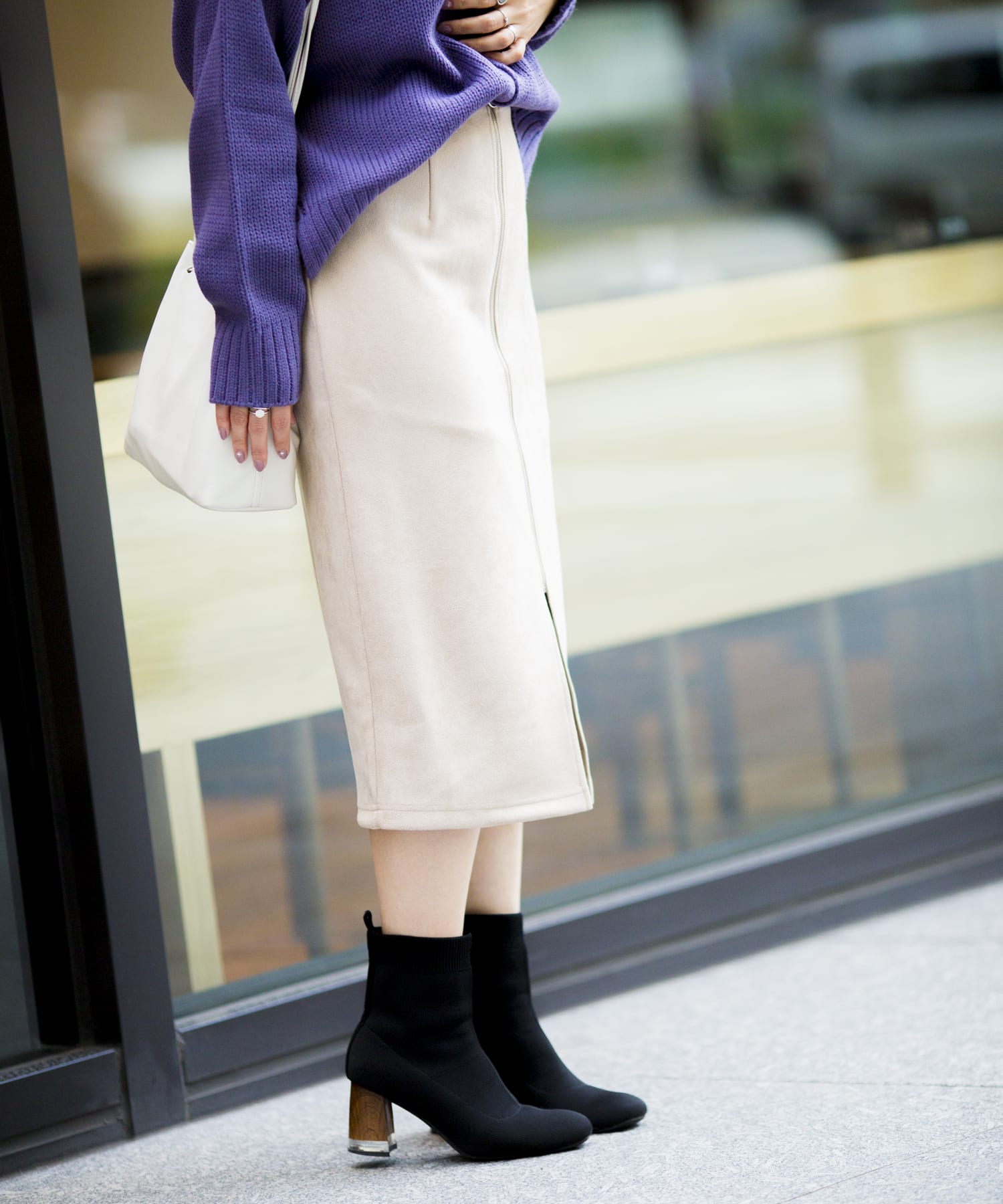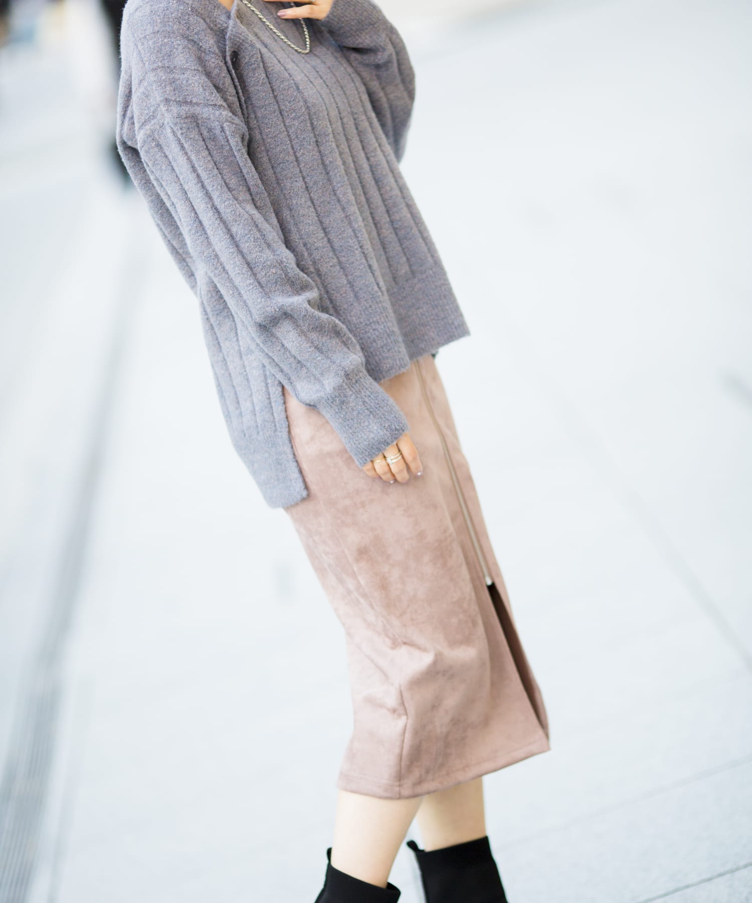 ・ざっくりとしたニットで合わせてゆったりシルエットとタイトシルエットの相反するコーディネートがオススメです。 トップスにボリュームを持たせることで、全体のシルエットがバランス良く脚長効果も期待出来ます。