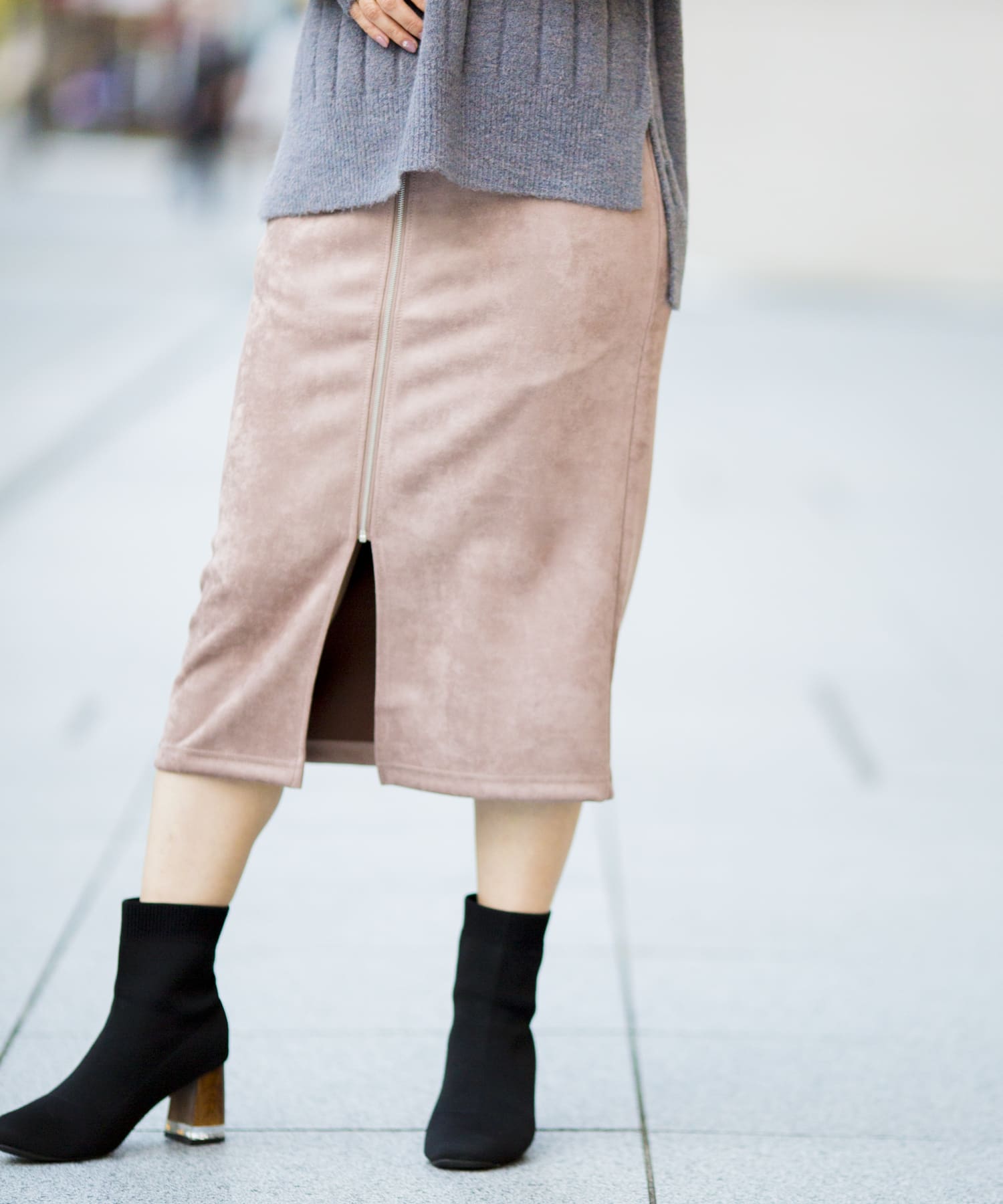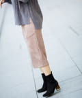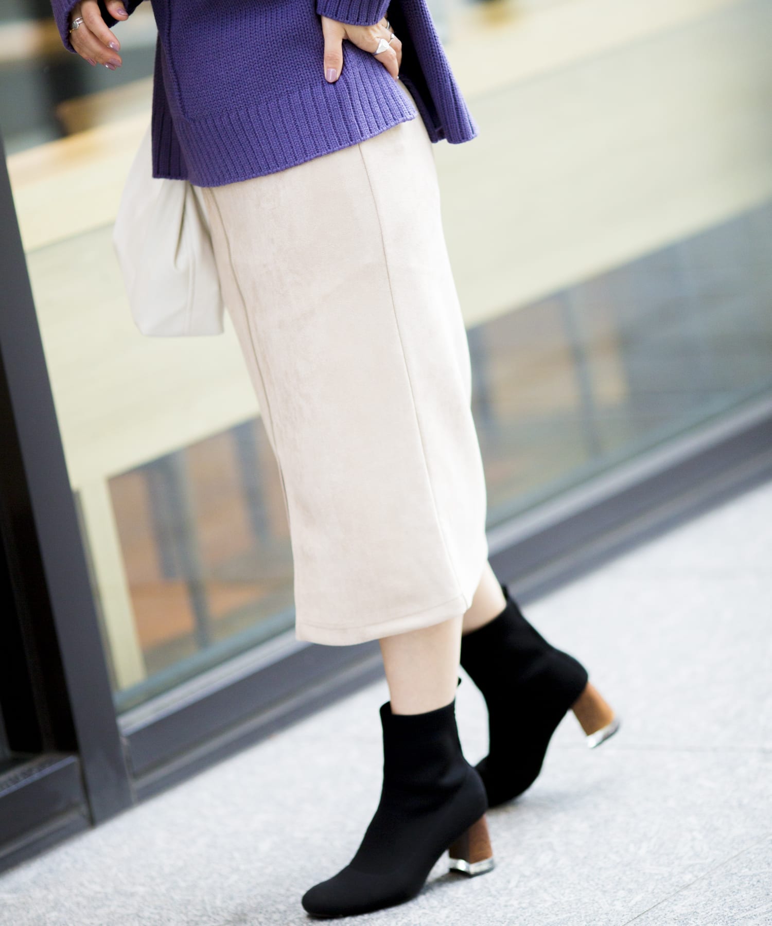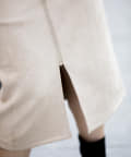 ・ミモレ丈のIラインシルエットで体型をすっきりみせてくれます。