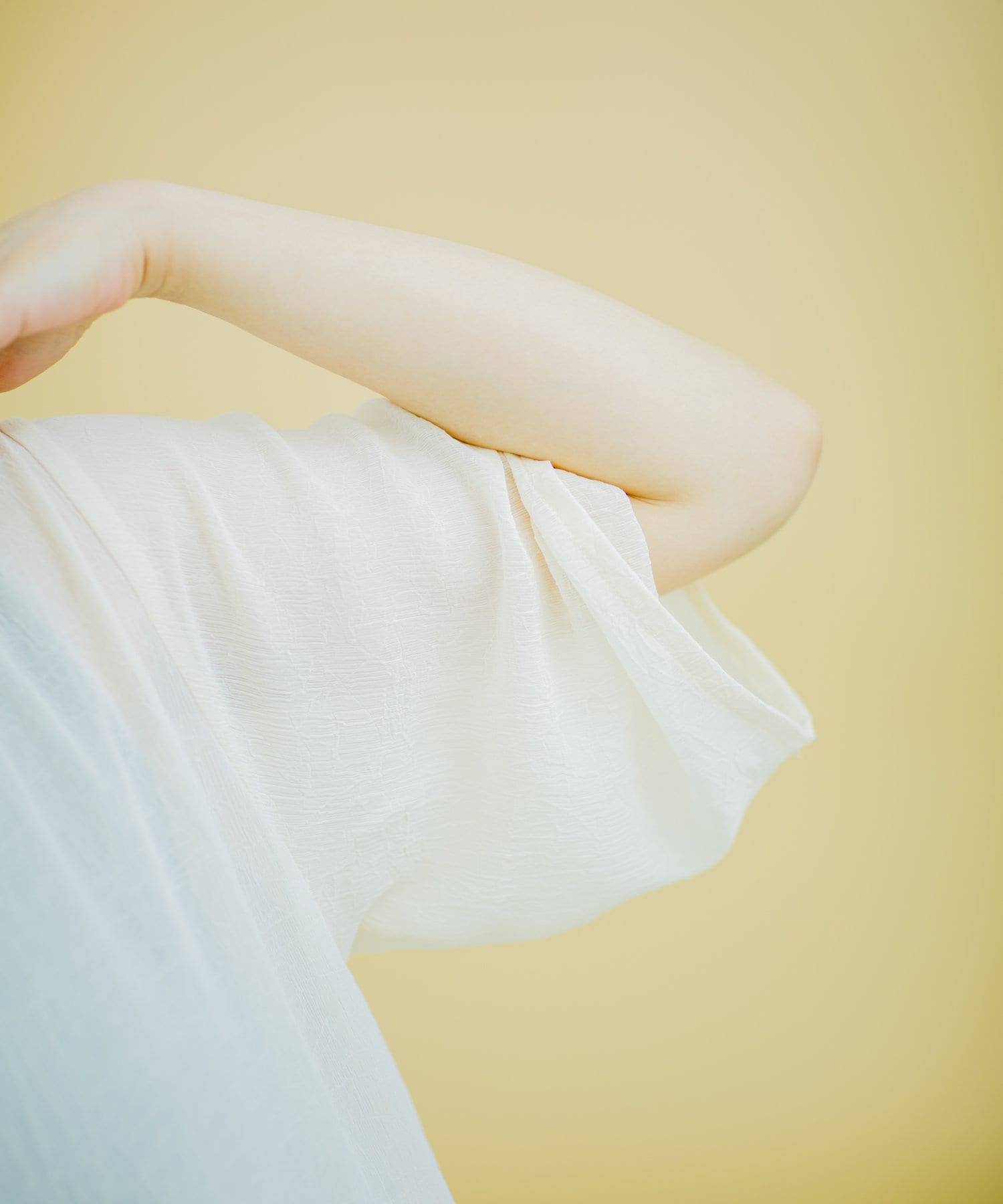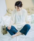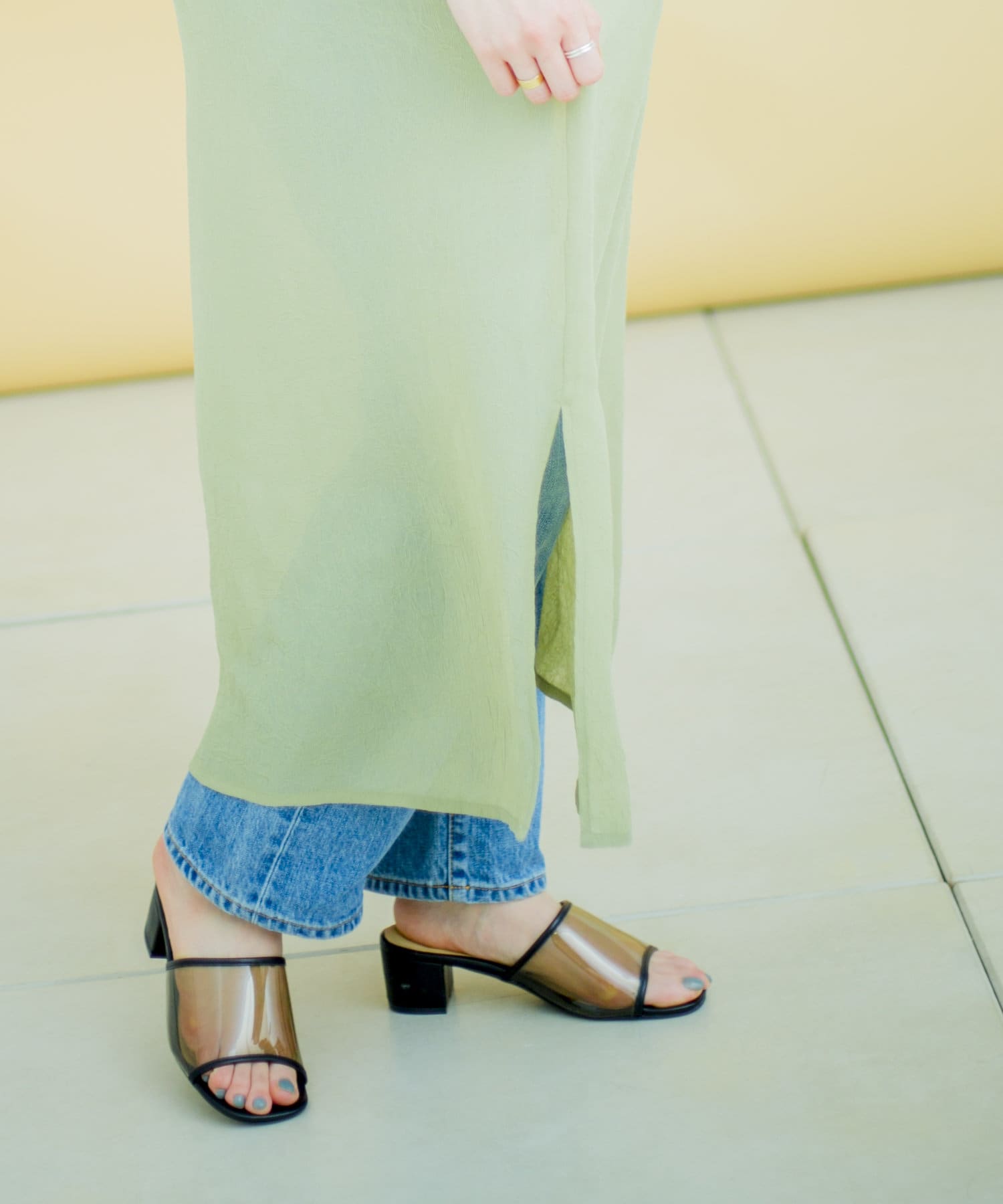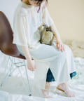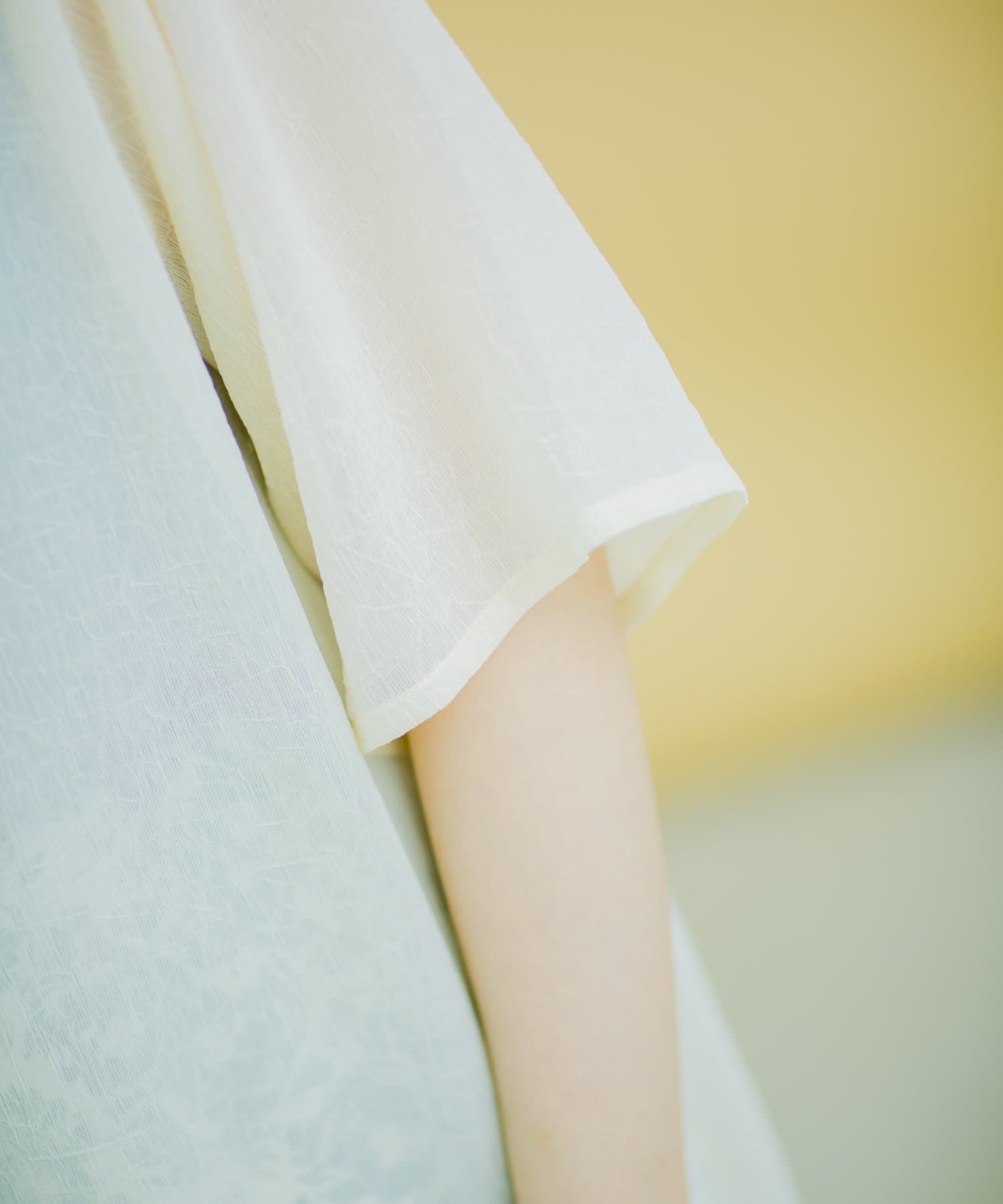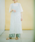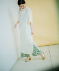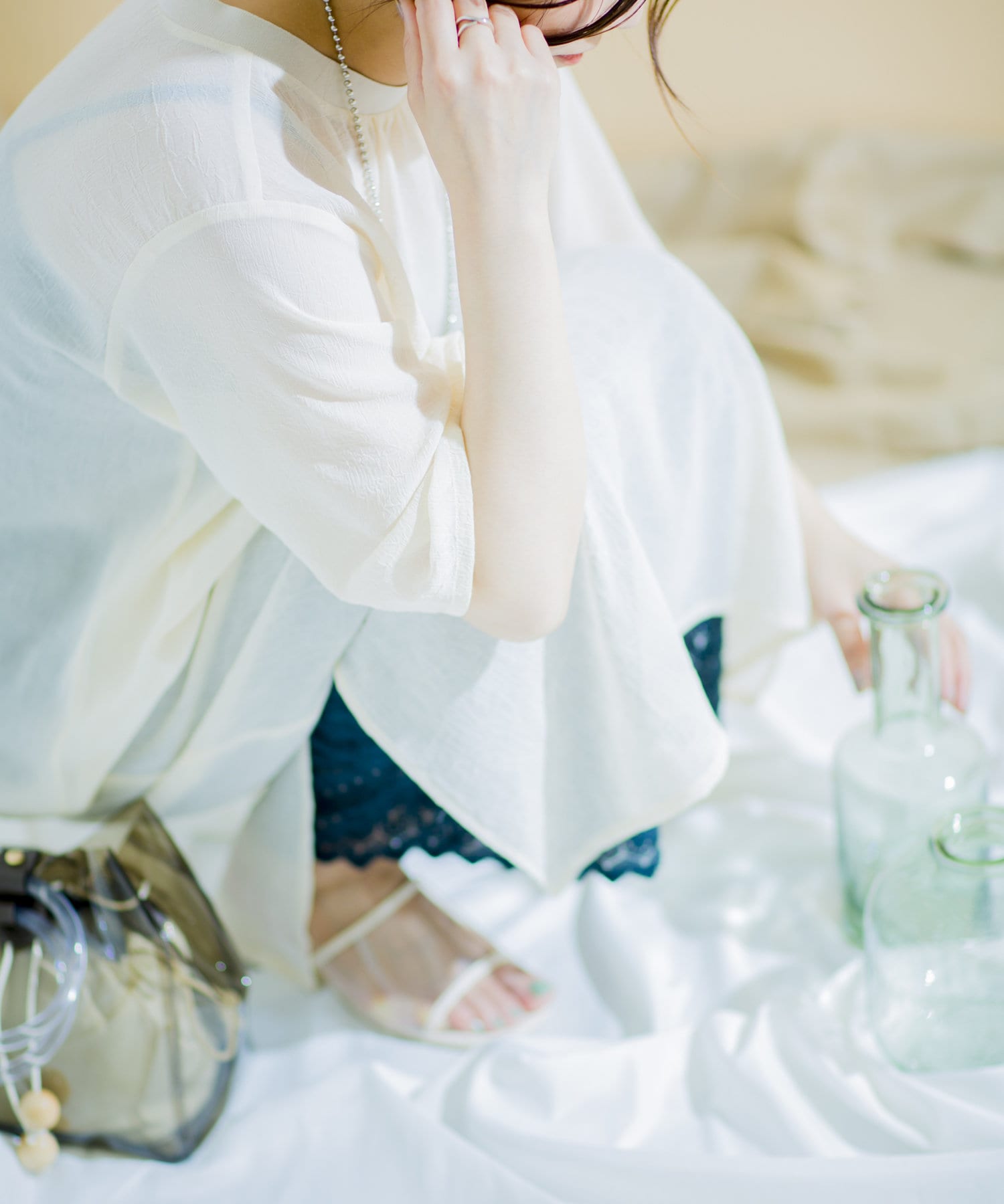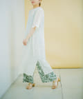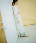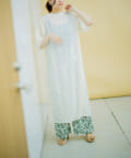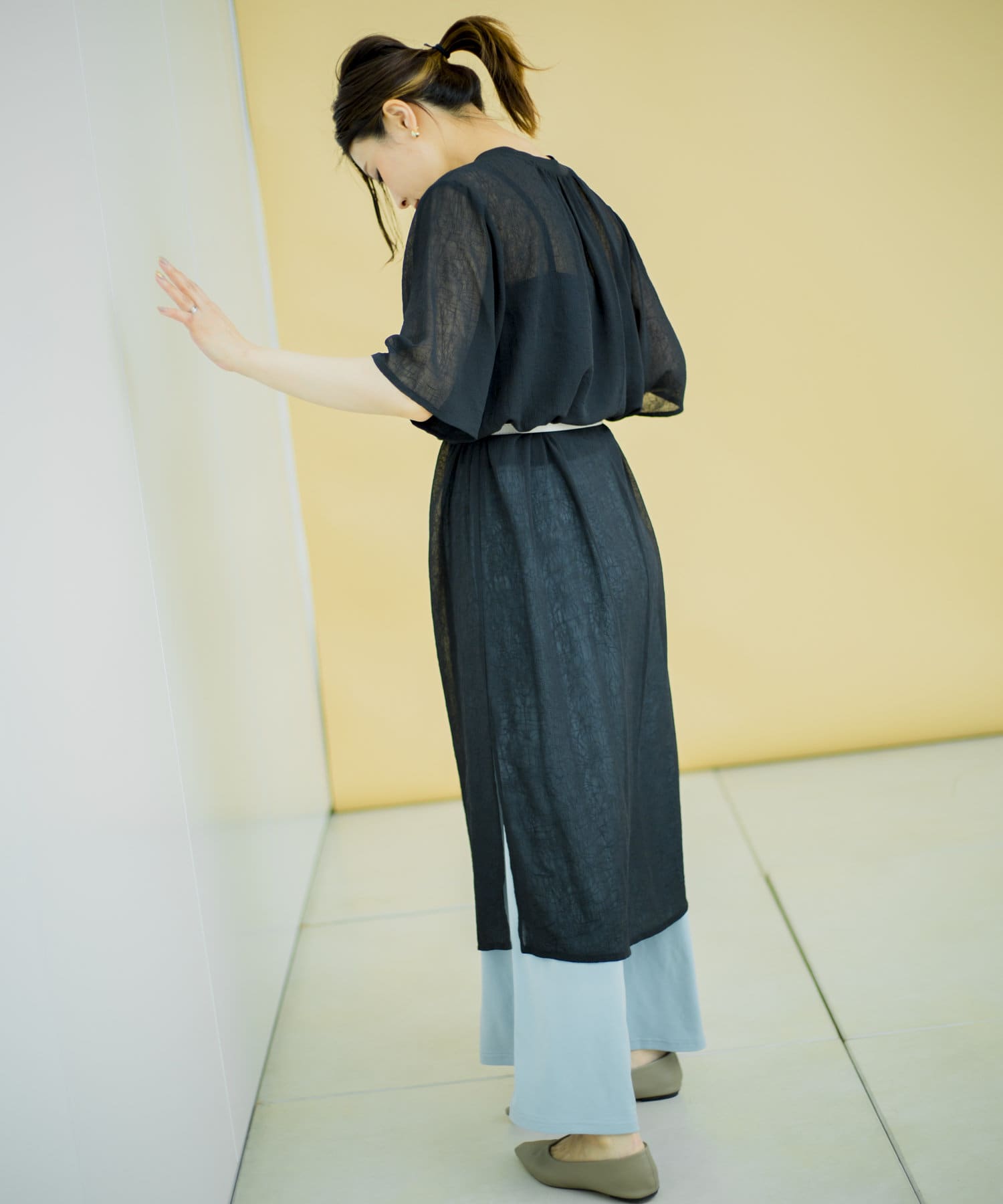 ・サイドにスリットがあり、しっかり透け感のある素材なのでレイヤードスタイルがオススメです。デニムでカジュアルダウンも可愛いですが、オススメはPGD1011102A0003単色フラワーイージーパンツです。柄がうっすら透ける程度なので末間のある無地と柄物のコントラストが綺麗に映えます。
