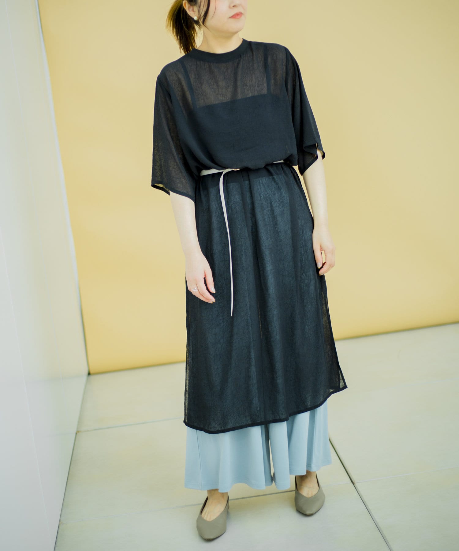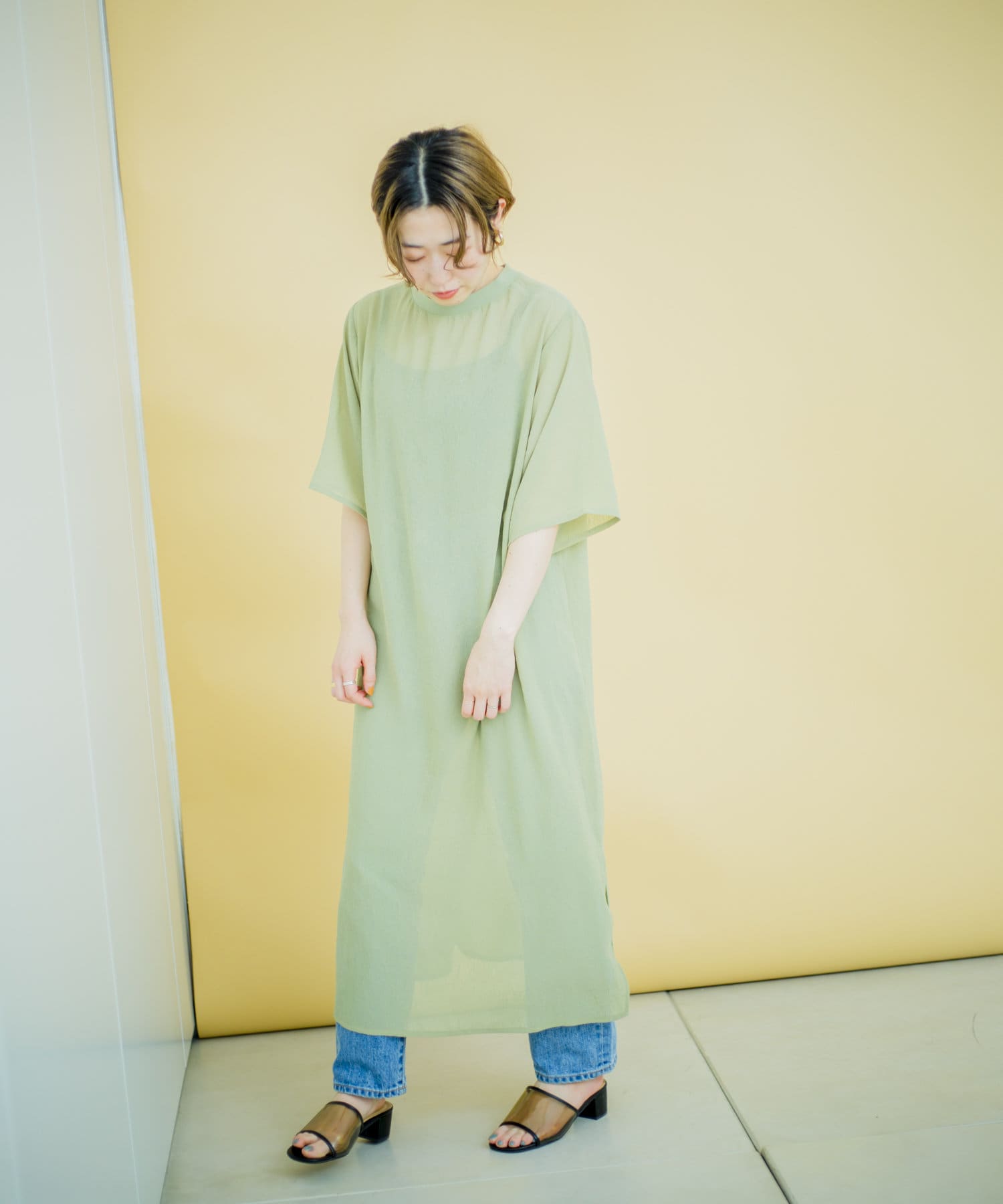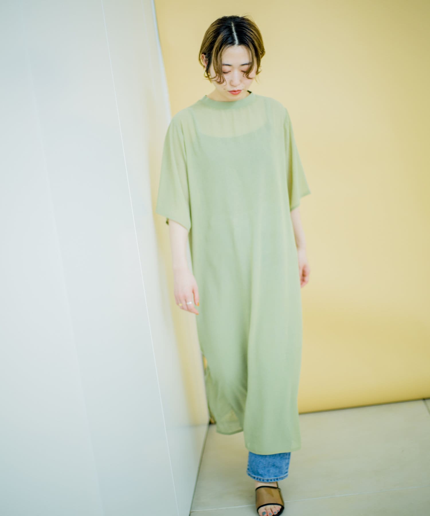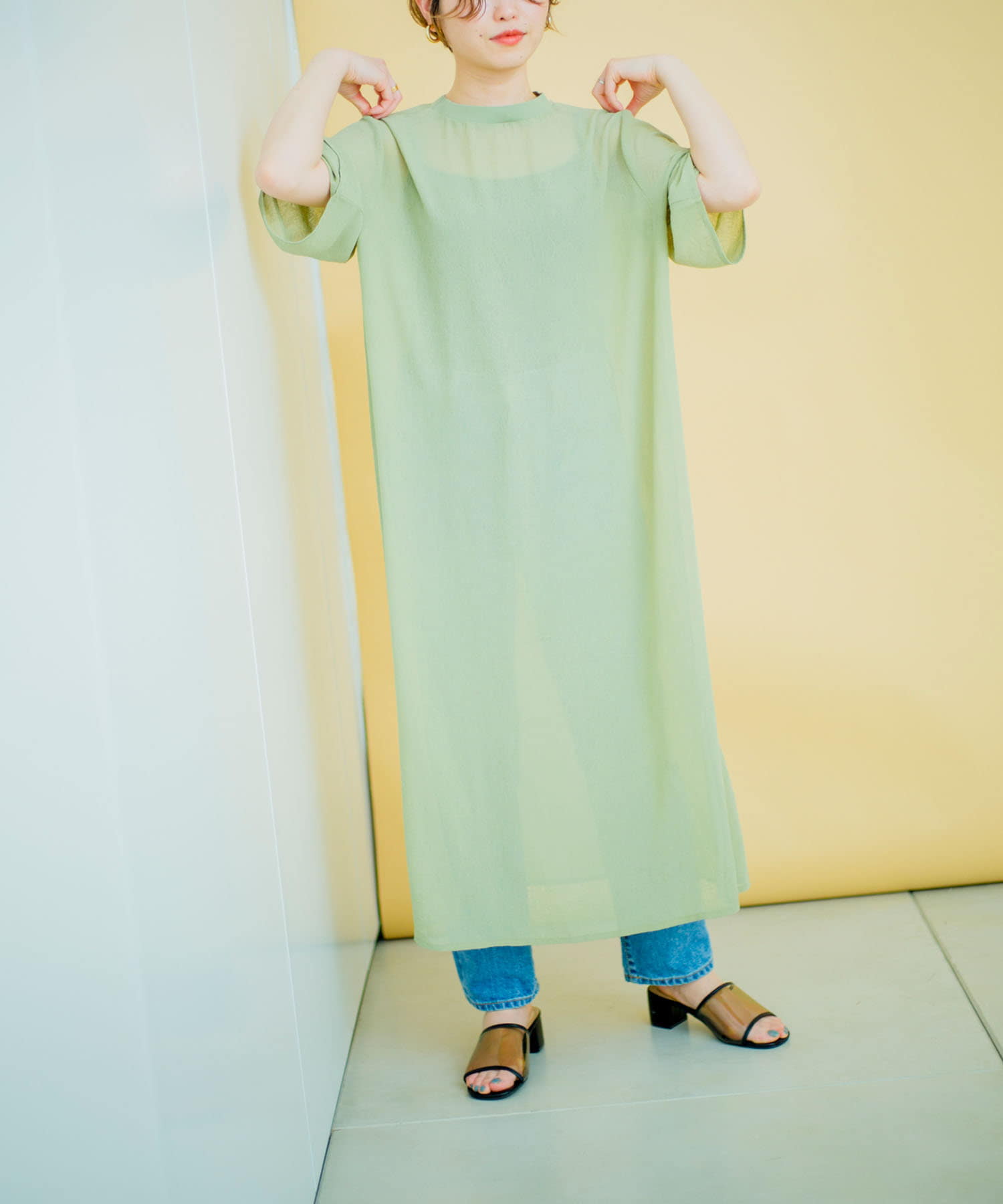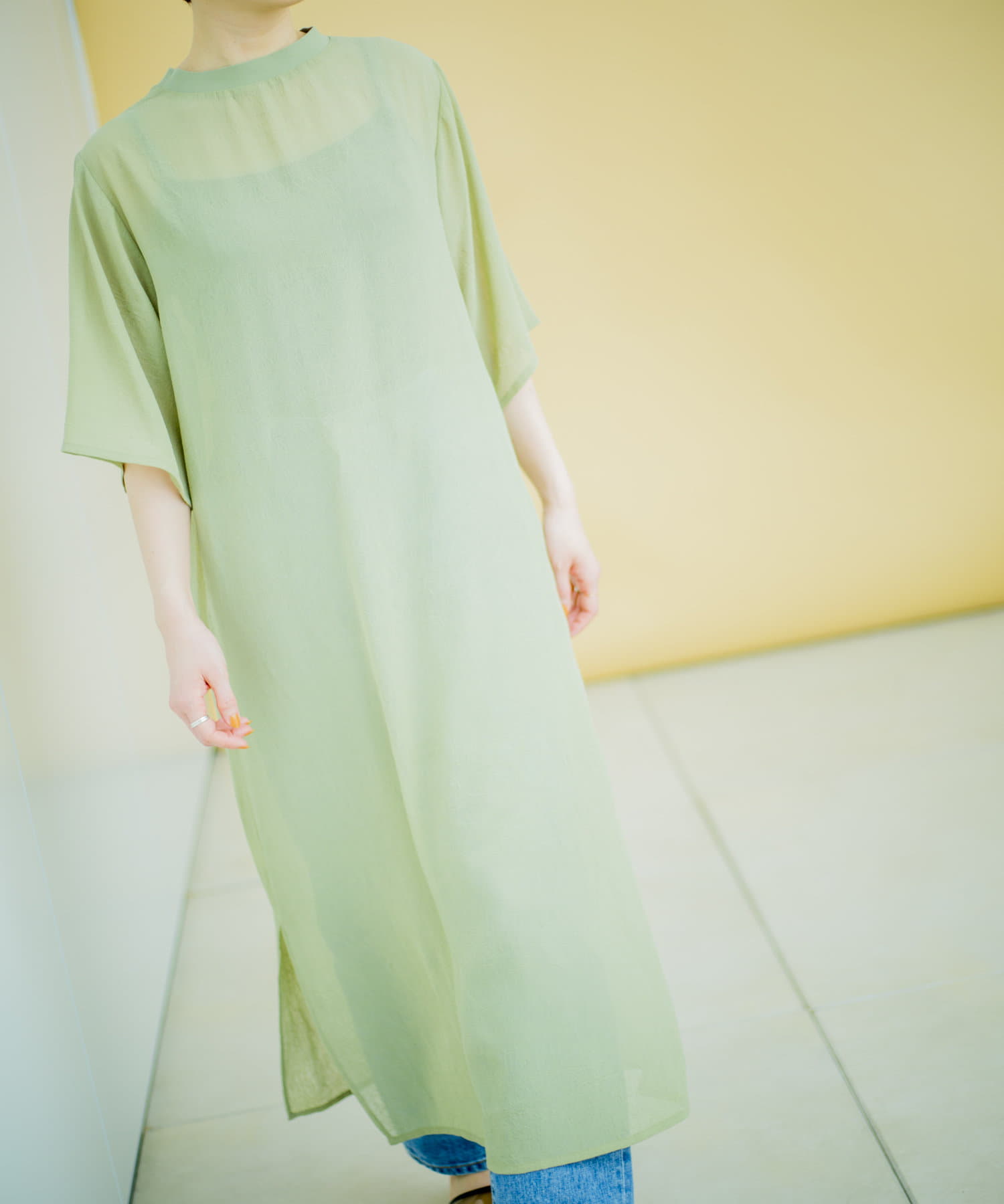 TOP > Thevon. > レディース > ワンピース > ワンピース > 襟リブ半袖シアーワンピース