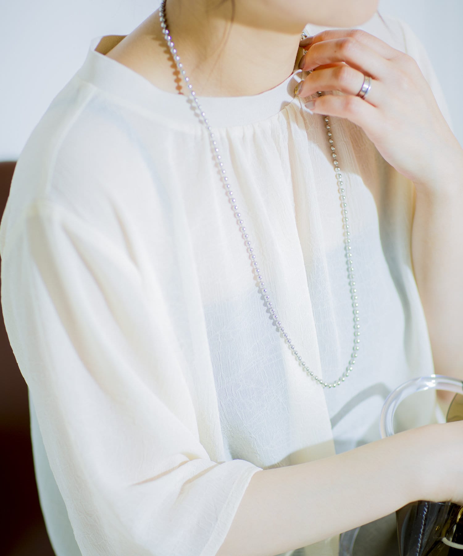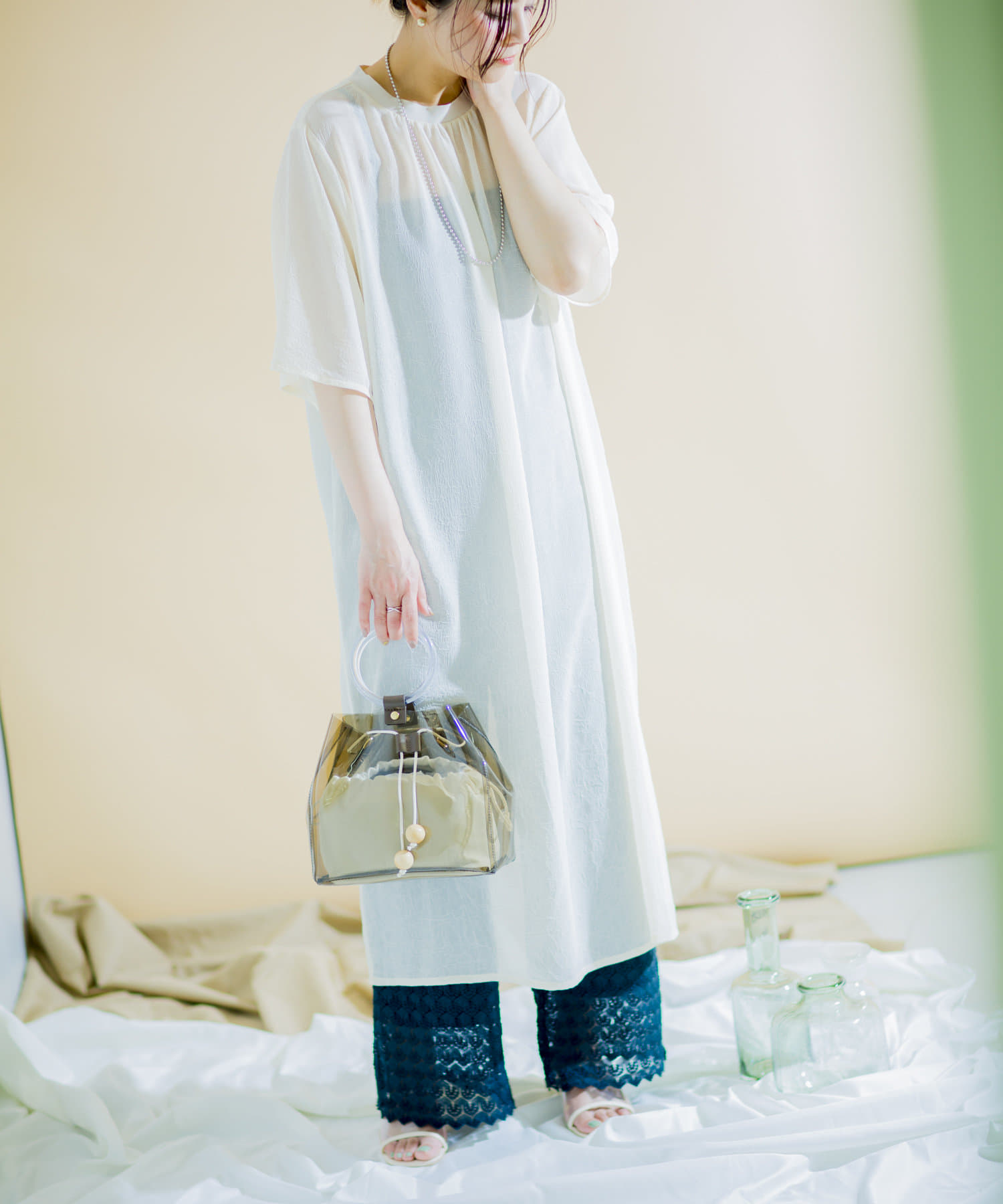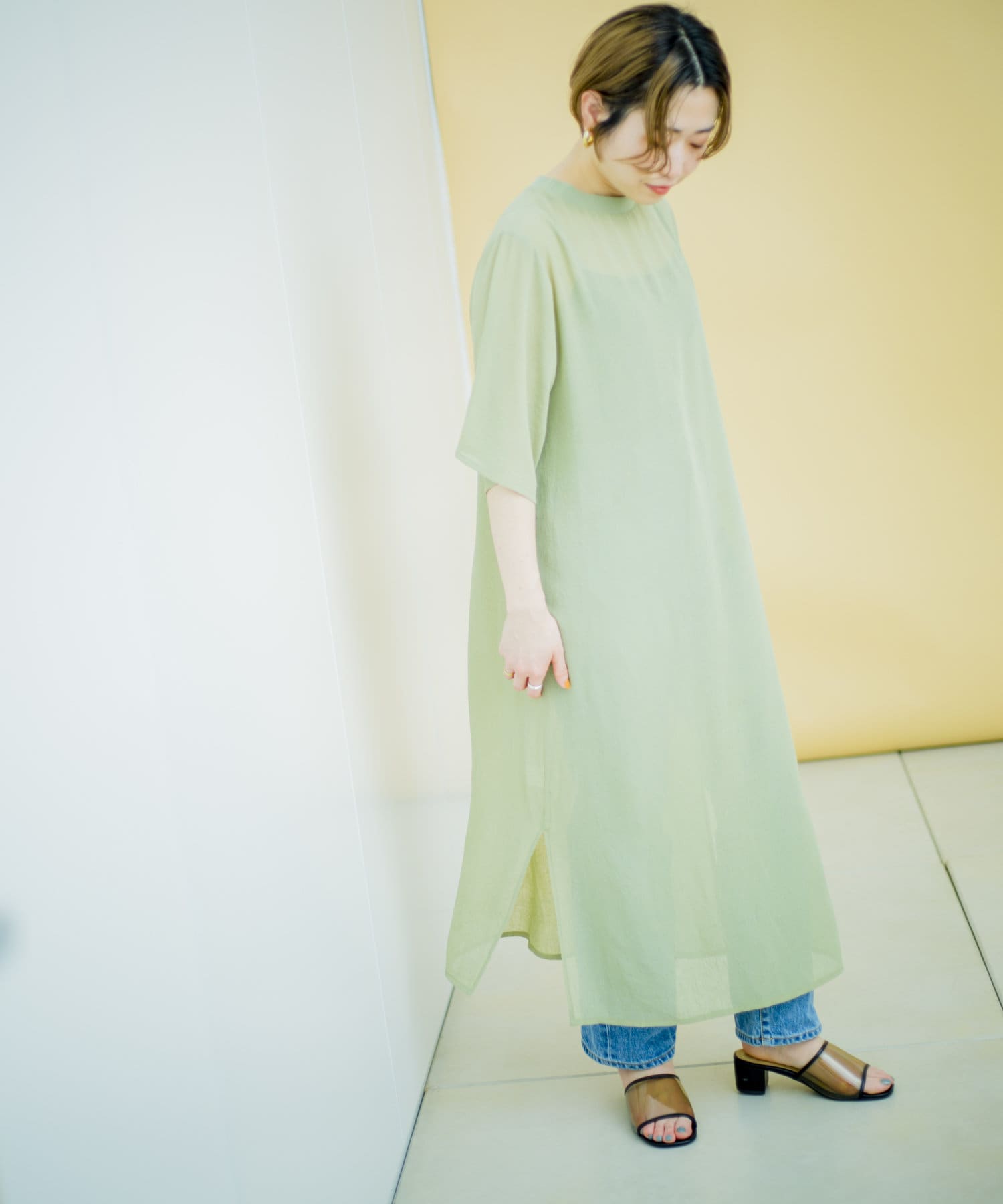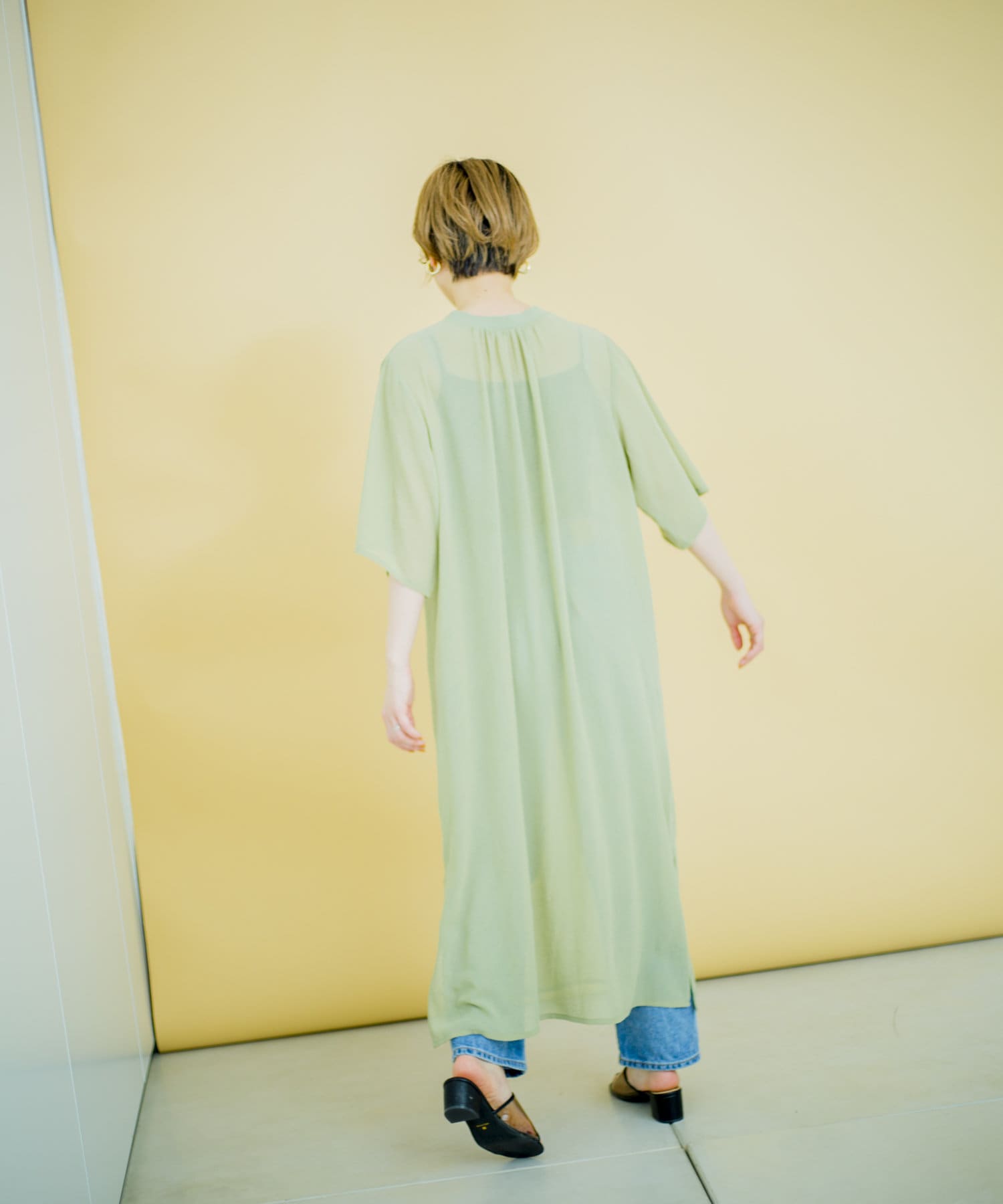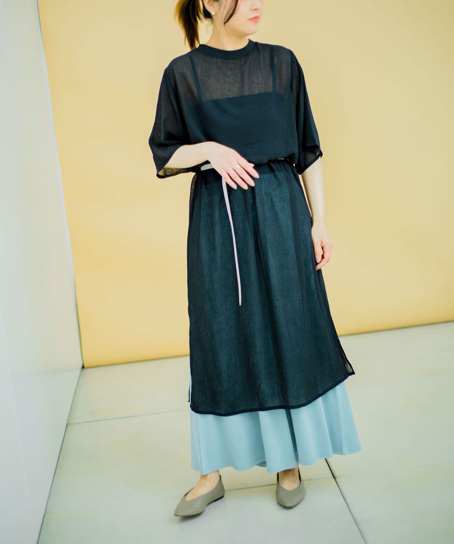 TOP > Thevon. > レディース > ワンピース > ワンピース > 襟リブ半袖シアーワンピース