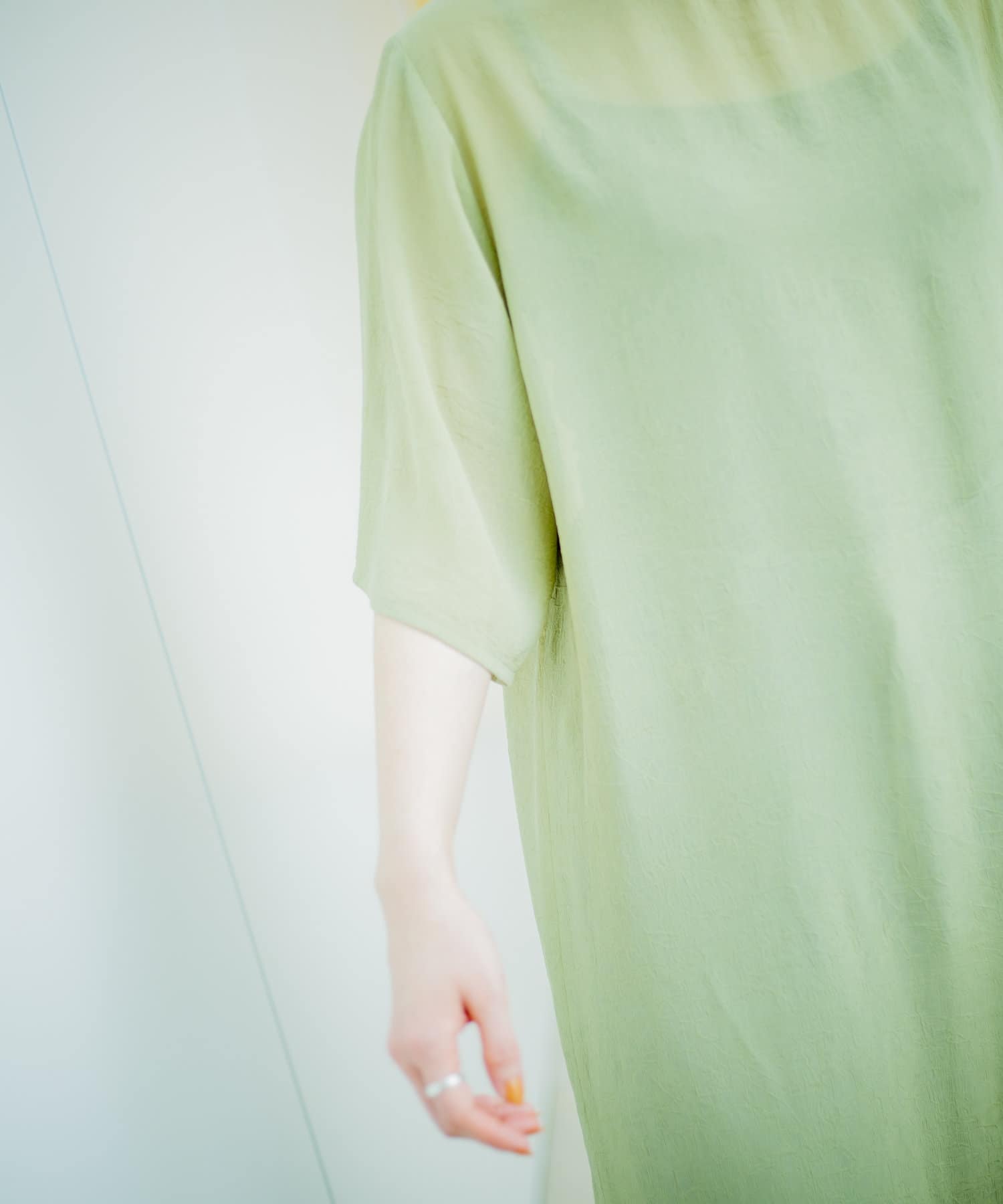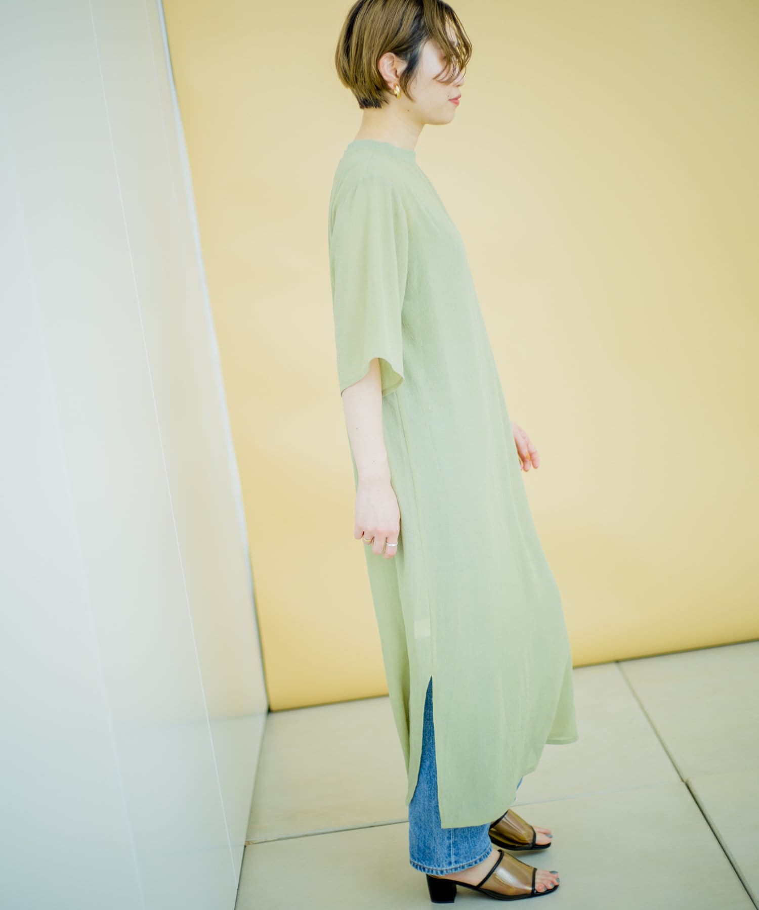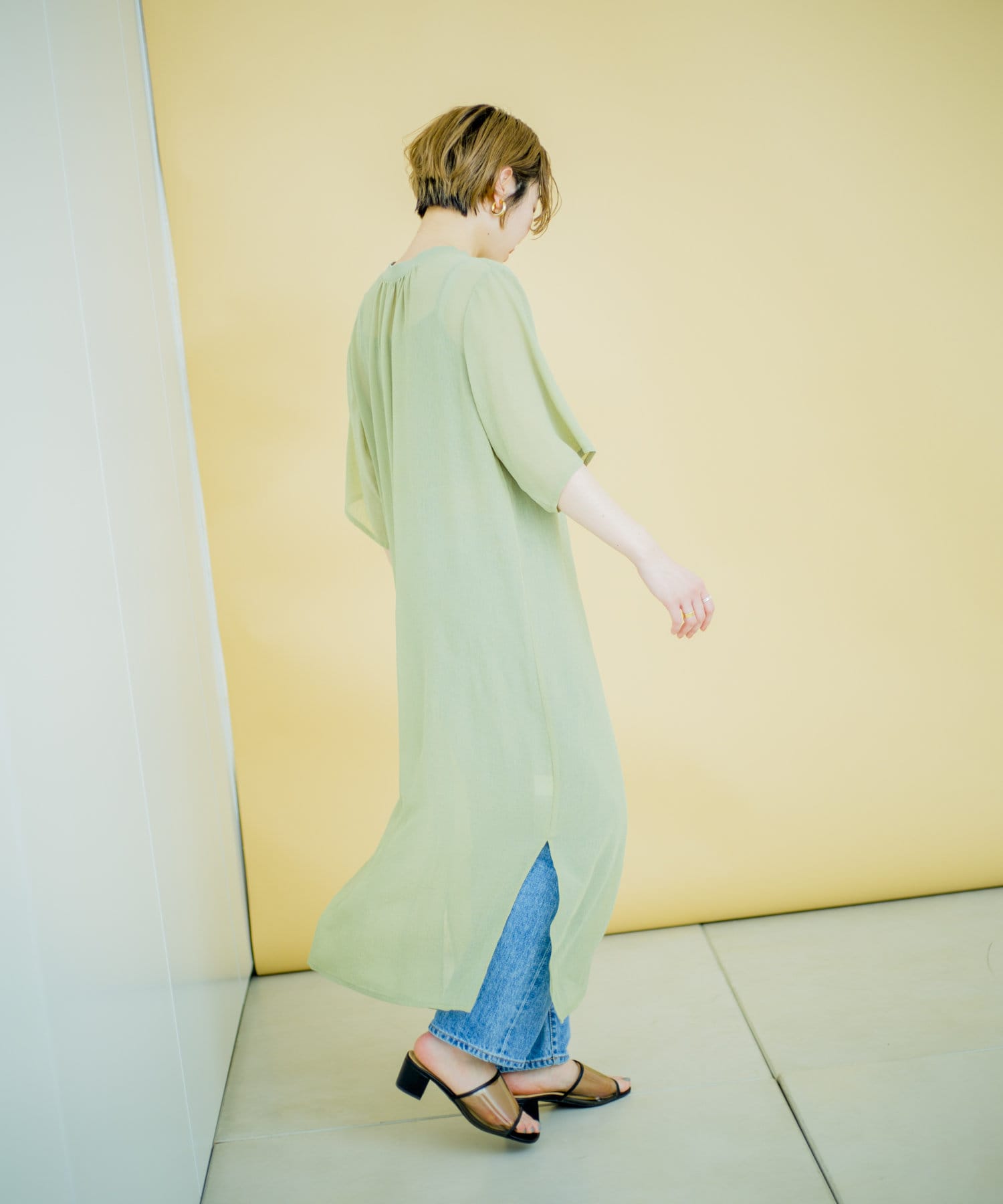 • Thevon.(ゼヴォン) 襟リブ半袖シアーワンピース