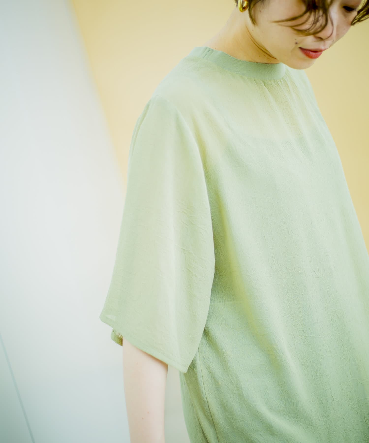 Thevon.(ゼヴォン) 襟リブ半袖シアーワンピース