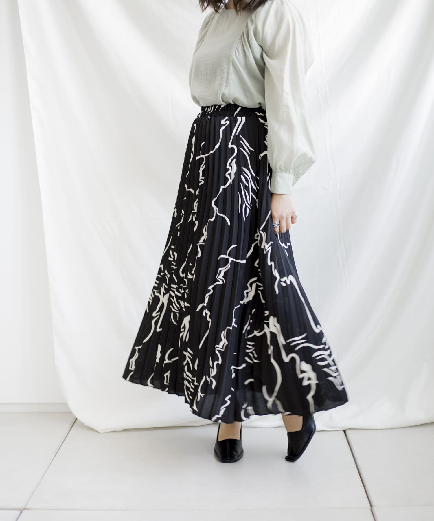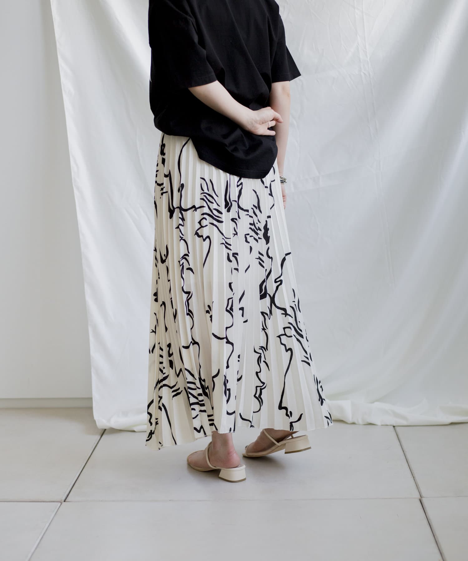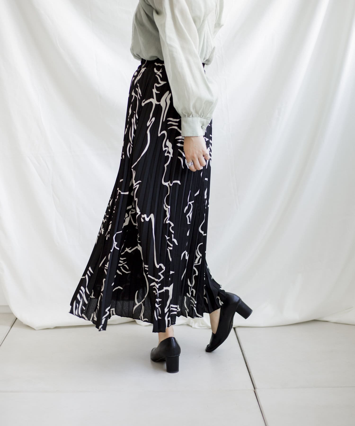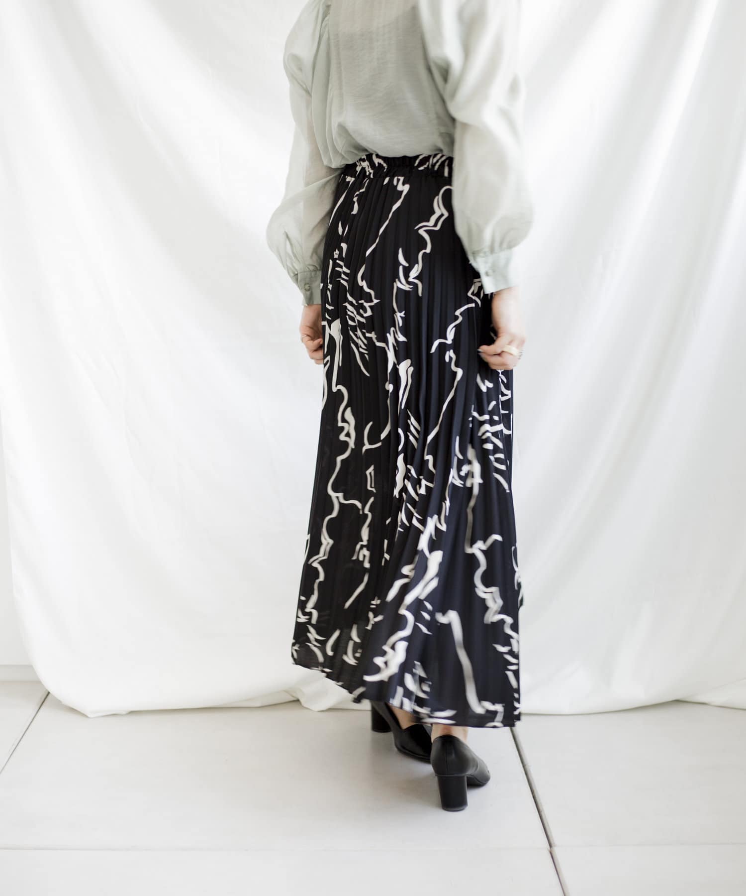 大胆な柄とロングプリーツで雰囲気溢れるスカート