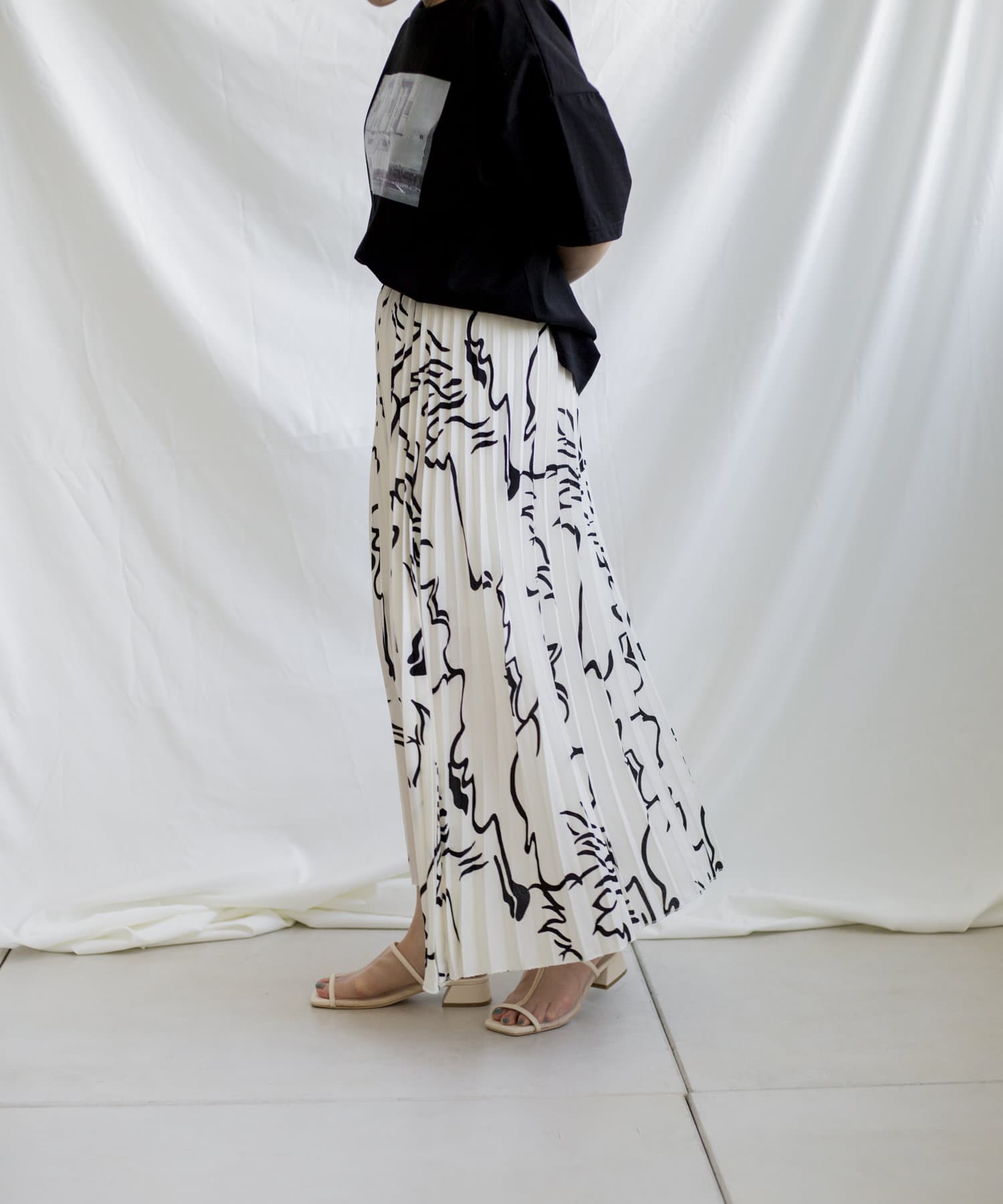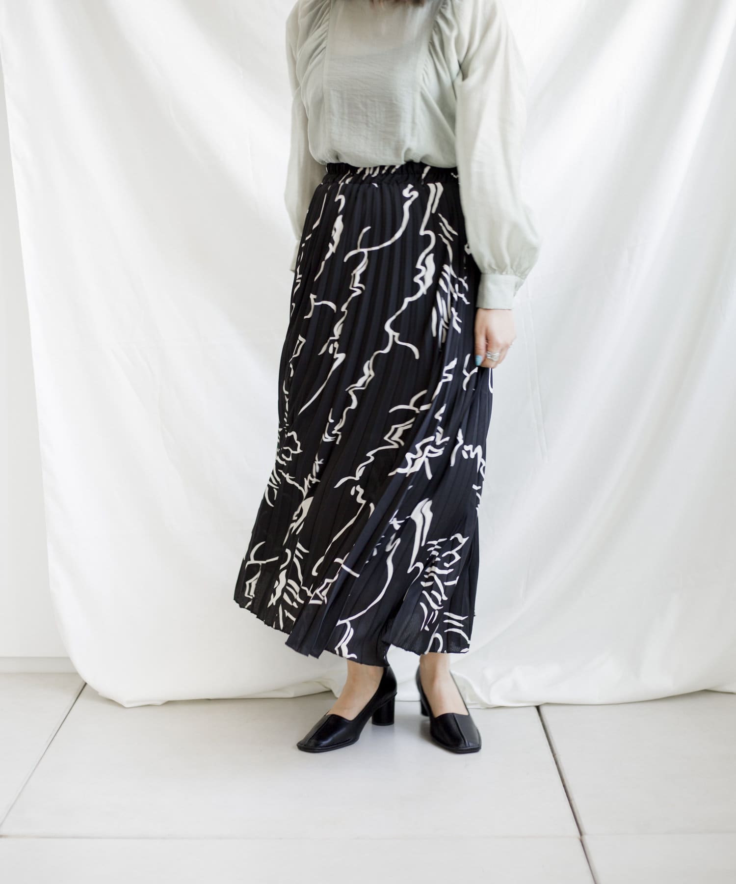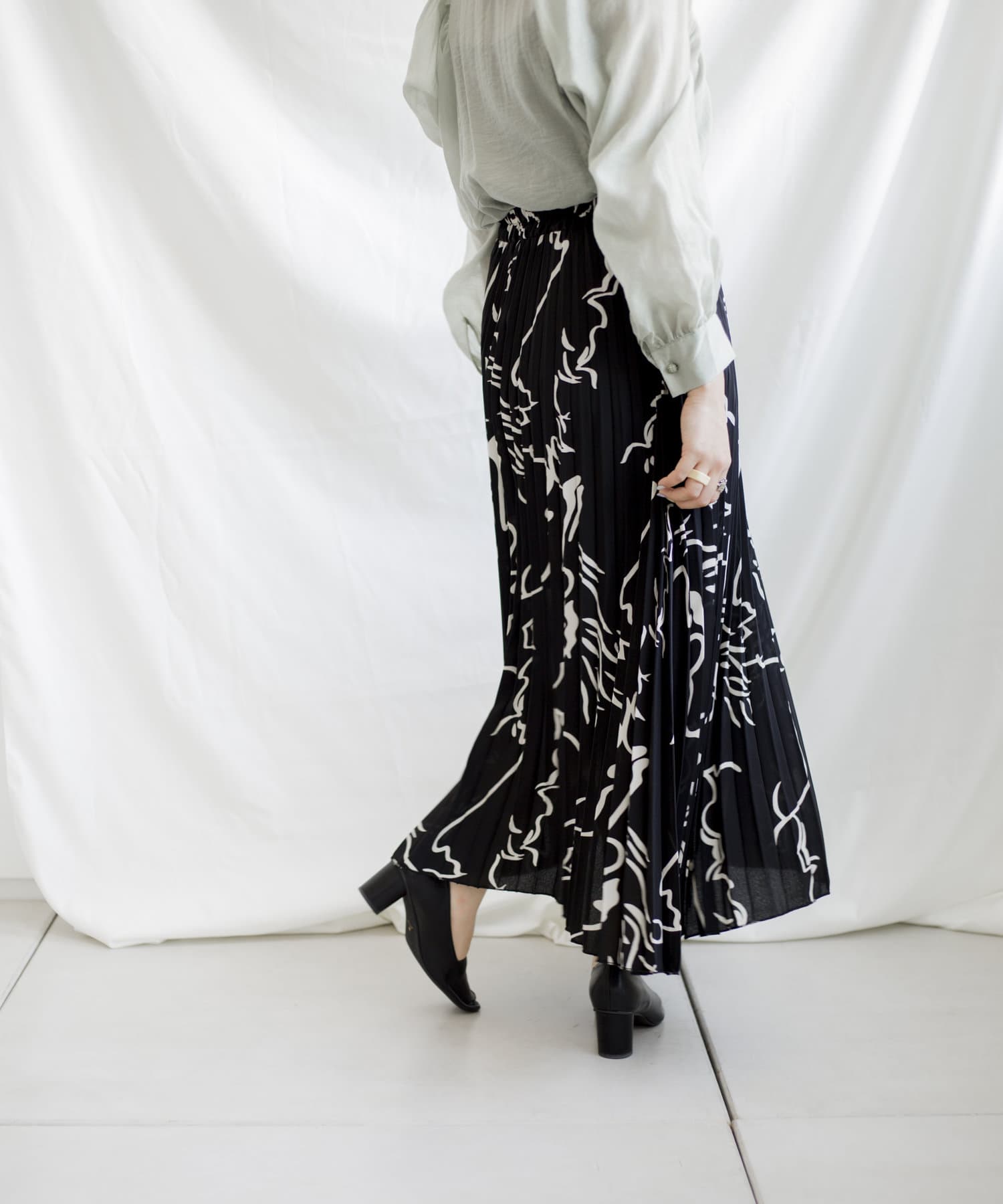 大胆な柄とロングプリーツで雰囲気溢れるスカート