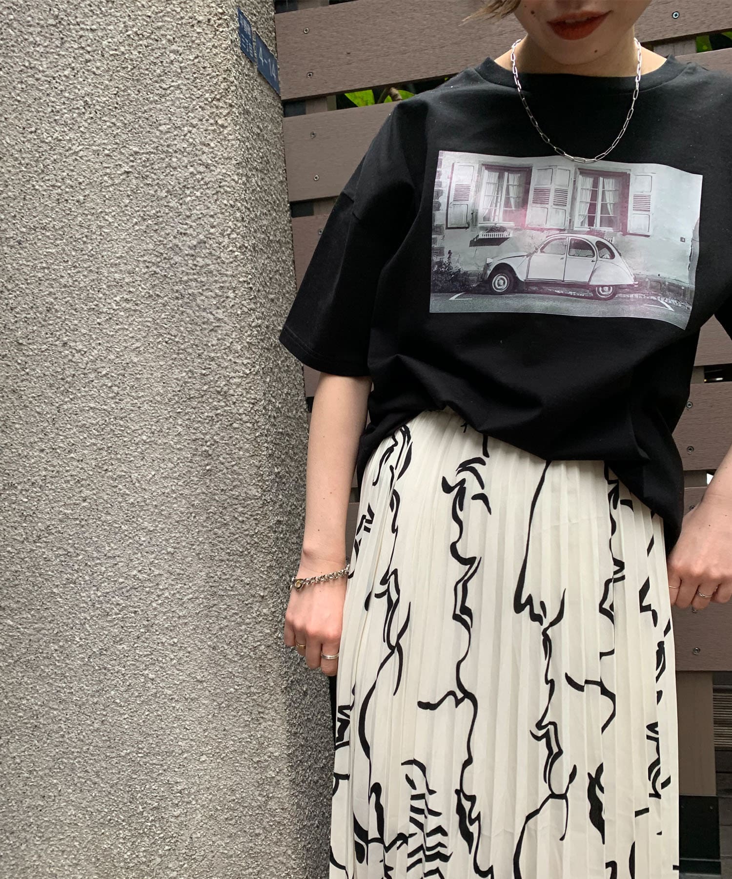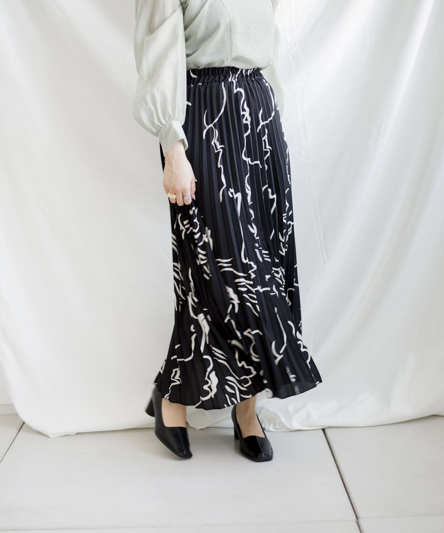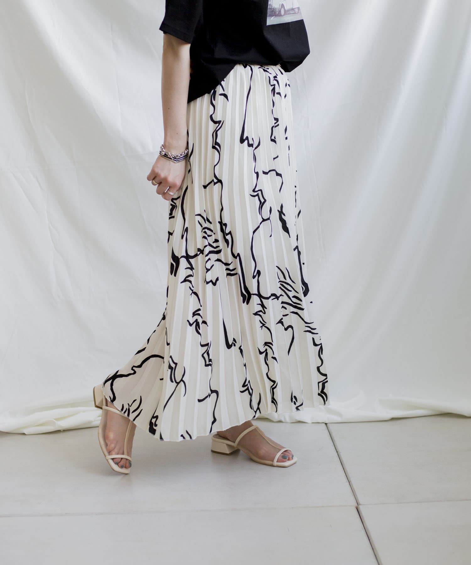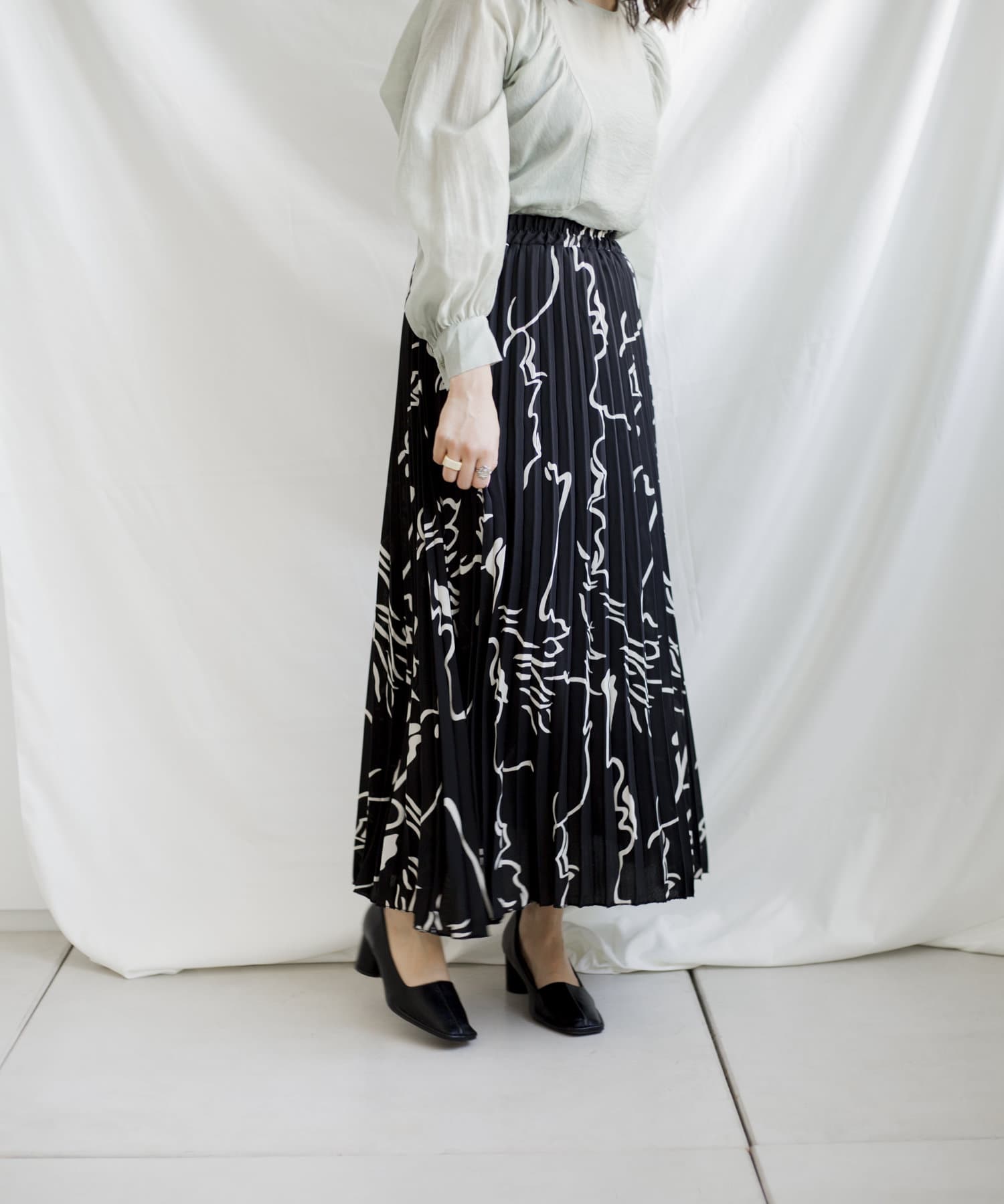 大胆な柄とロングプリーツで雰囲気溢れるスカート