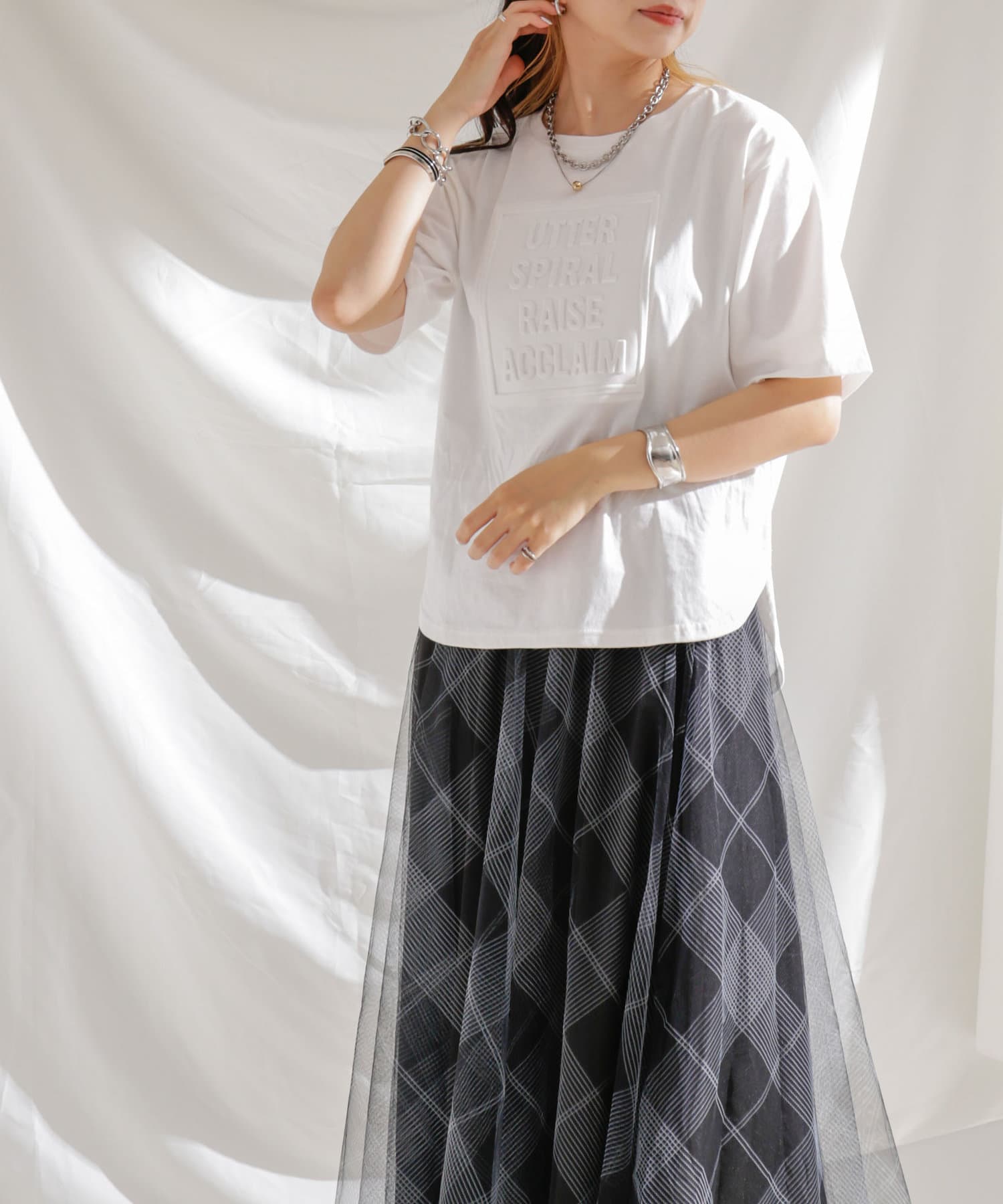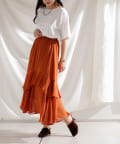 ボトムスにチュールスカートを合わせて、ワイドパンツやデニムで合わせてシンプルカジュアルに、キャミワンピースやサロペットのインナーに入れても◎!