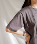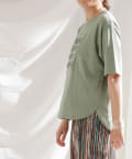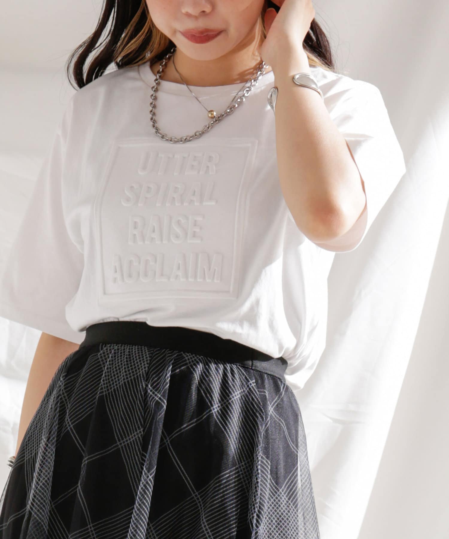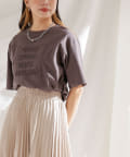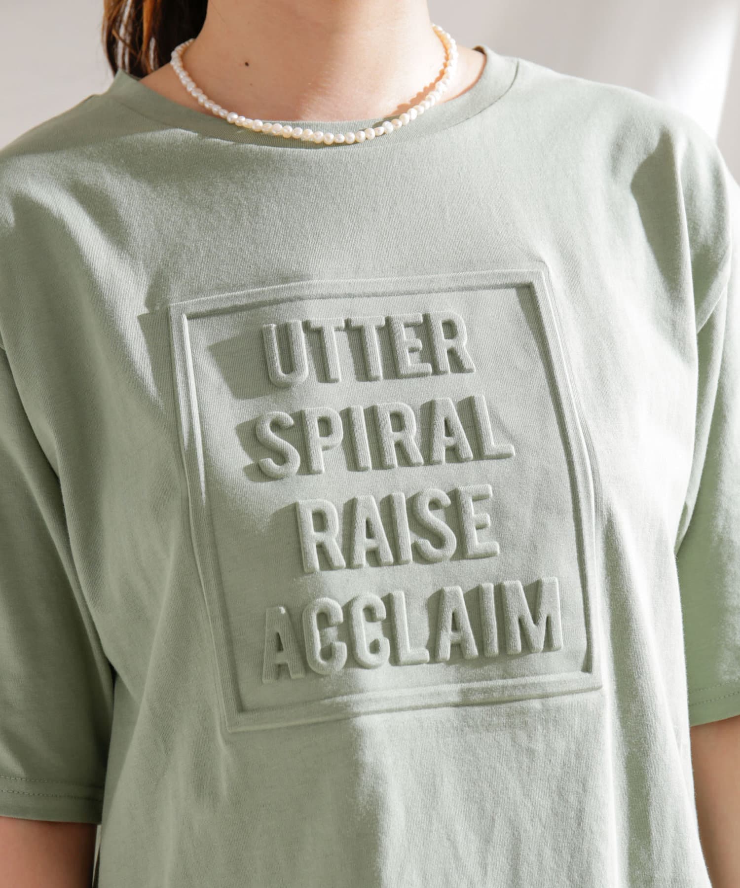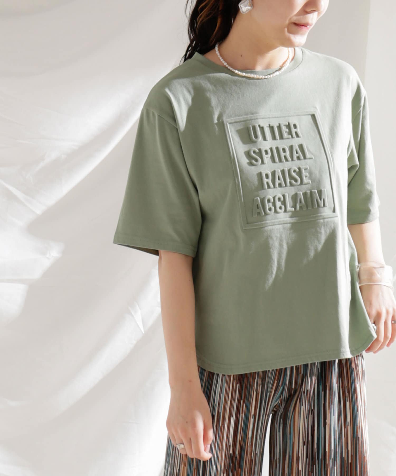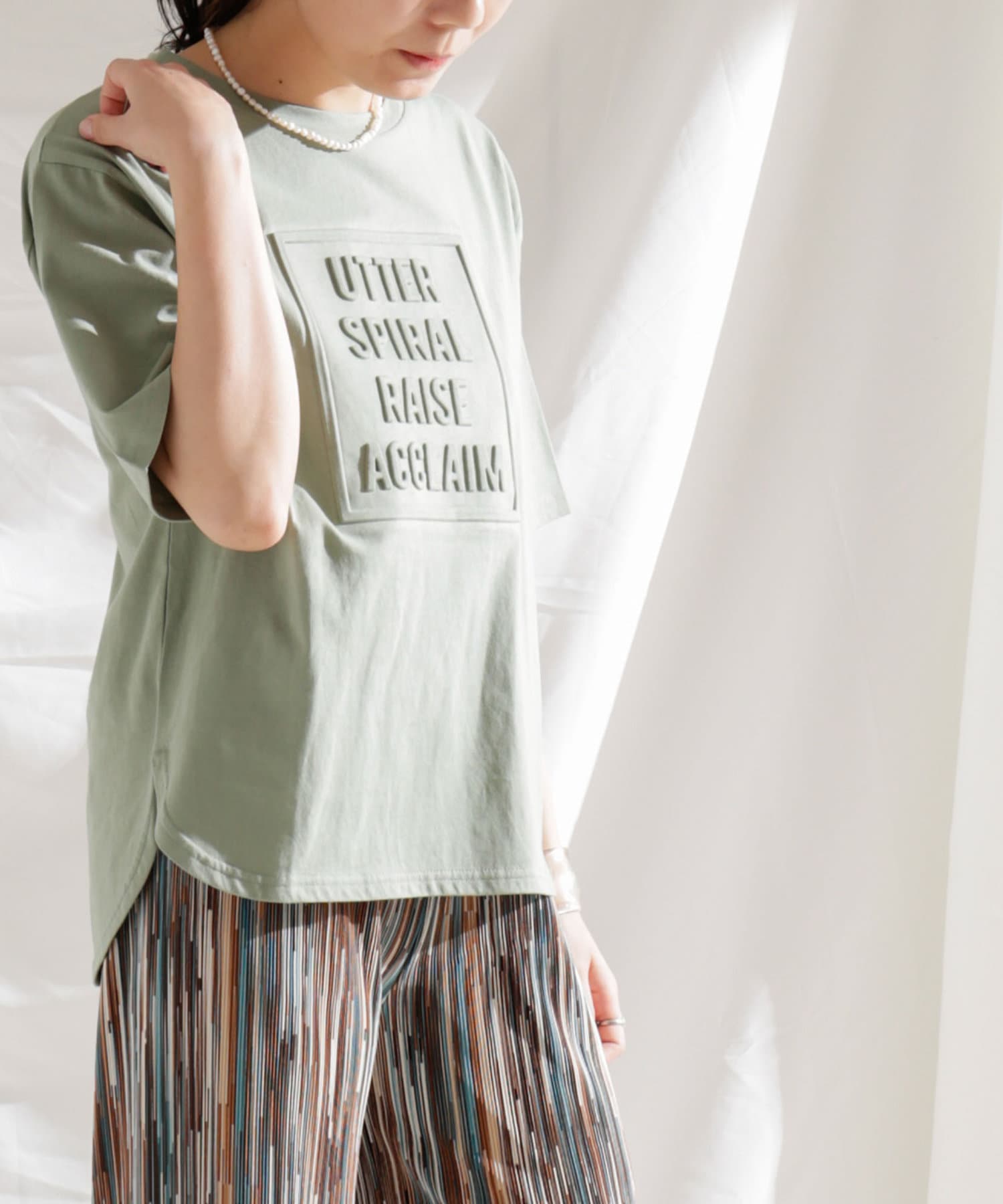 ・ロゴ・半袖Tシャツ・エンボスロゴ・スリット・オレンジ・くすみカラー・カジュアル・大人カジュアル・秋服・シンプル