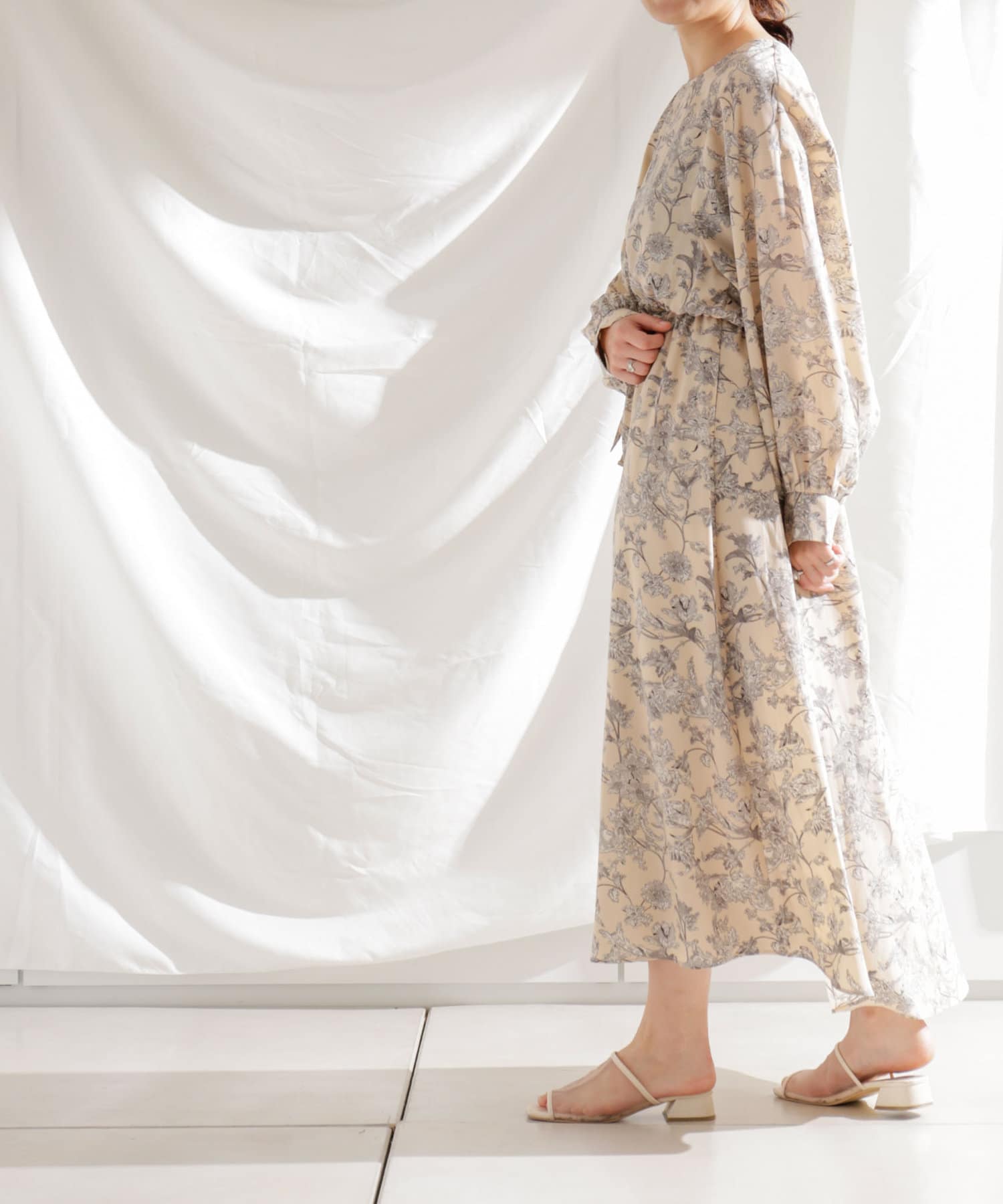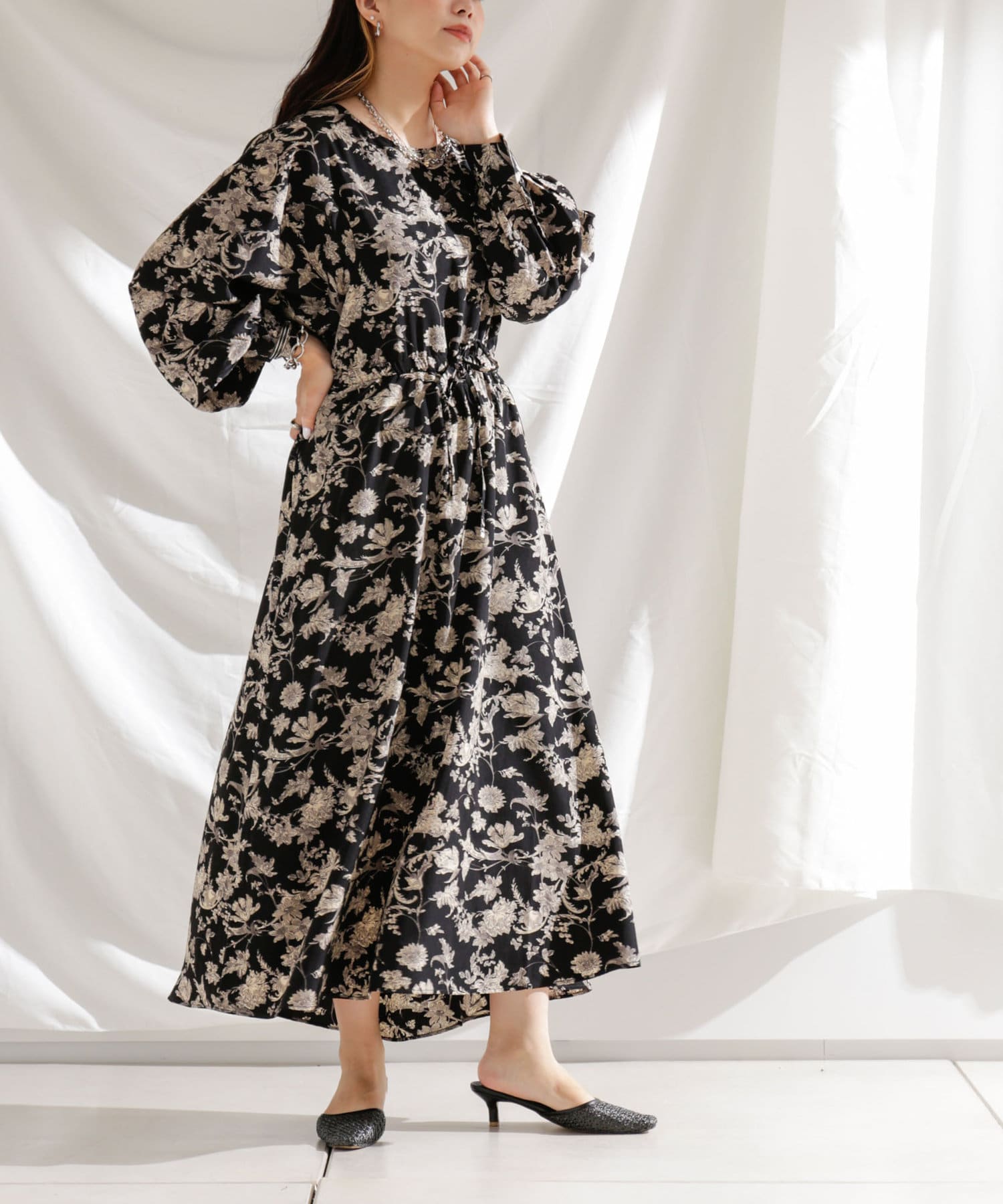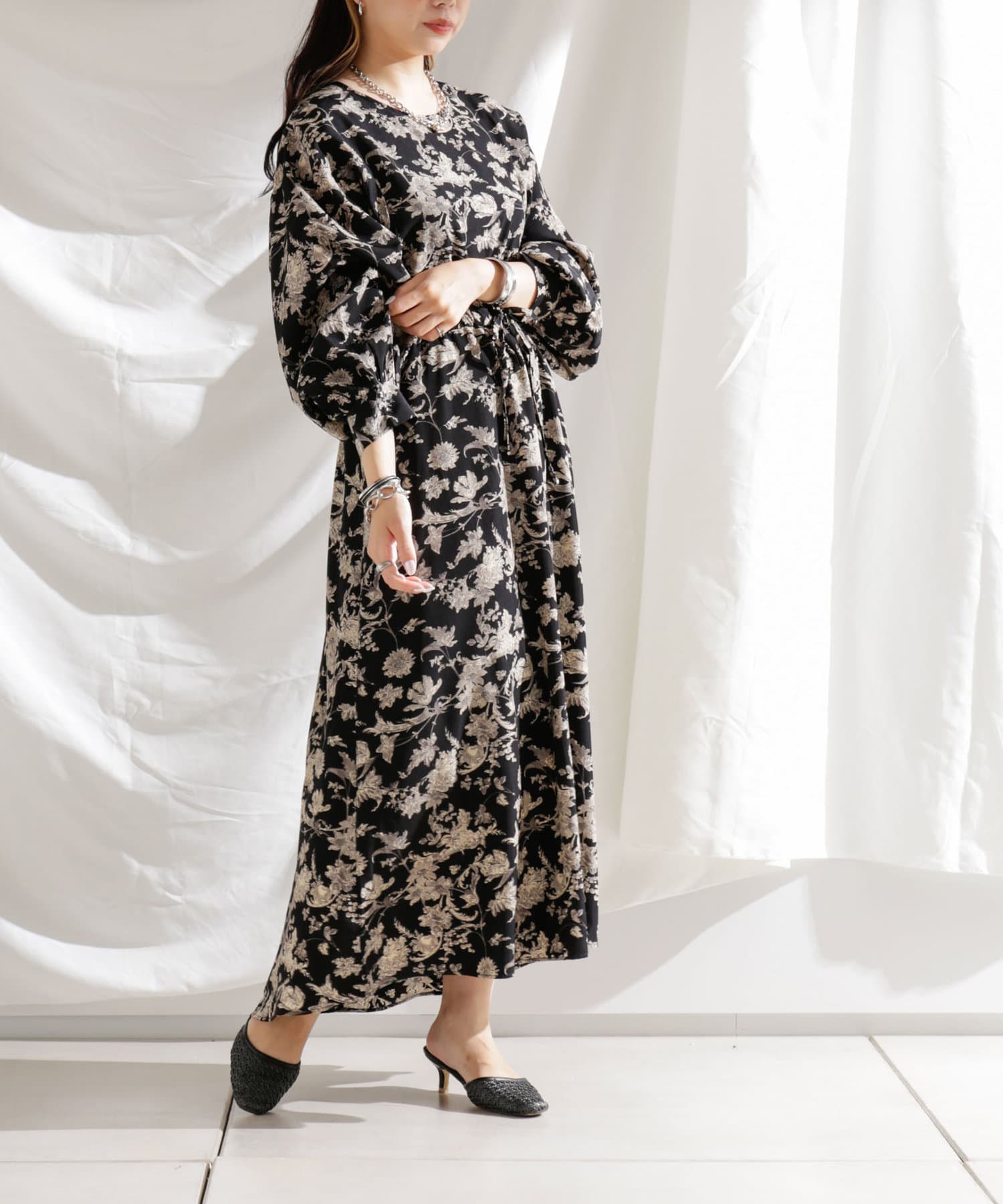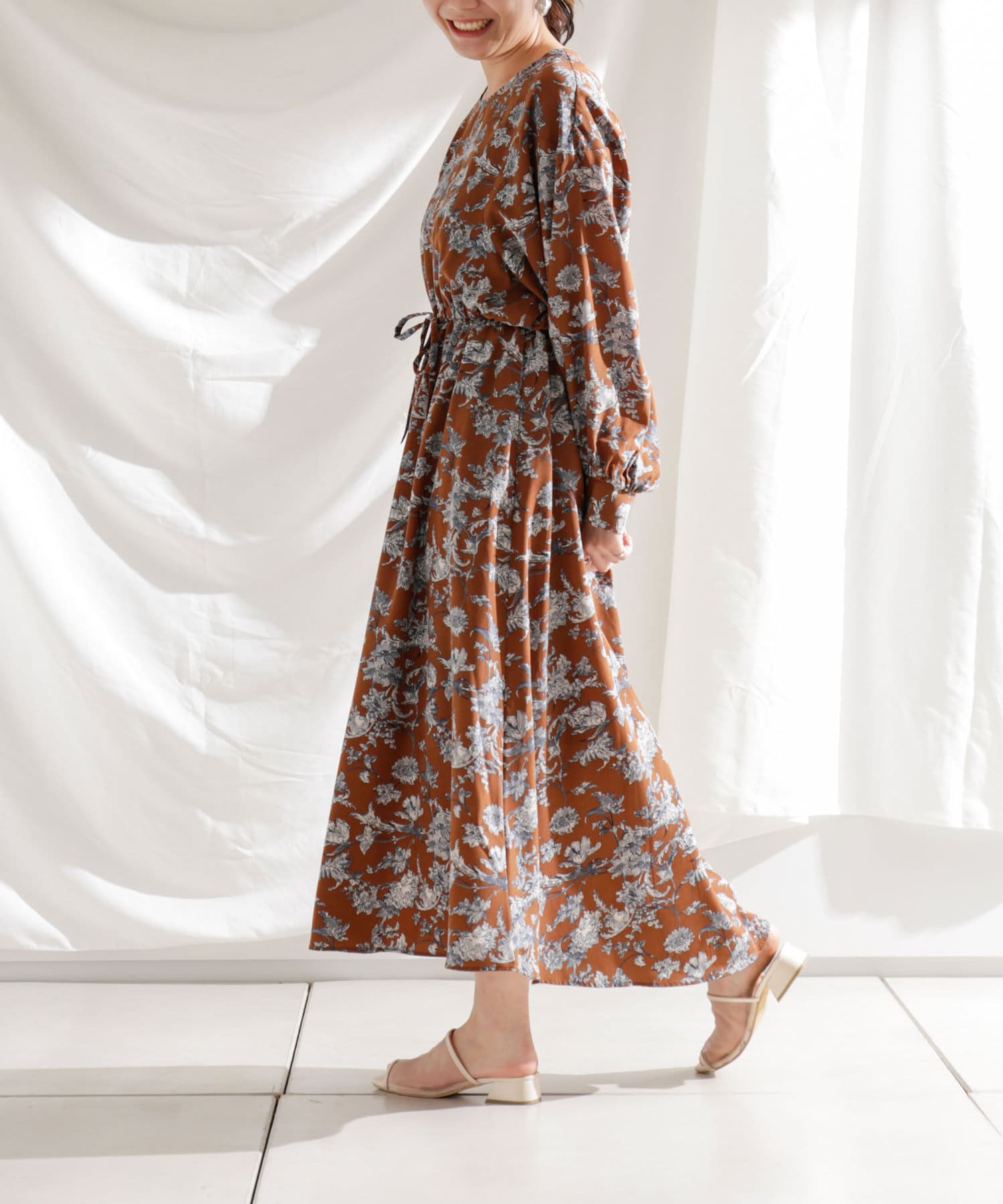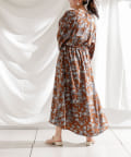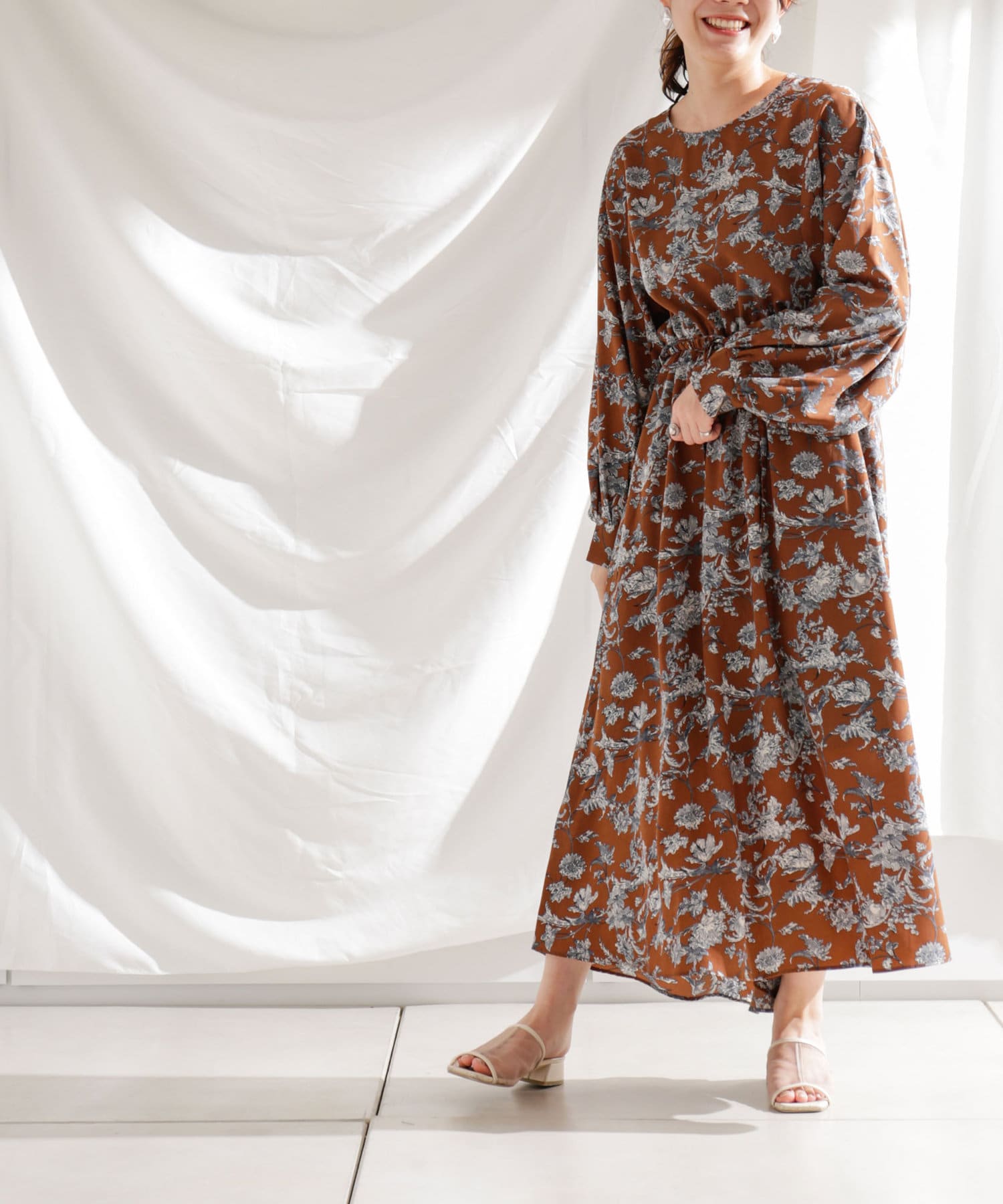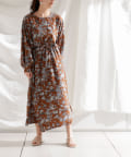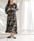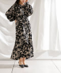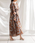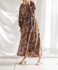 ・花柄ワンピース・ロングワンピース・袖ボリューム・ドレッシー・大人カジュアル・カジュアルワンピース・秋カラー・女子会・大人女子・二次会・21AW