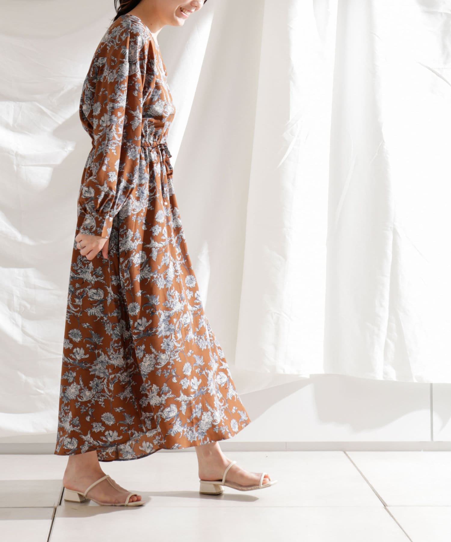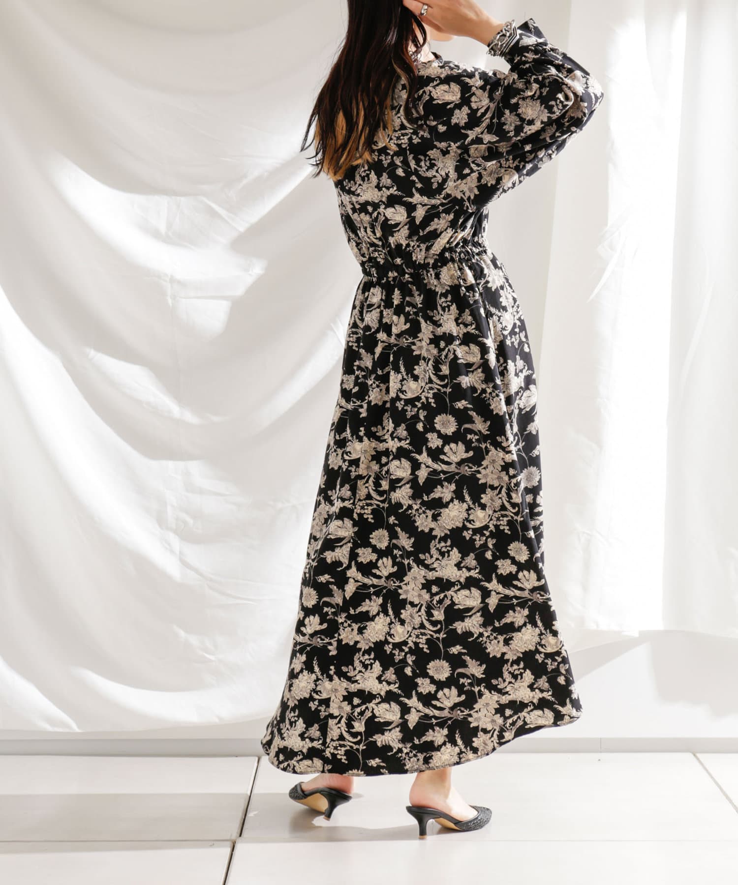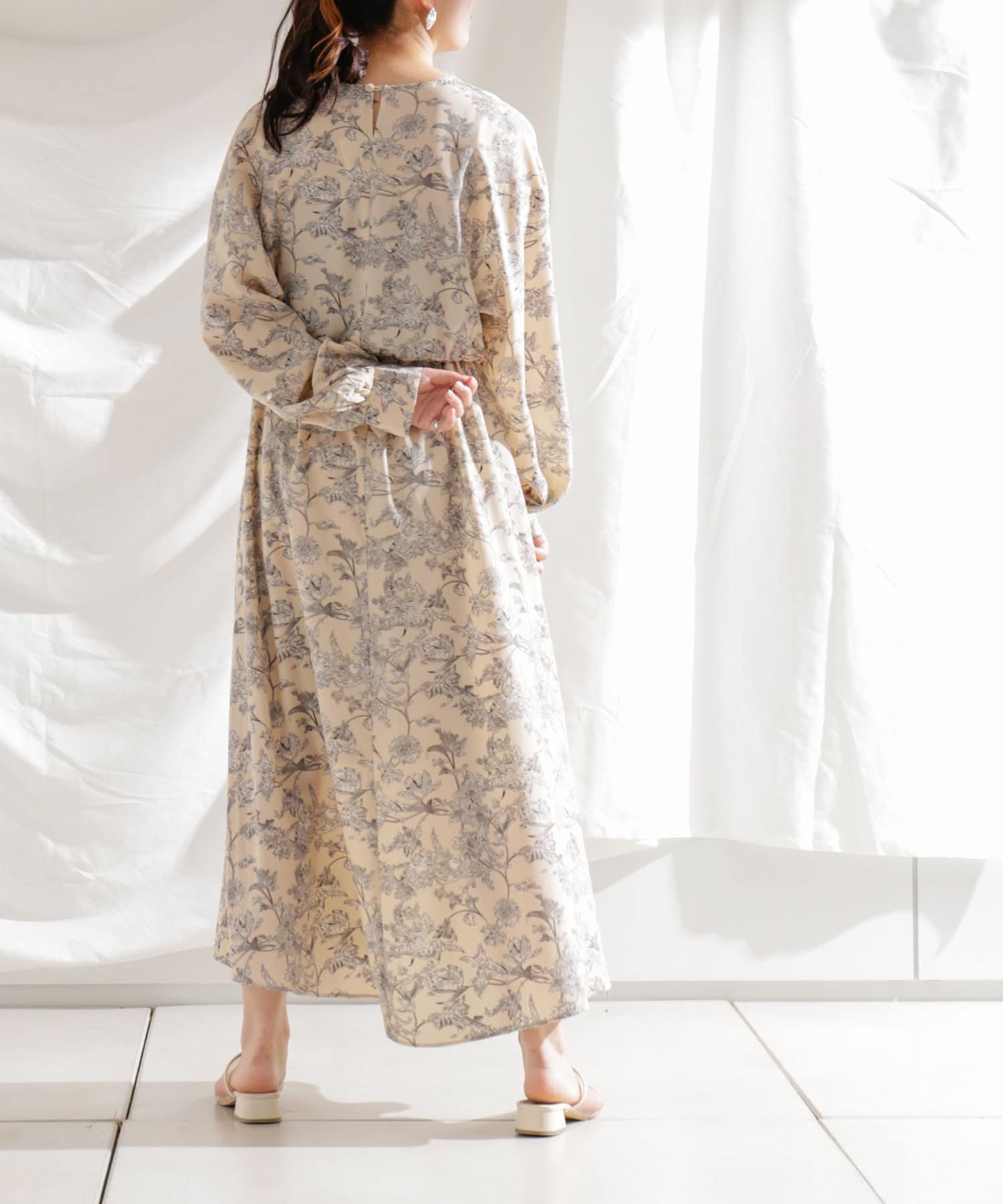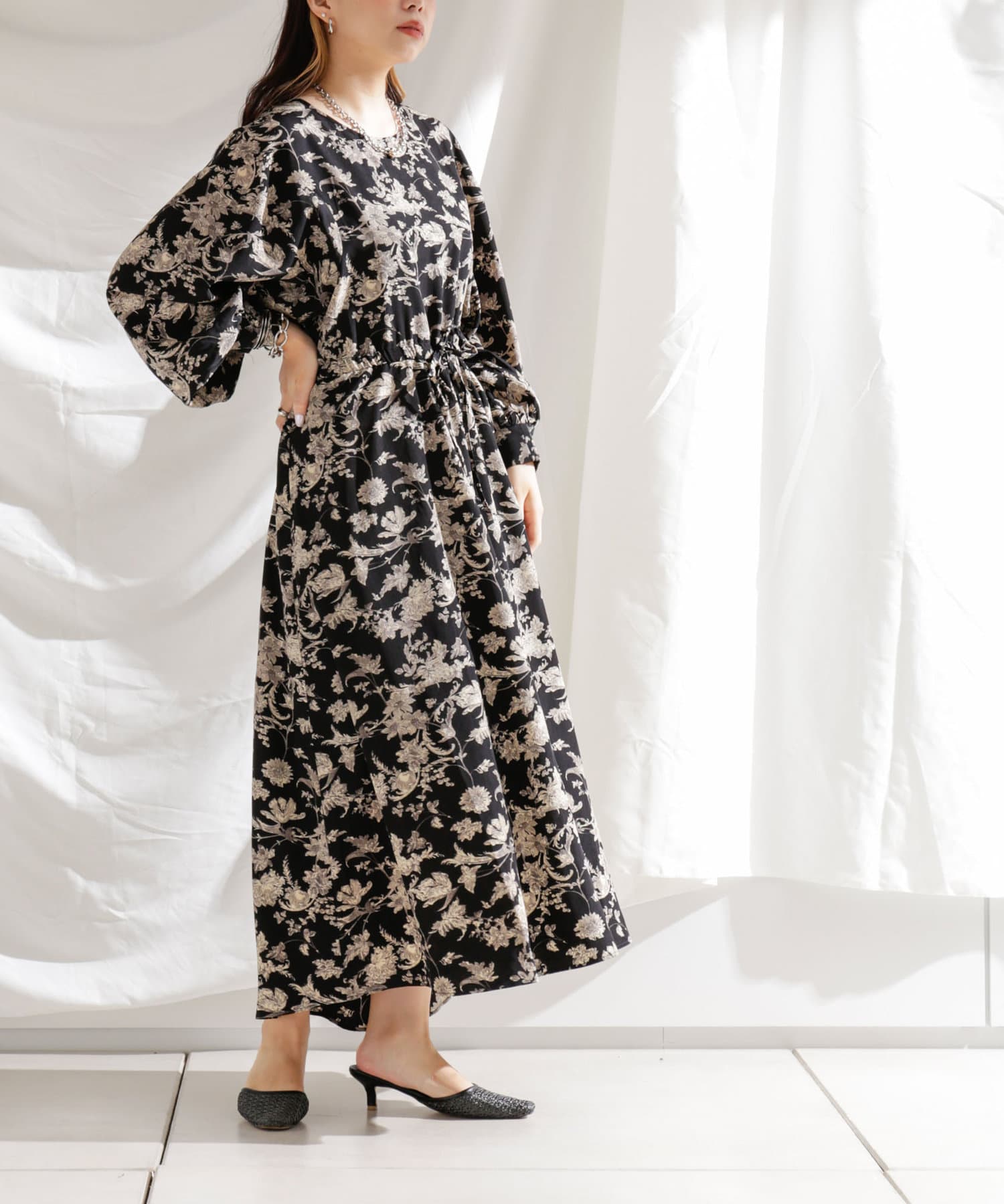 ・花柄ワンピース・ロングワンピース・袖ボリューム・ドレッシー・大人カジュアル・カジュアルワンピース・秋カラー・女子会・大人女子・二次会・21AW
