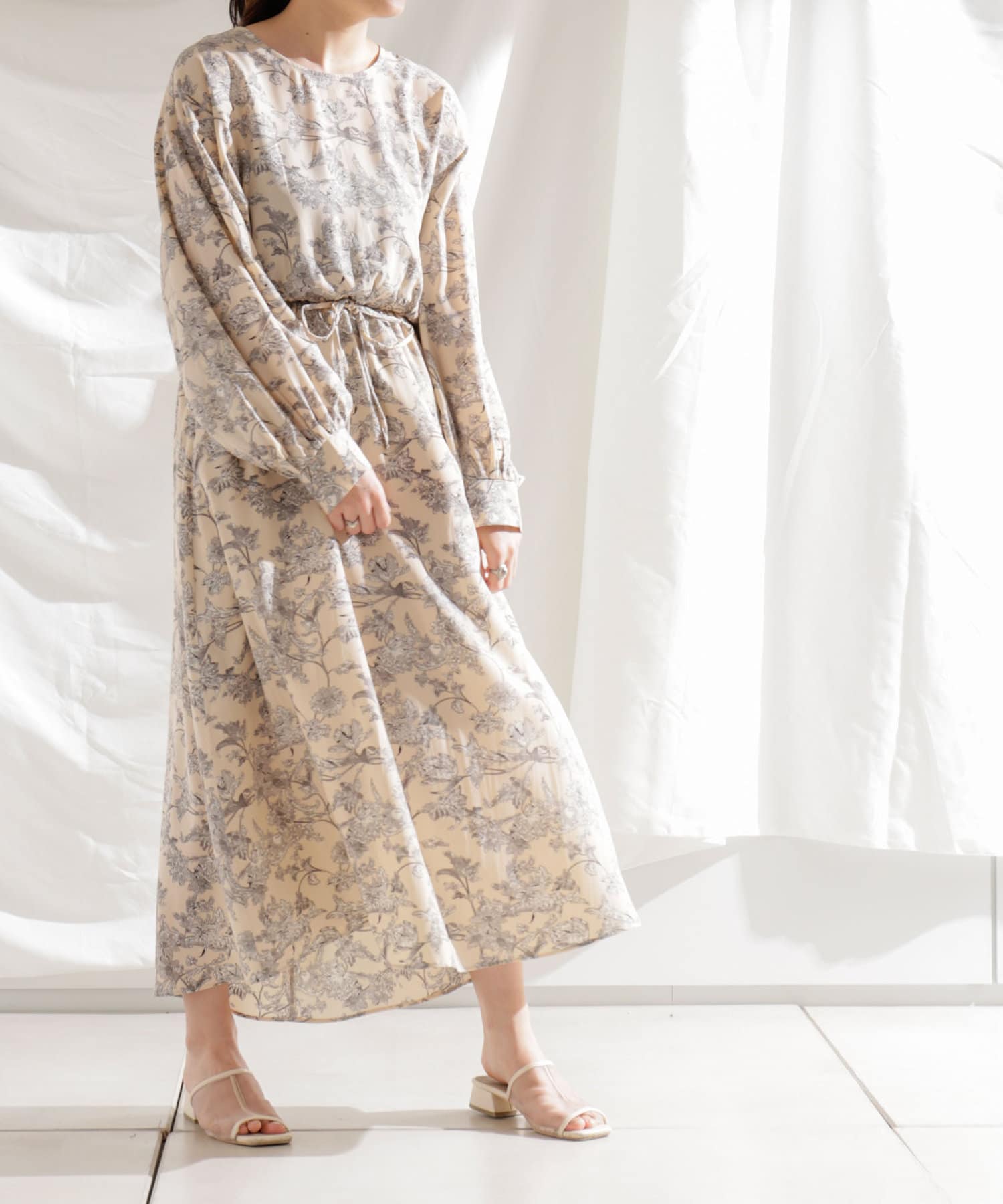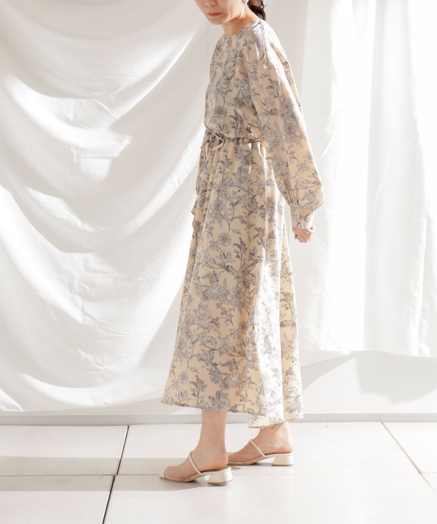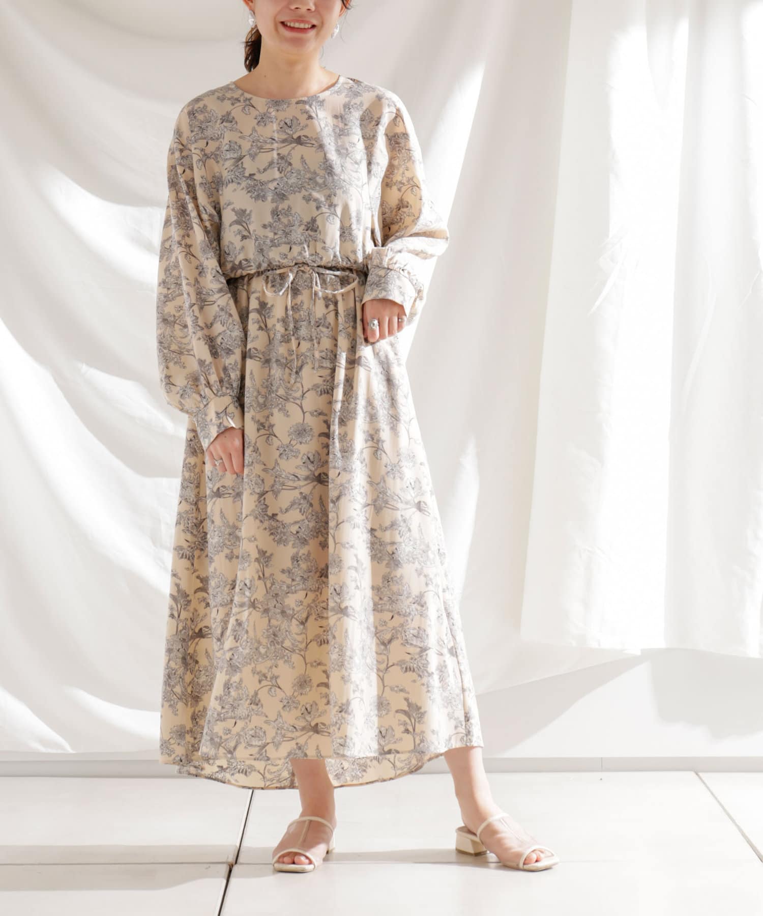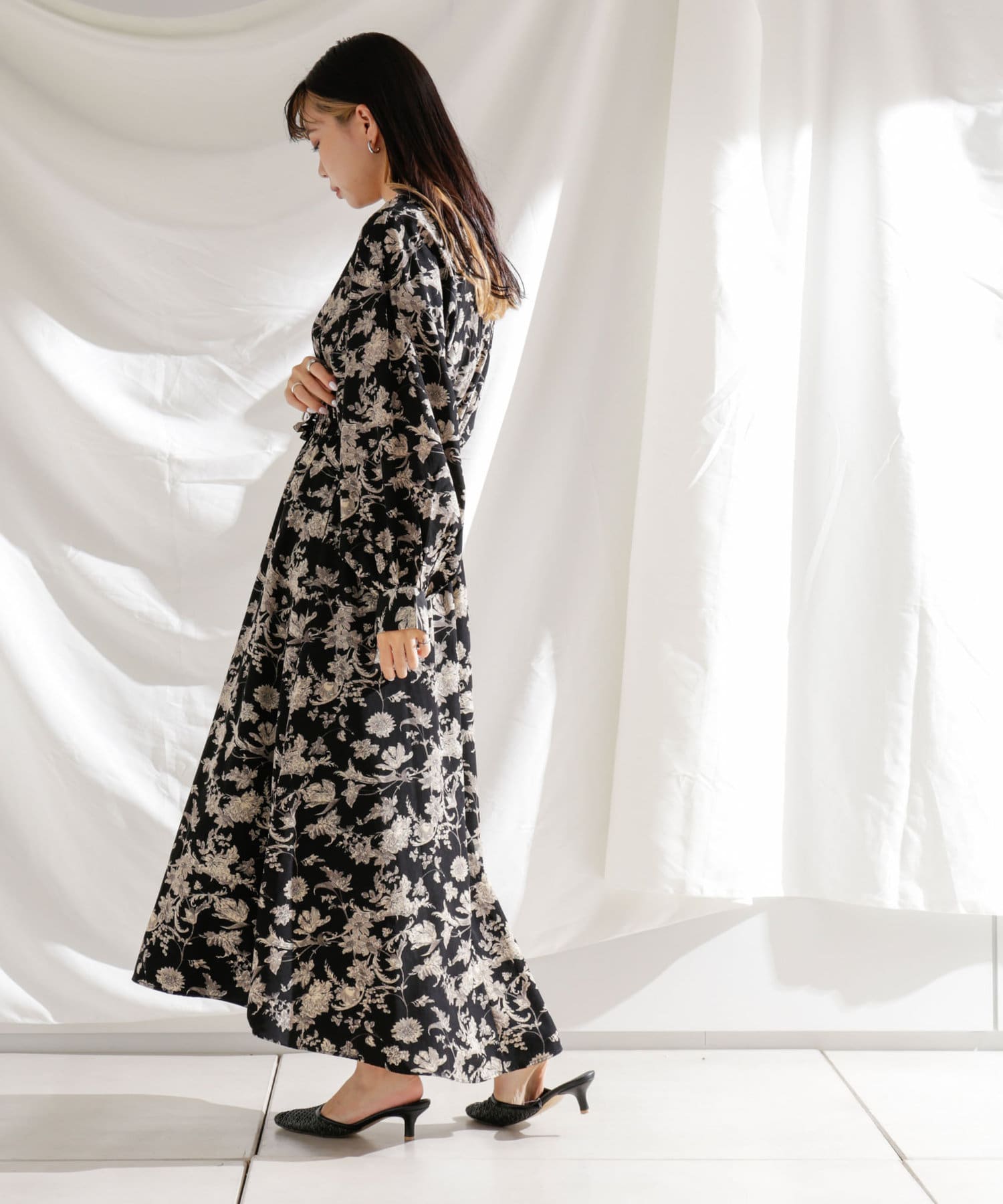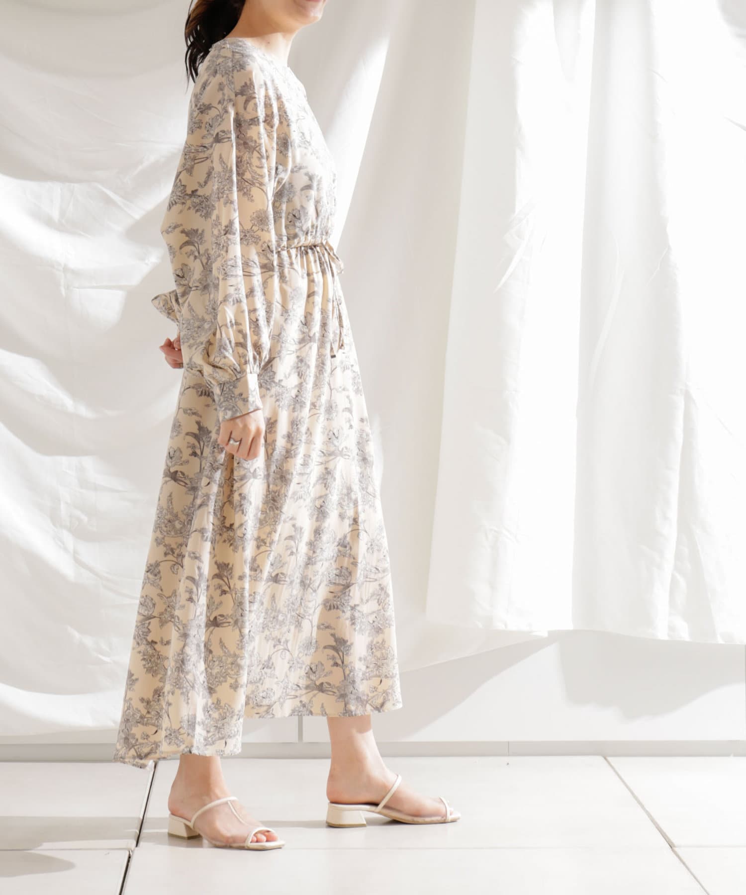 ・花柄ワンピース・ロングワンピース・袖ボリューム・ドレッシー・大人カジュアル・カジュアルワンピース・秋カラー・女子会・大人女子・二次会・21AW