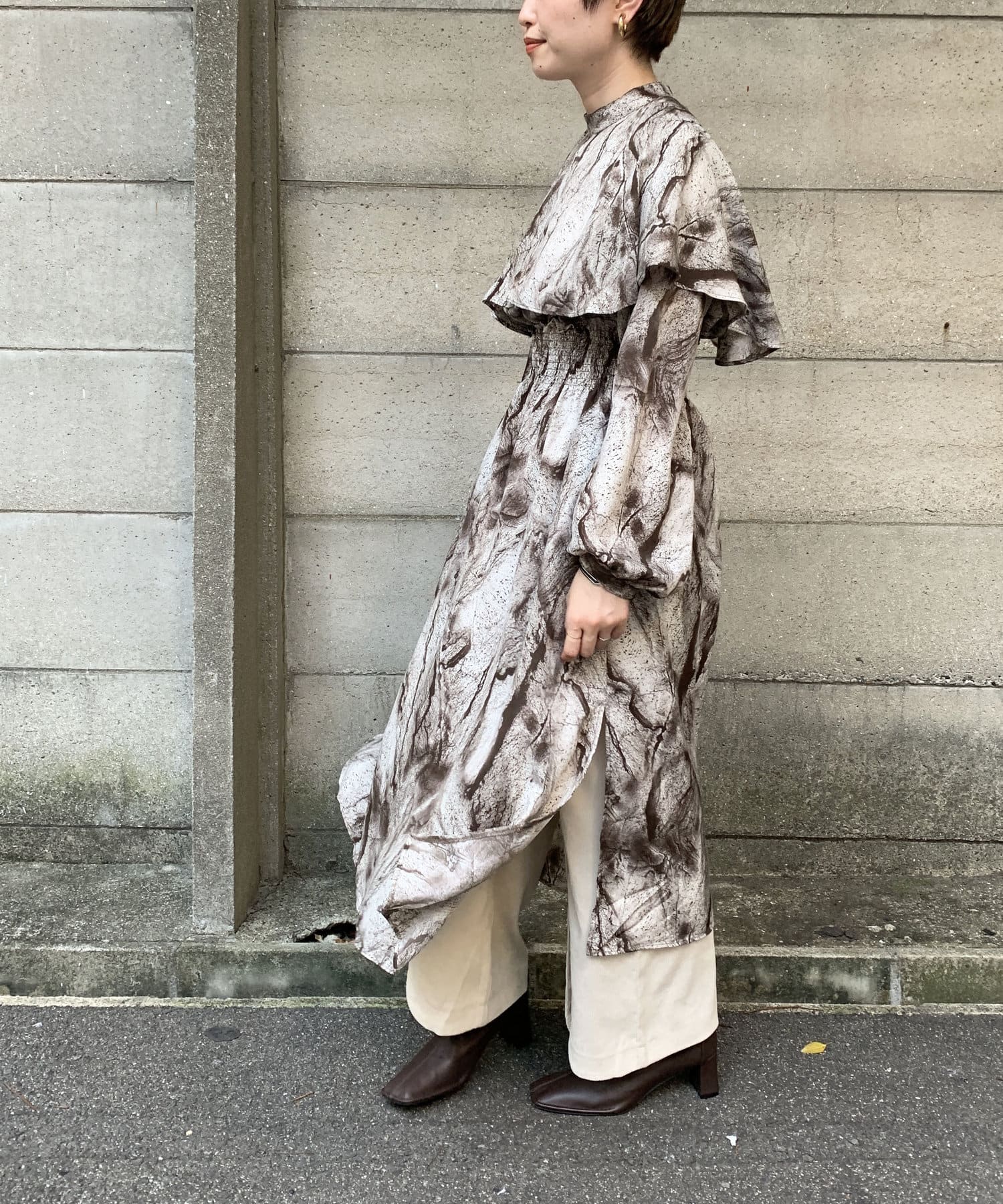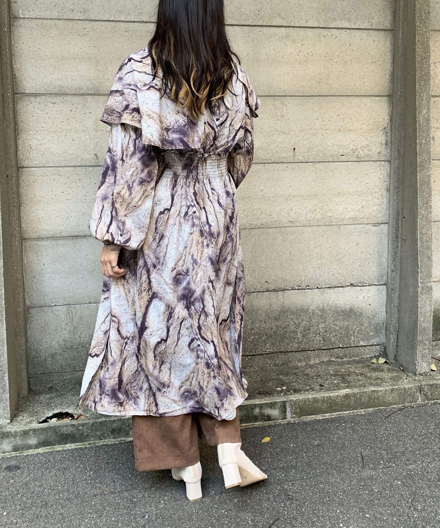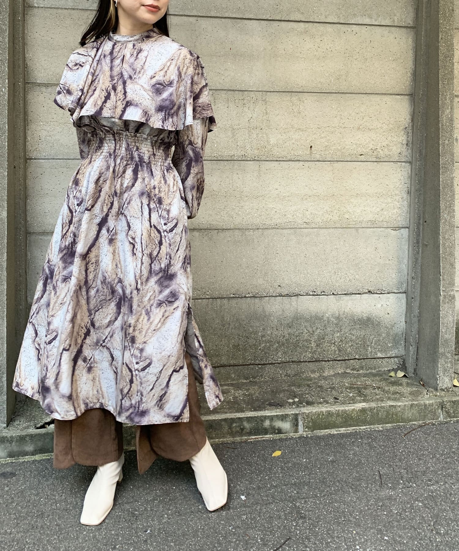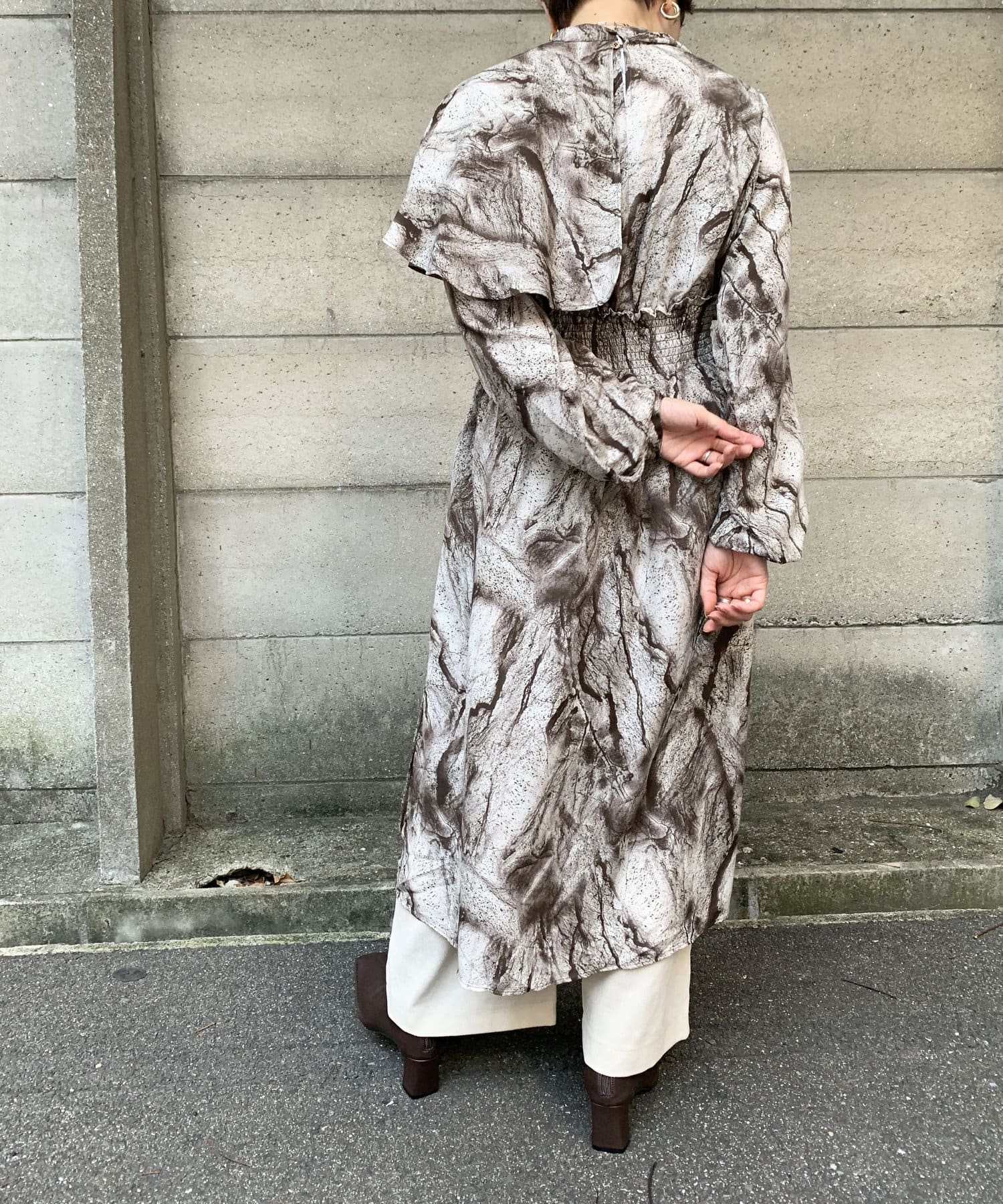Thevon.(ゼヴォン) 【WEB限定】マーブルパターンケープワンピース