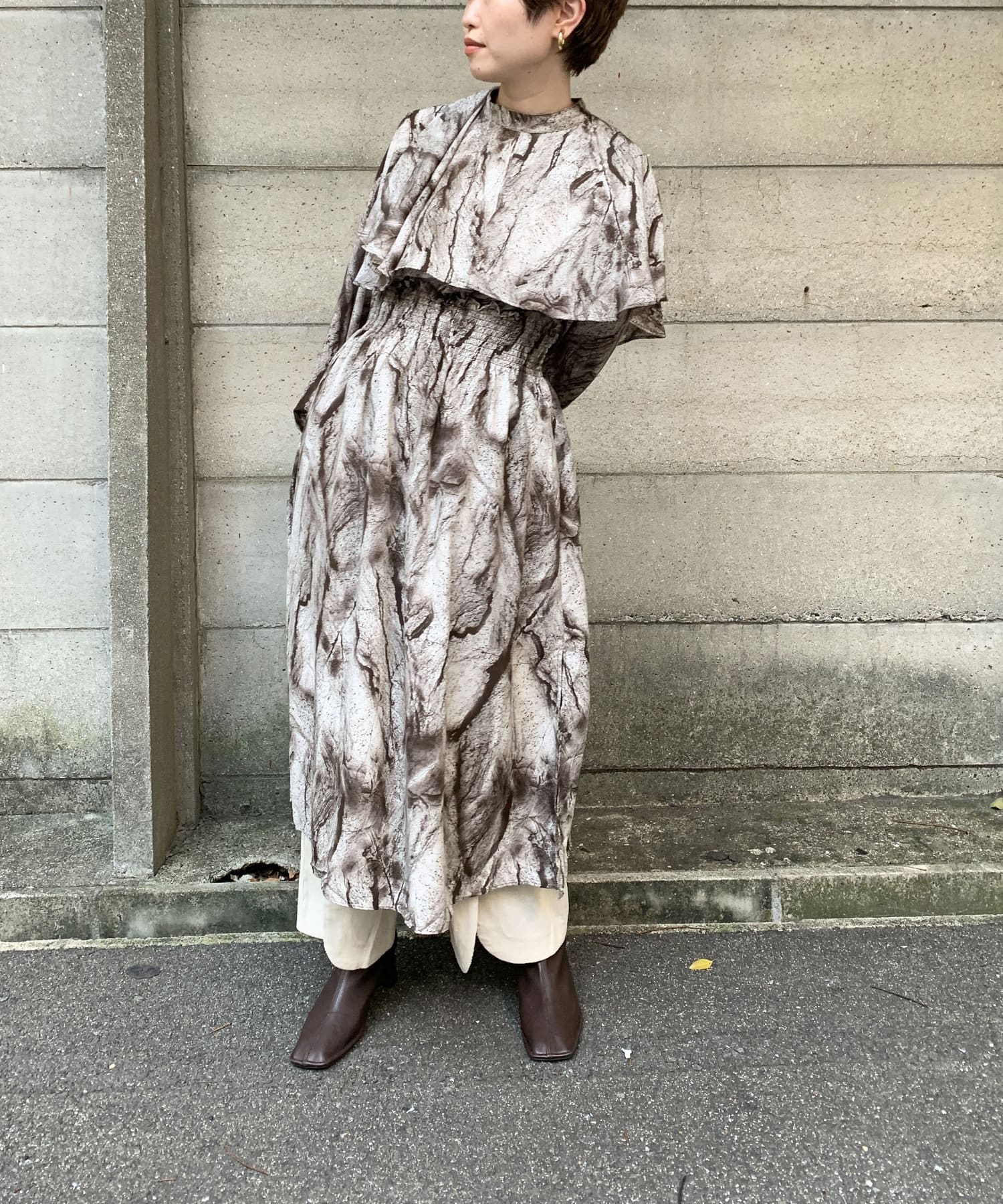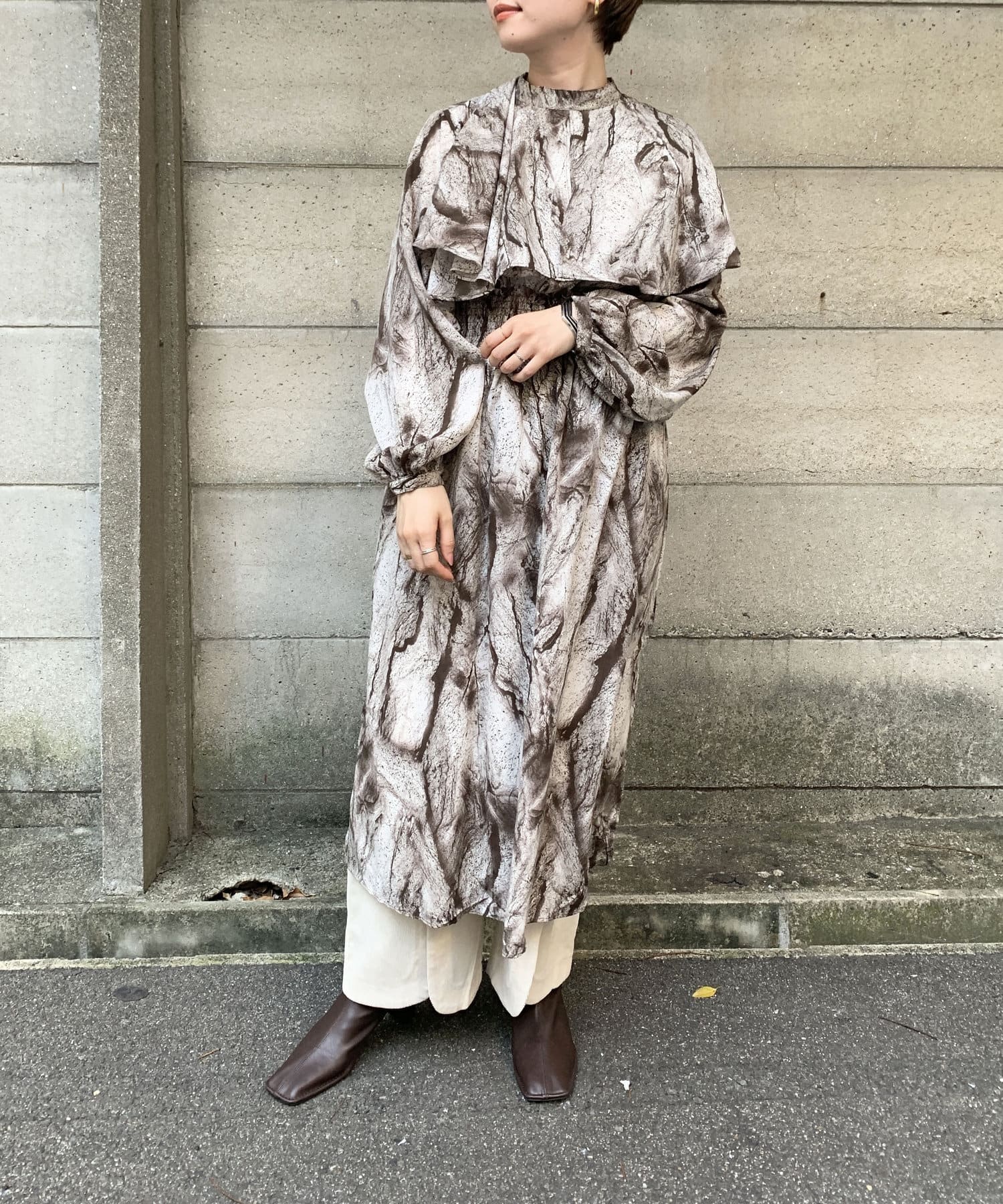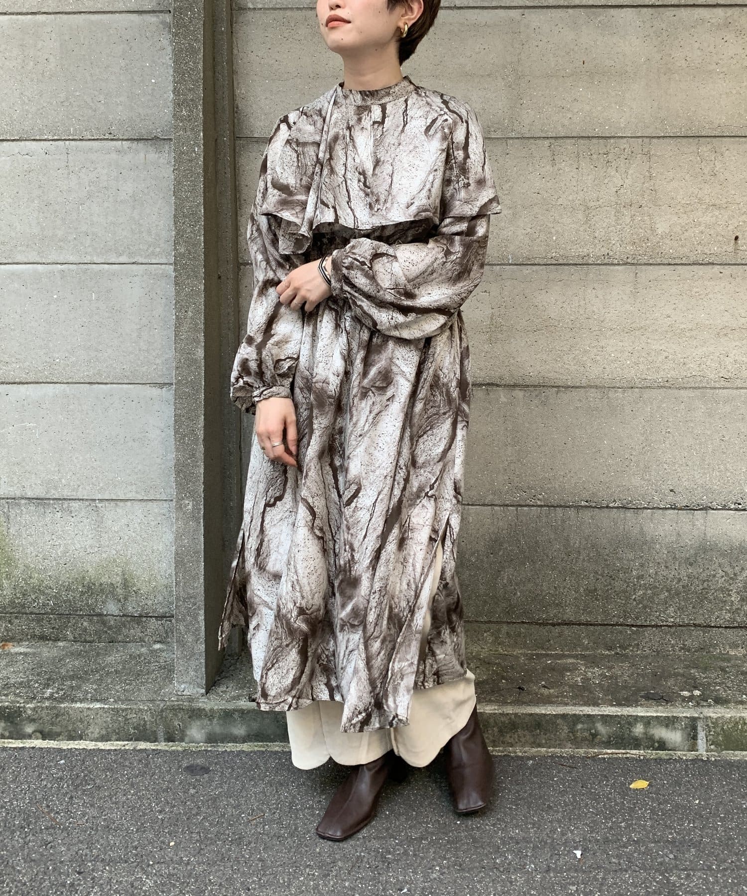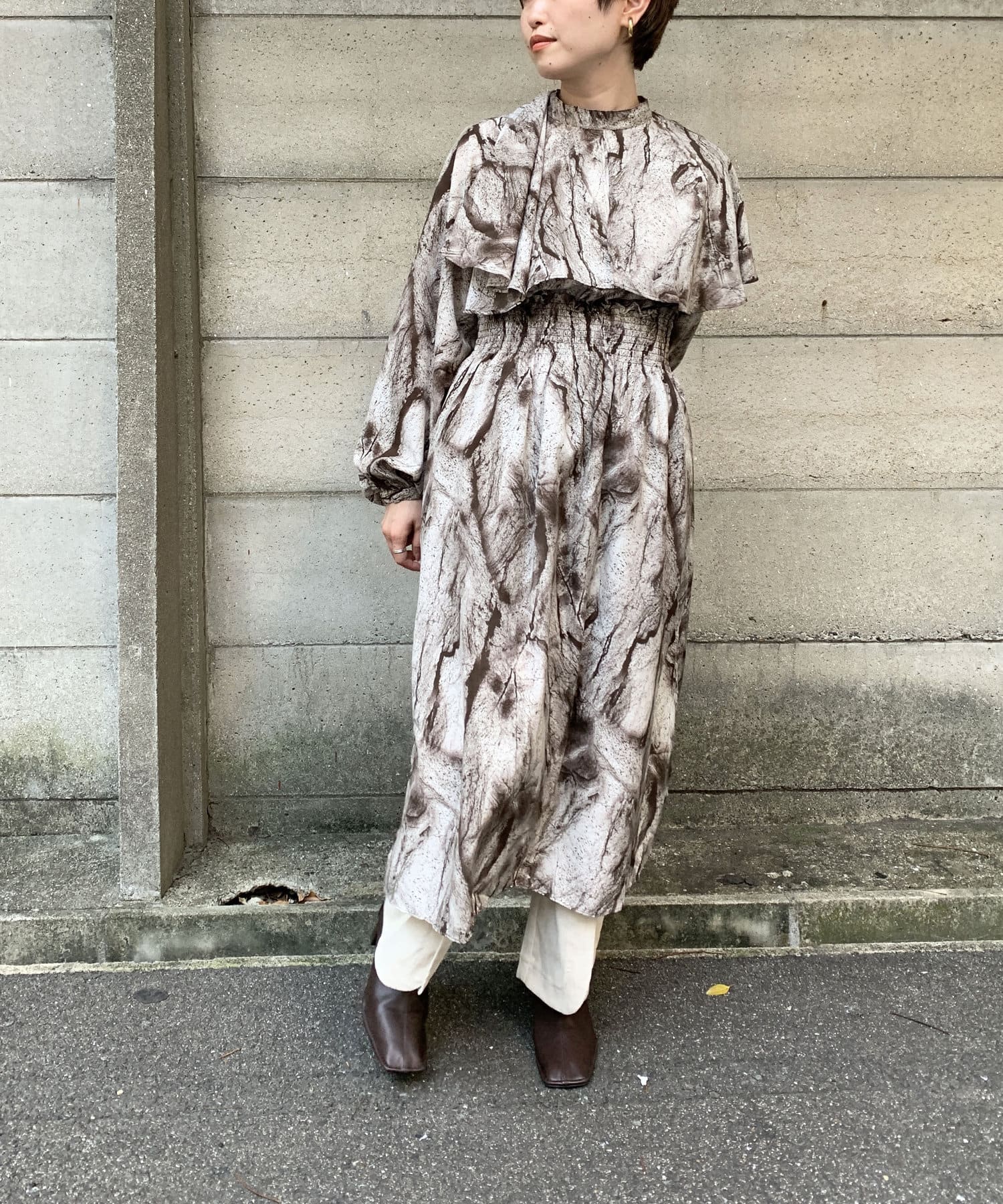 Thevon.(ゼヴォン) 【WEB限定】マーブルパターンケープワンピース