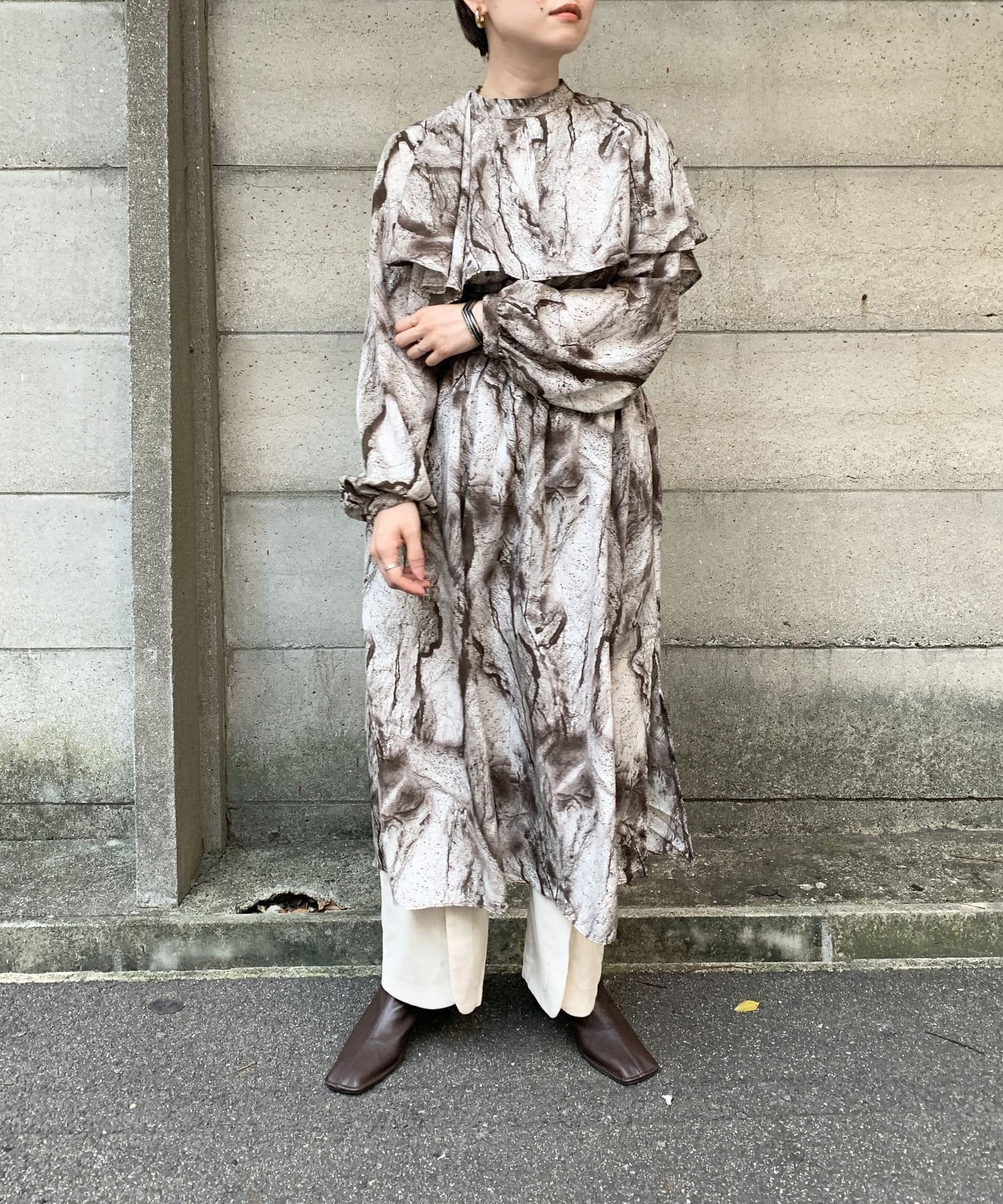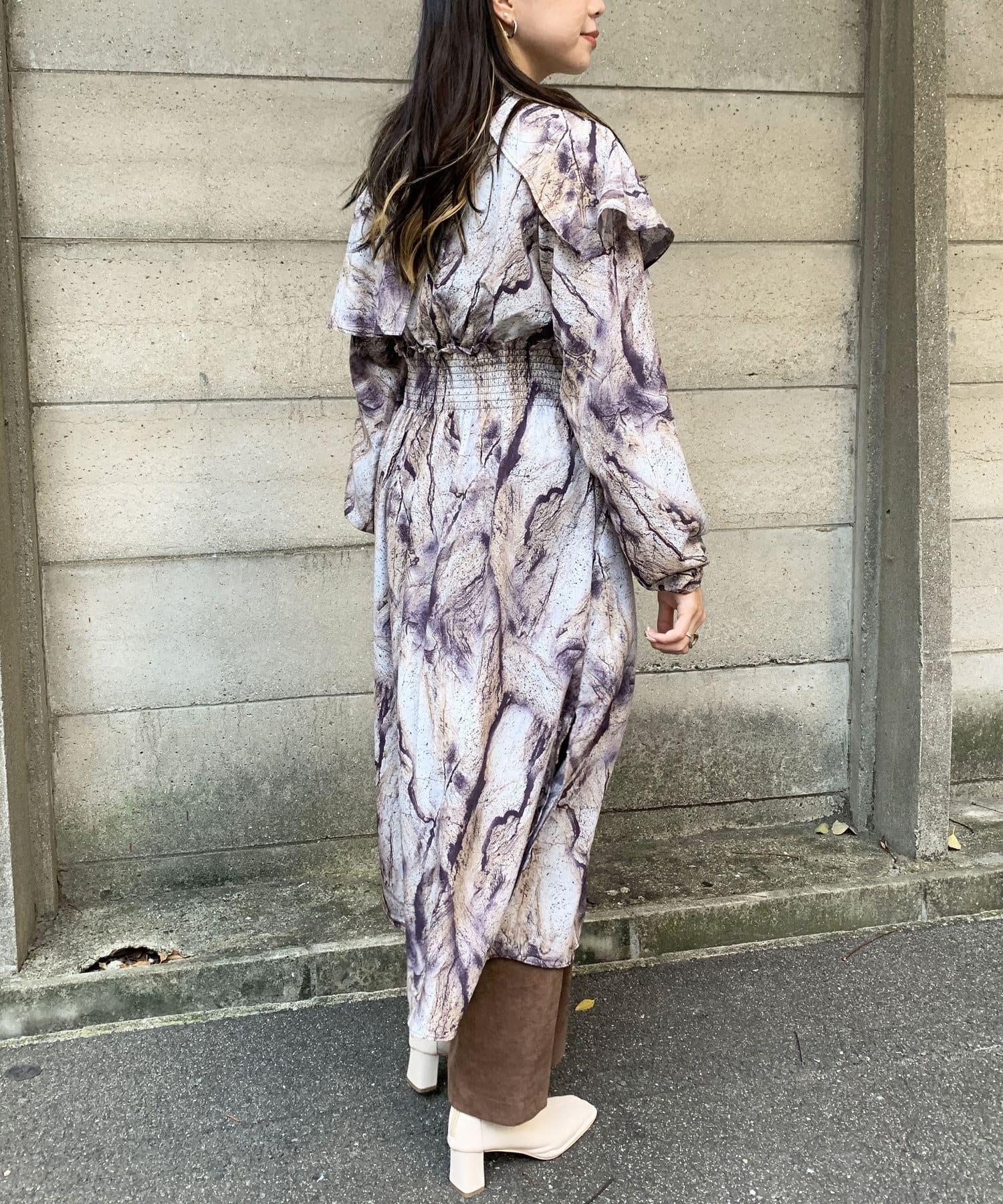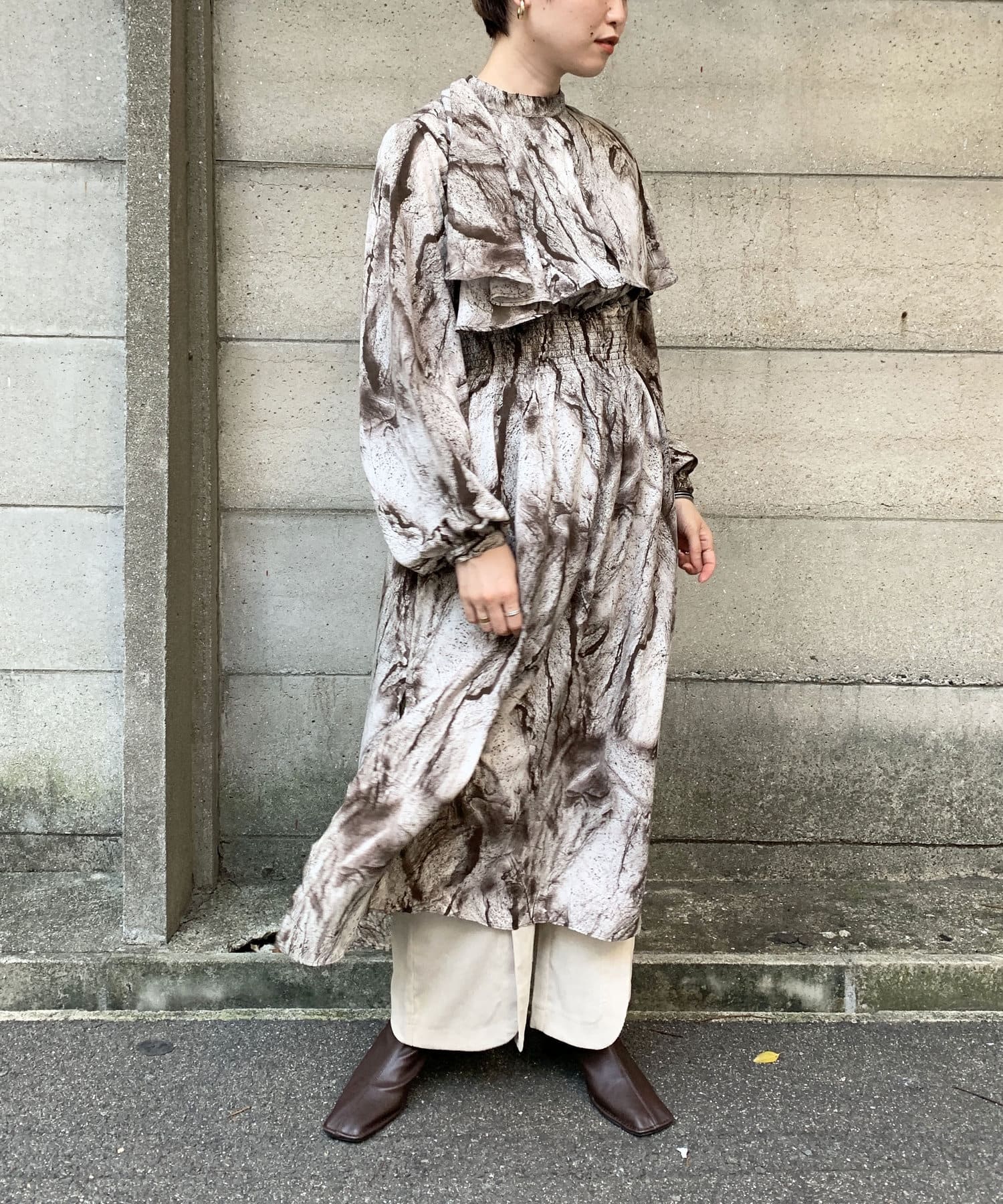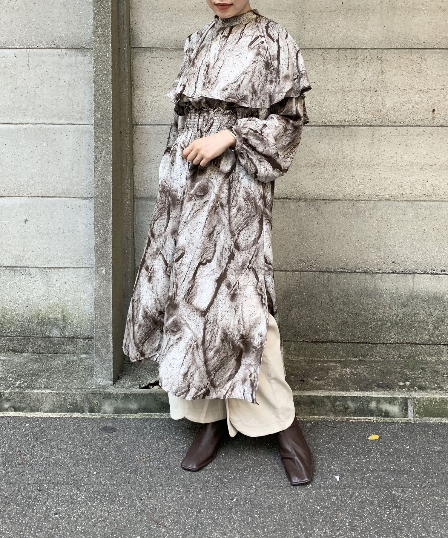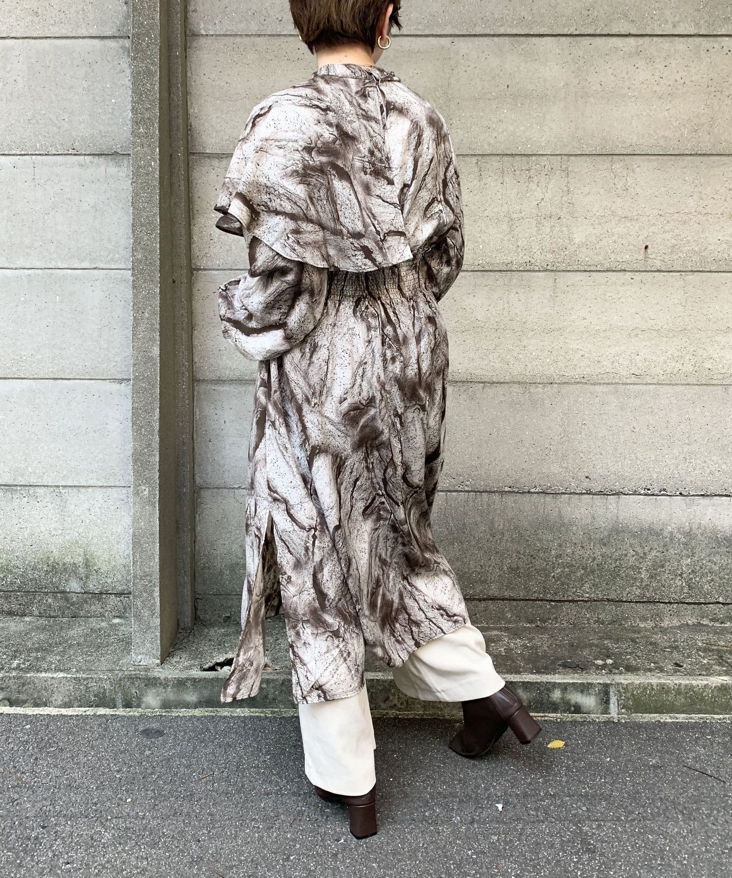 Thevon.(ゼヴォン) 【WEB限定】マーブルパターンケープワンピース