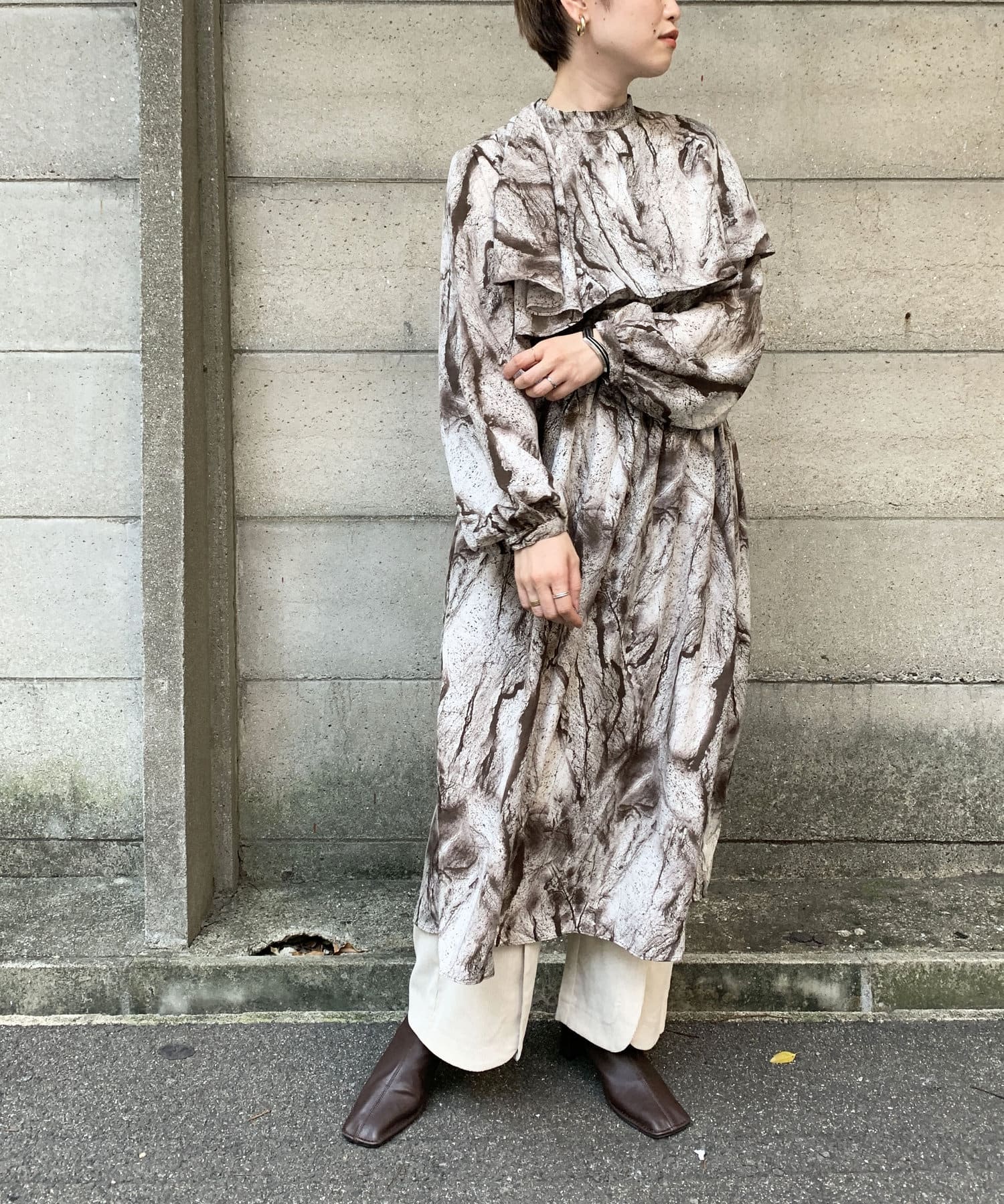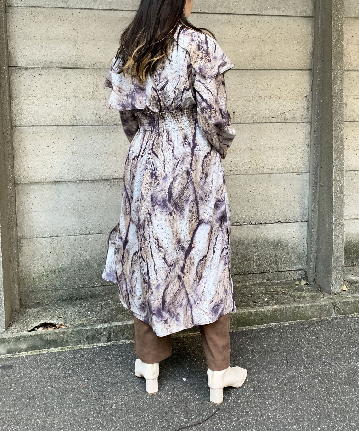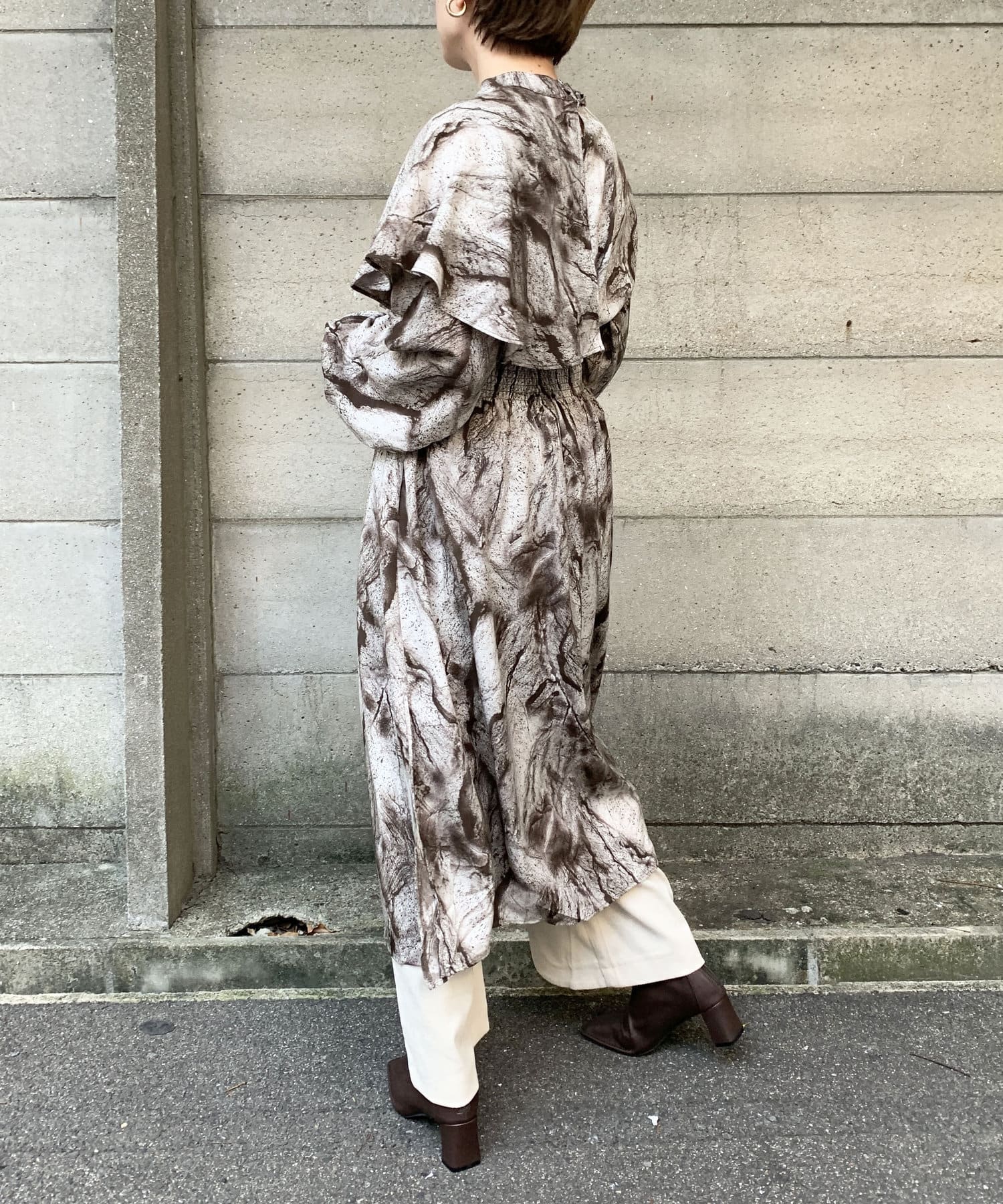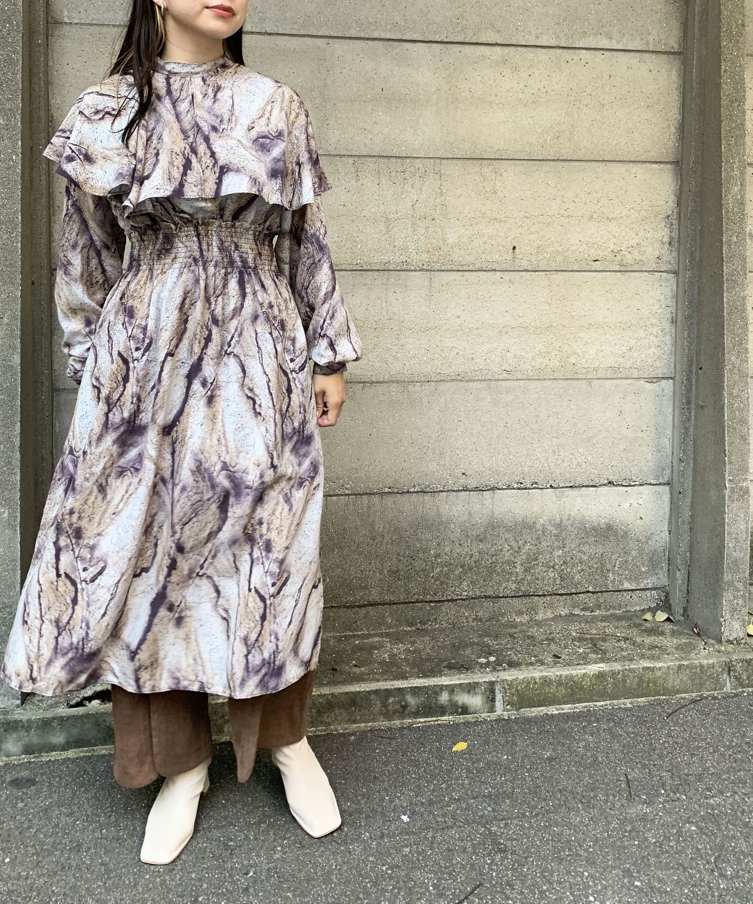 Thevon.(ゼヴォン) 【WEB限定】マーブルパターンケープワンピース