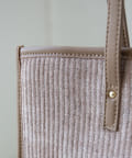 秋冬の雰囲気を感じる表面変化のある素材なので、夏の終わり頃から小物だけ秋仕様にしてもお洒落見えします。