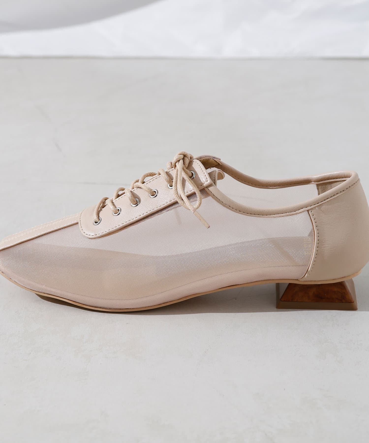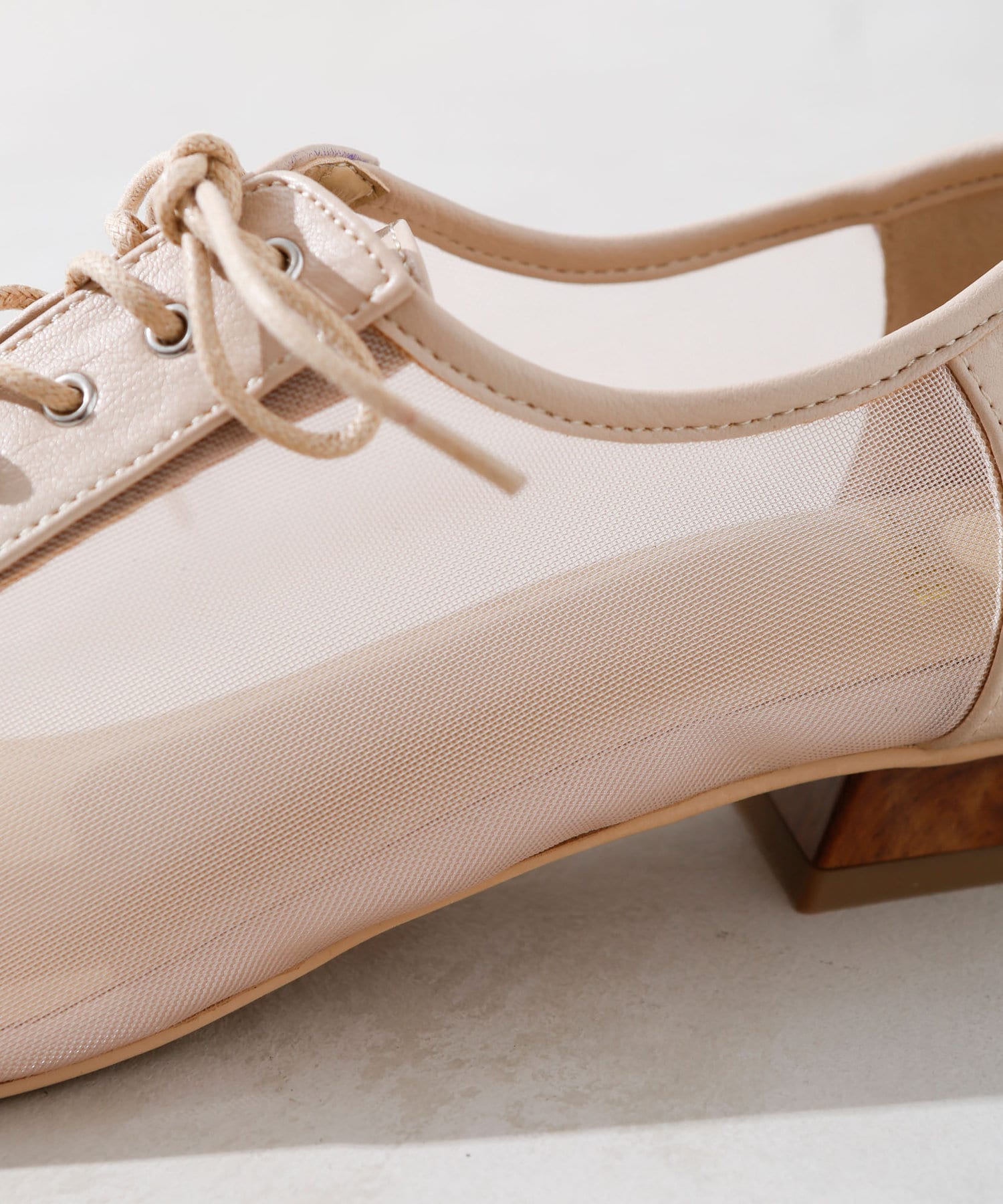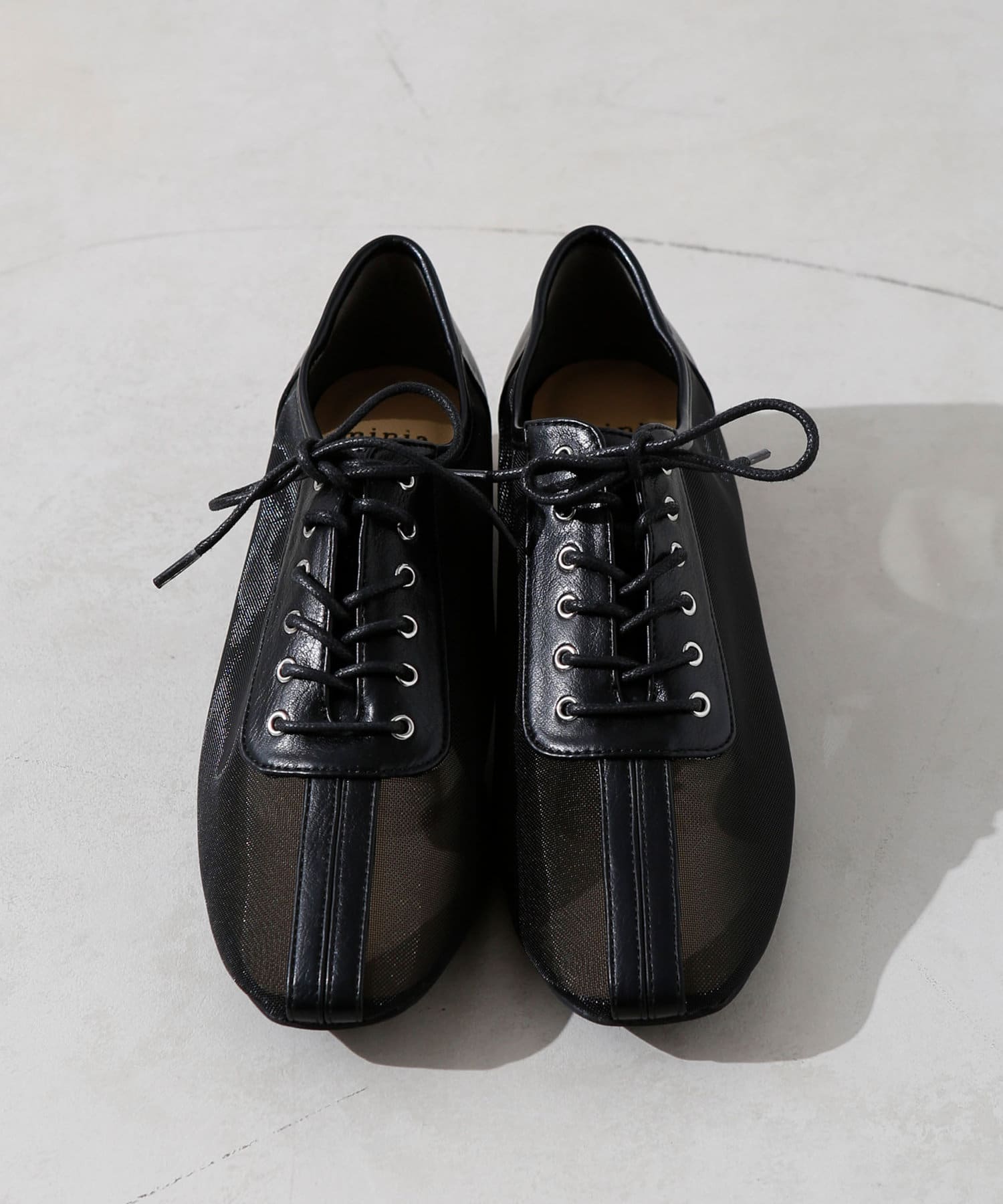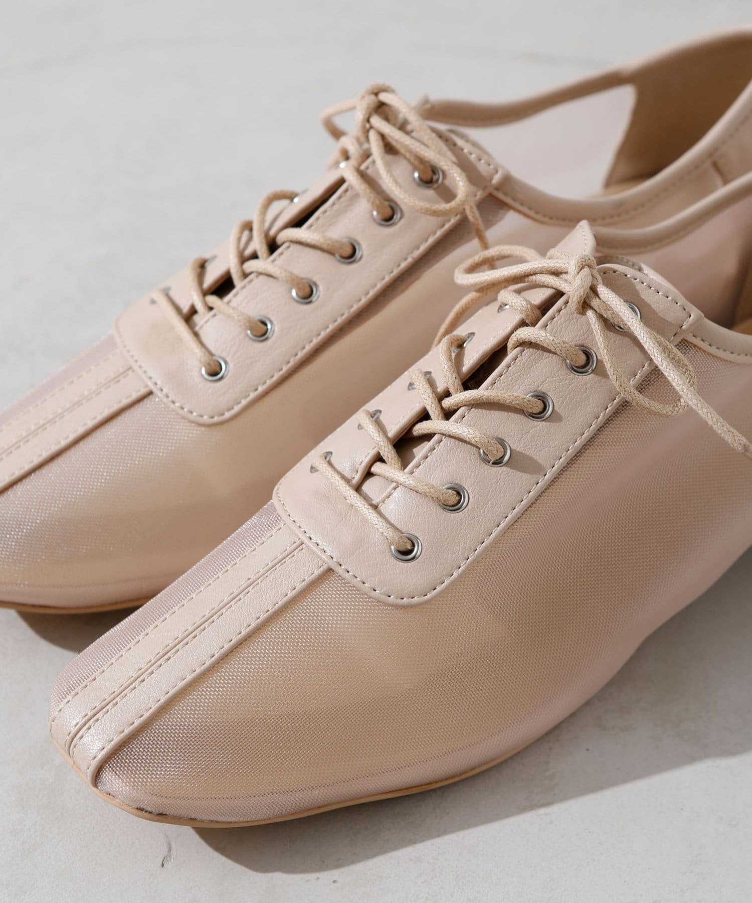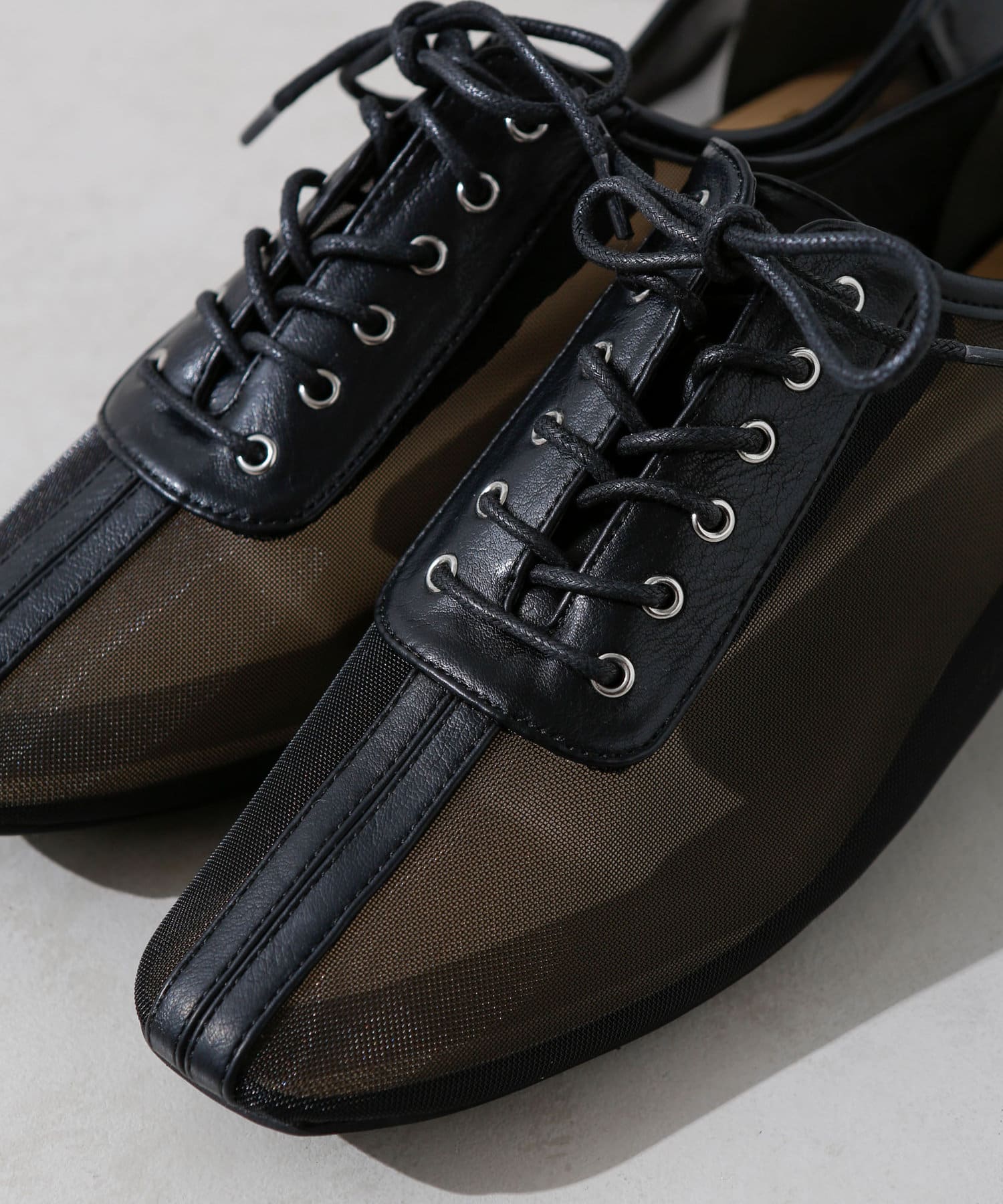 ・チュール・マニッシュシューズ・レースアップシューズ・透け感・ナチュラルテイスト・カジュアルシューズ・大人女子シューズ・シンプルコーディネート・モノトーンコーディネート・21AW