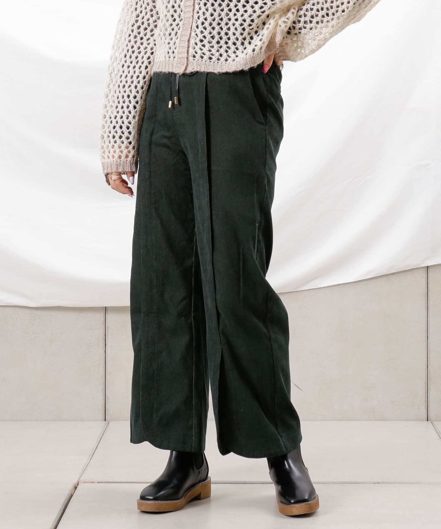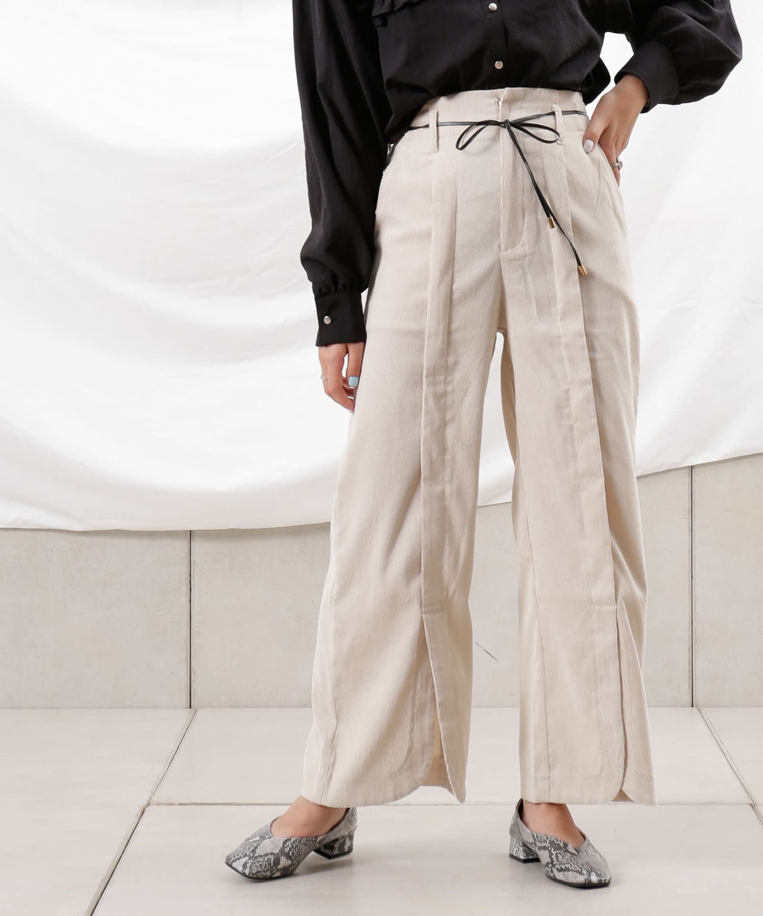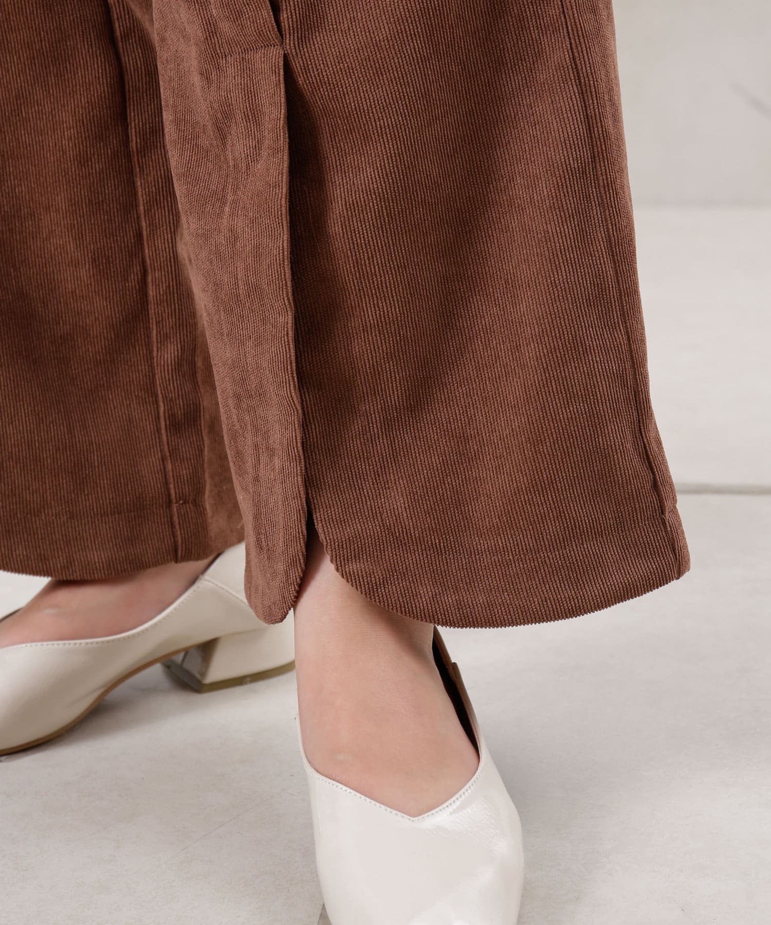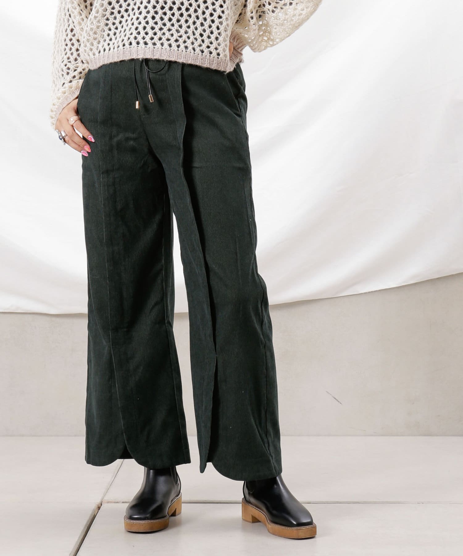 ・コーデュロイ・コーデュロイパンツ・ワイドパンツ・スリット・スリットパンツ・カーブスリット・コール天・細コーデュロイ・起毛パンツ・あったかパンツ・カラーパンツ・合皮ベルト・細ベルト