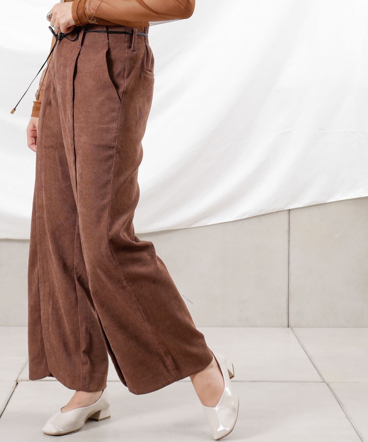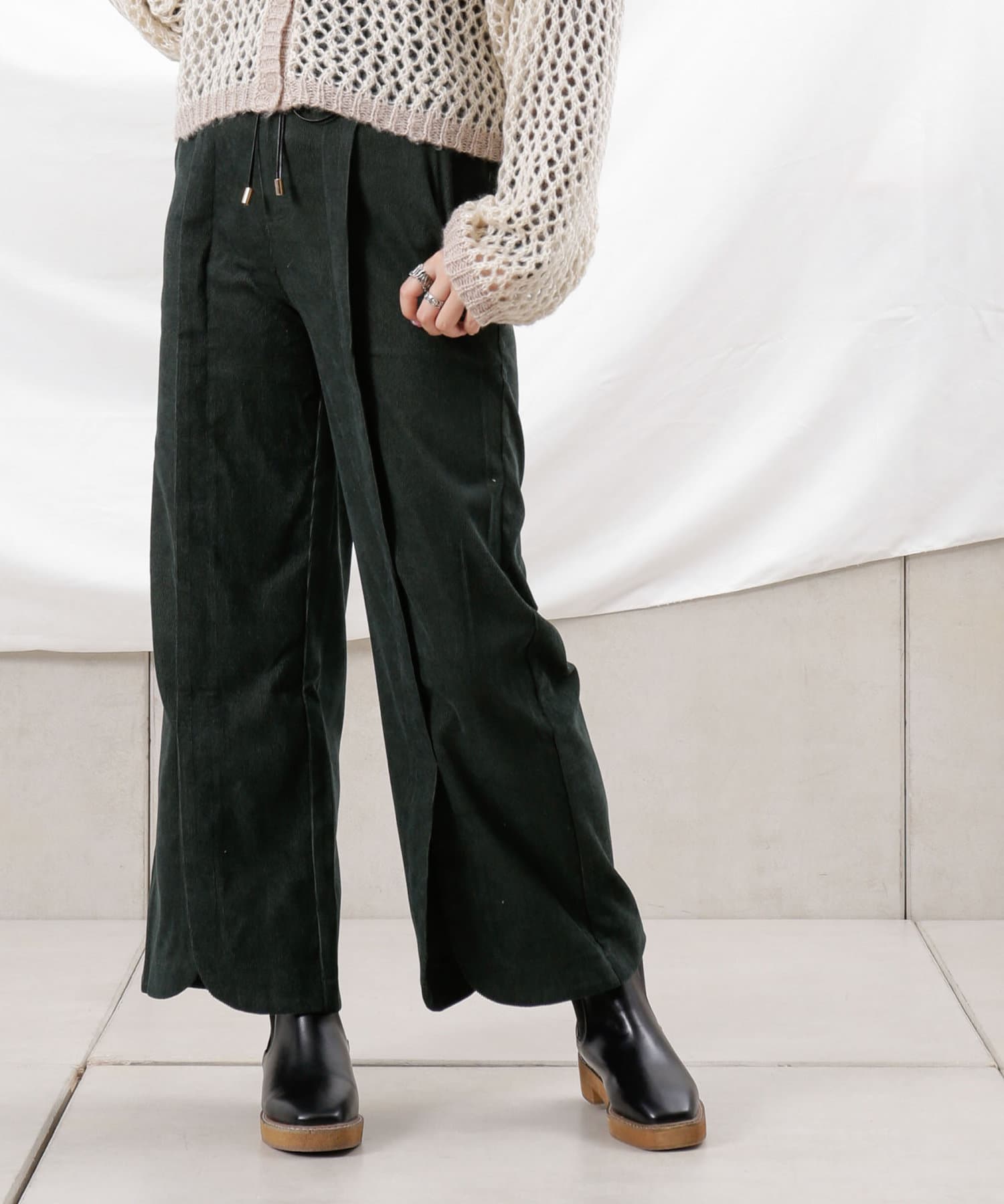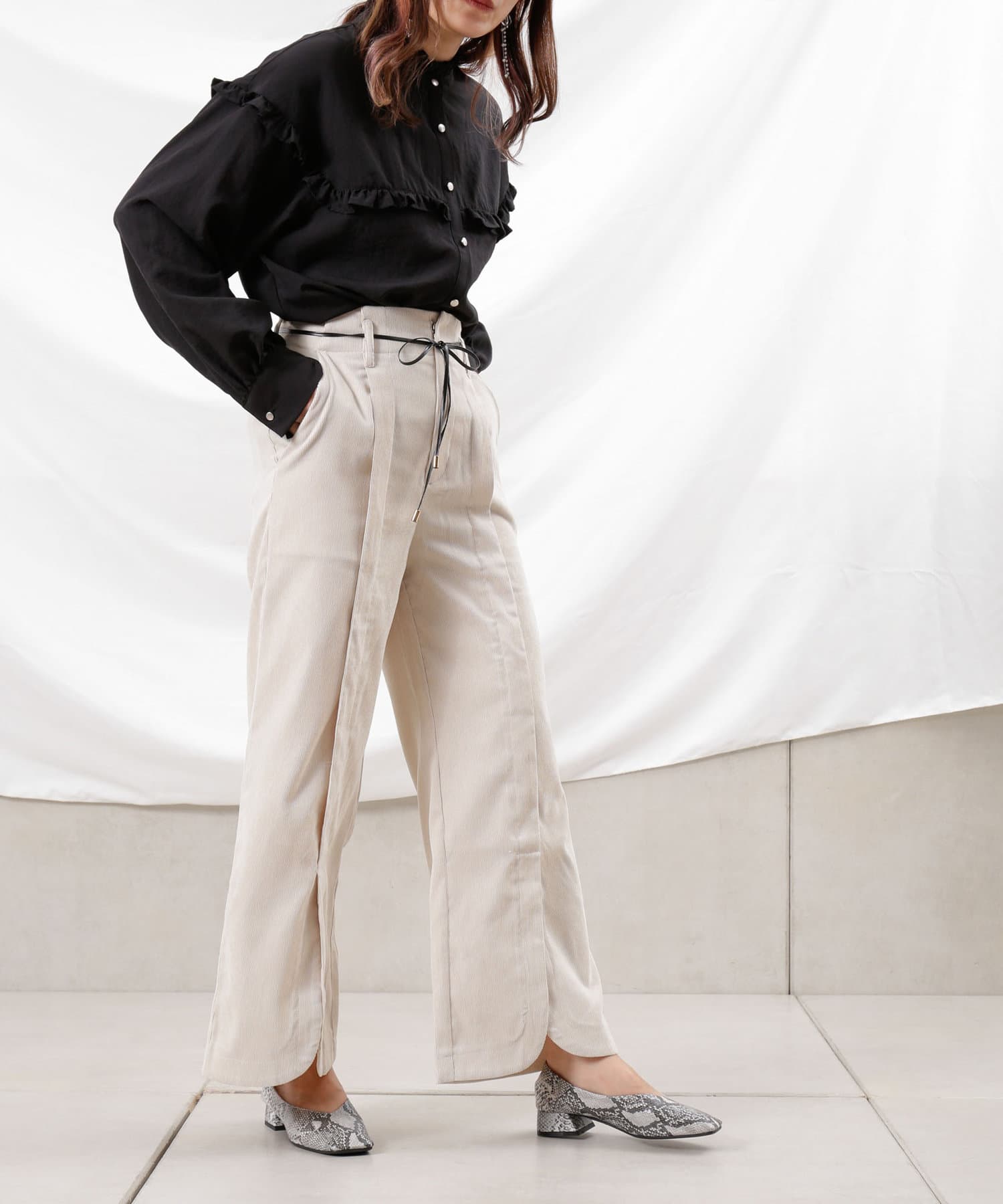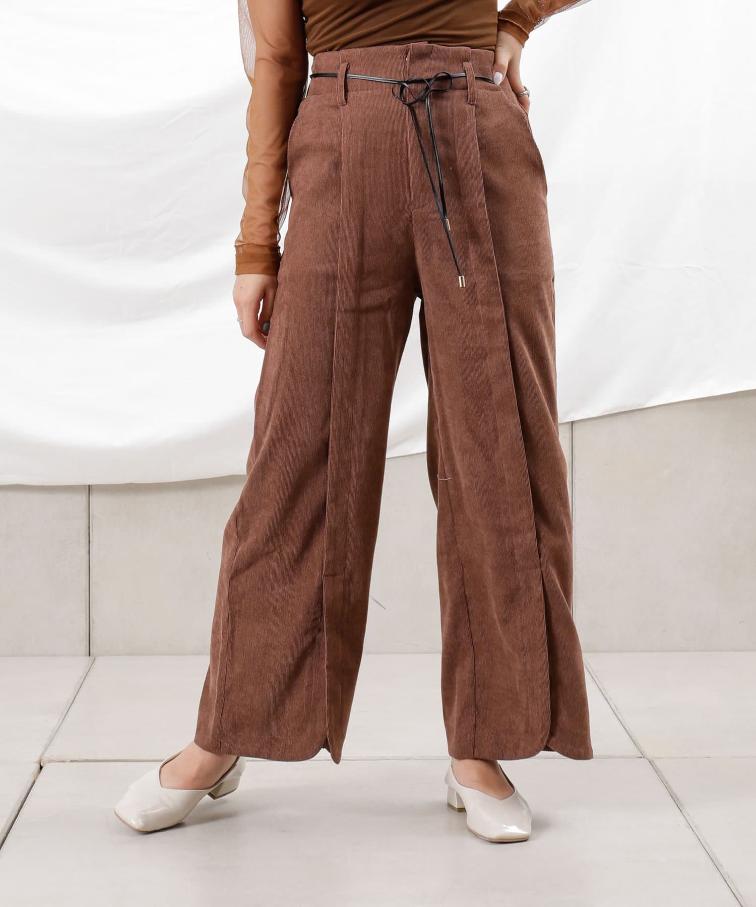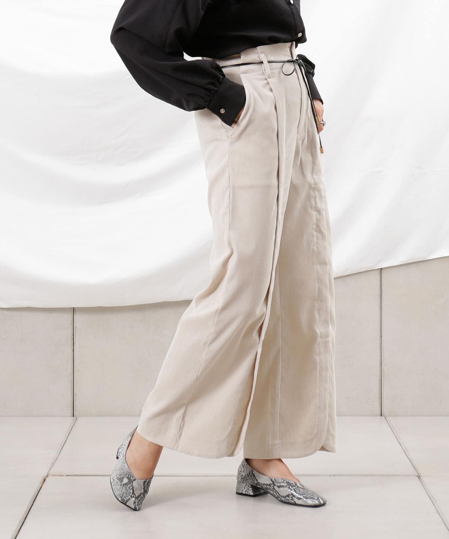 ・コーデュロイ・コーデュロイパンツ・ワイドパンツ・スリット・スリットパンツ・カーブスリット・コール天・細コーデュロイ・起毛パンツ・あったかパンツ・カラーパンツ・合皮ベルト・細ベルト
