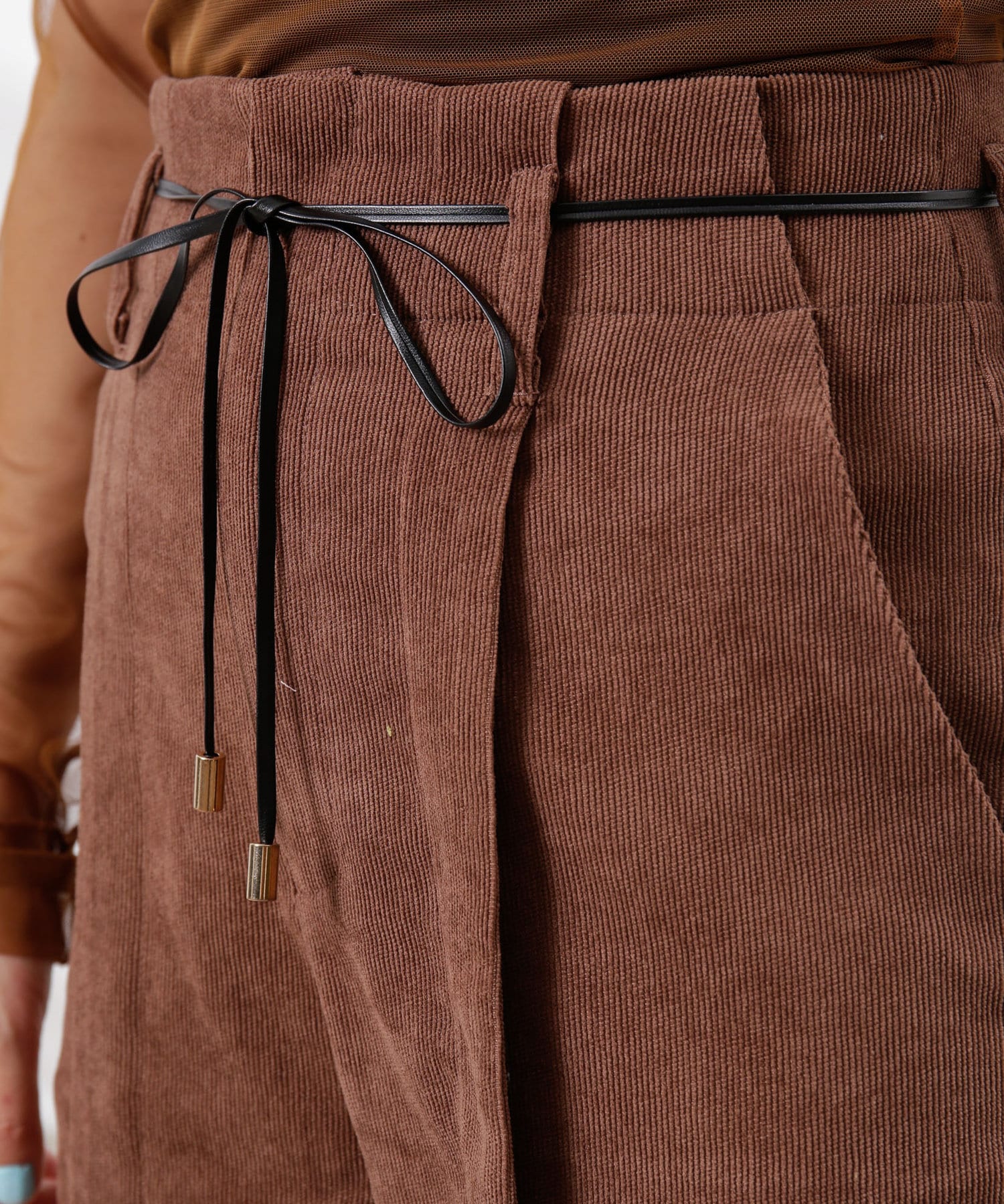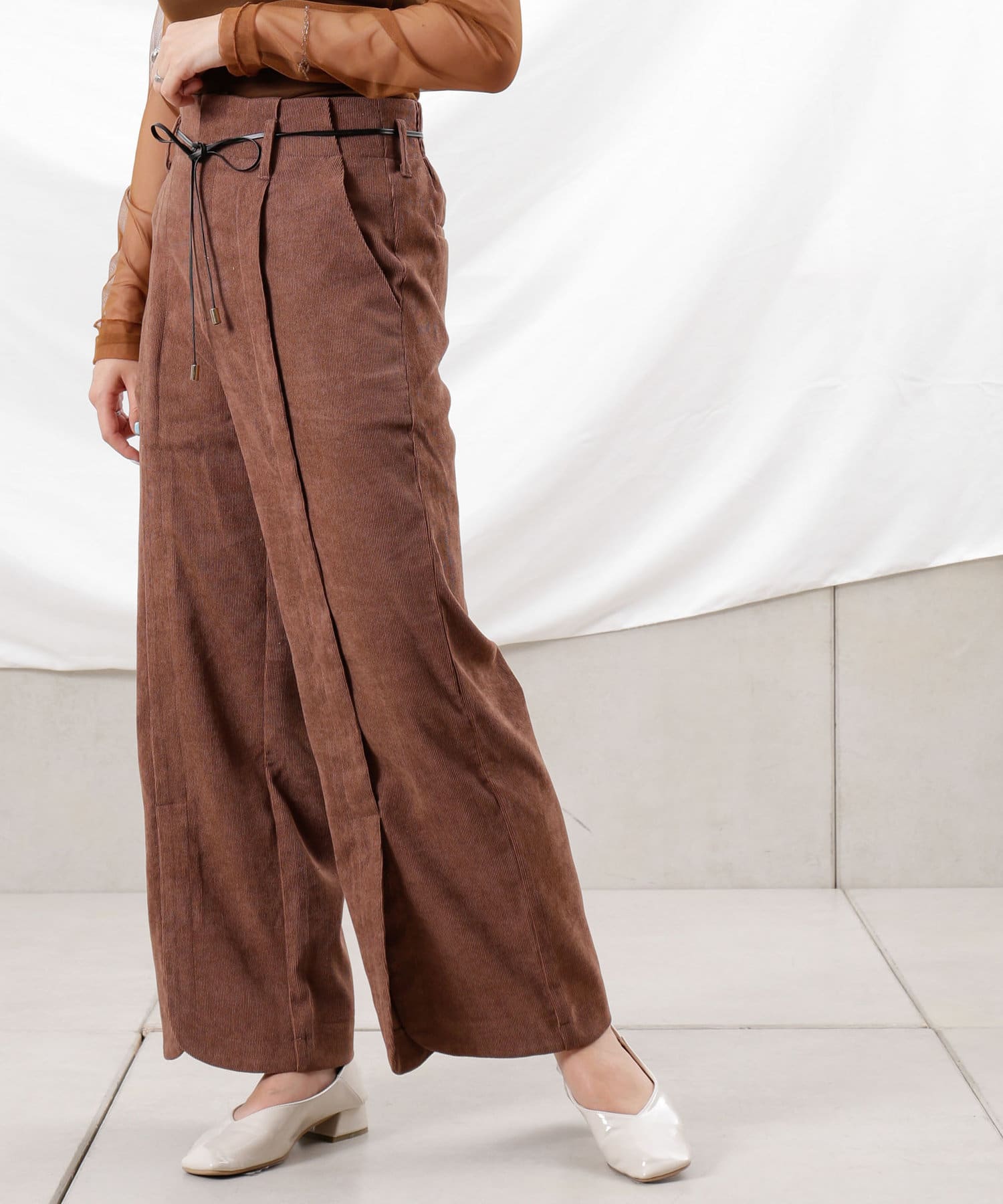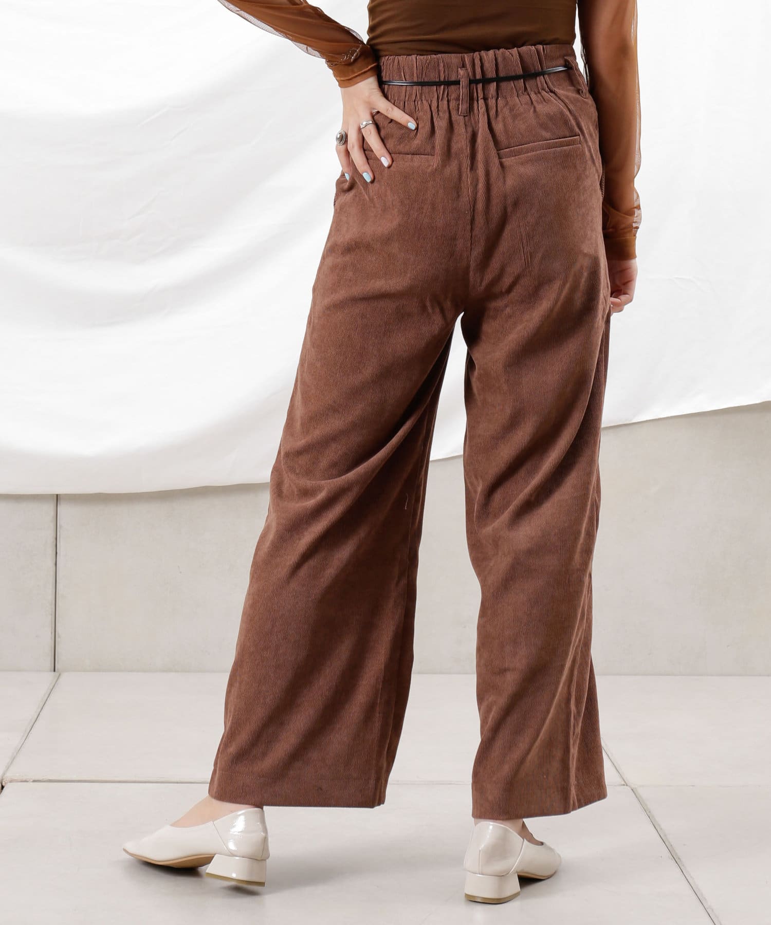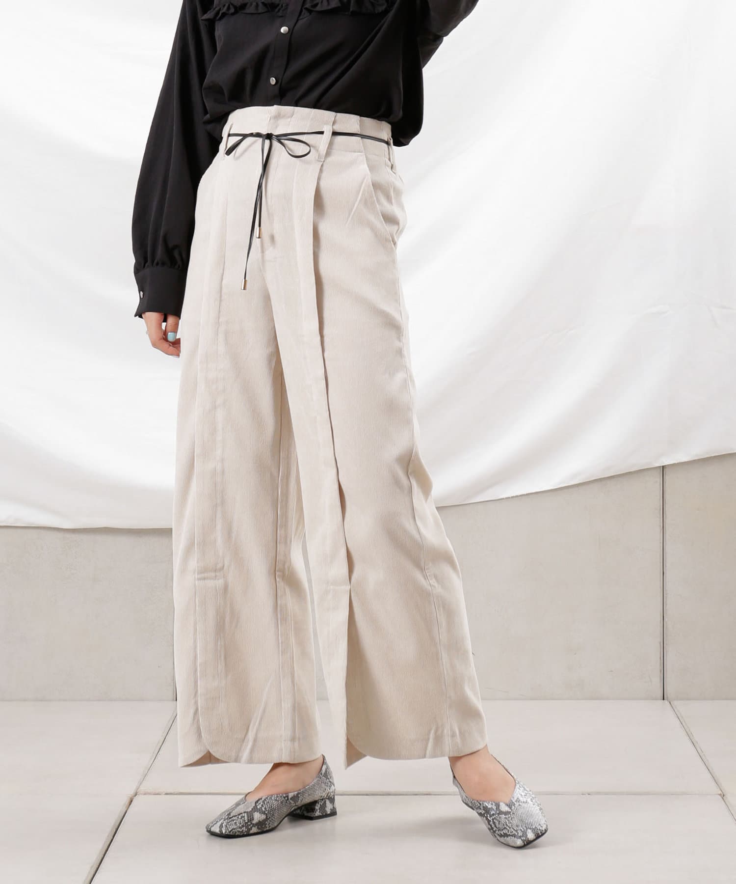・コーデュロイ・コーデュロイパンツ・ワイドパンツ・スリット・スリットパンツ・カーブスリット・コール天・細コーデュロイ・起毛パンツ・あったかパンツ・カラーパンツ・合皮ベルト・細ベルト